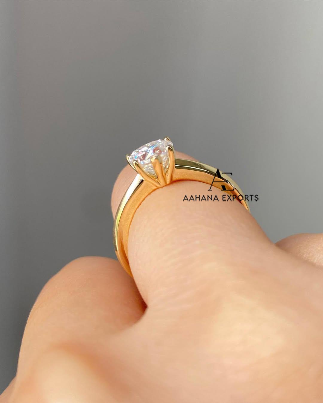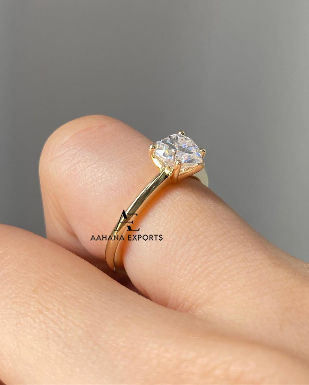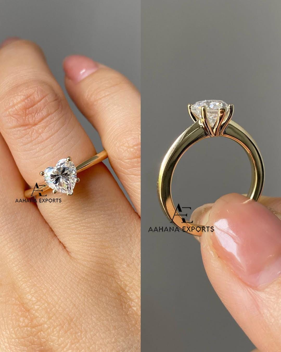 1 Carat Danity 14k Gold Heart Cut Lab Diamond Ring, Thin Gold Mini Heart Ring, Minimalist Fine Jewelry, Romantic Gift For Her, Proposal Ring