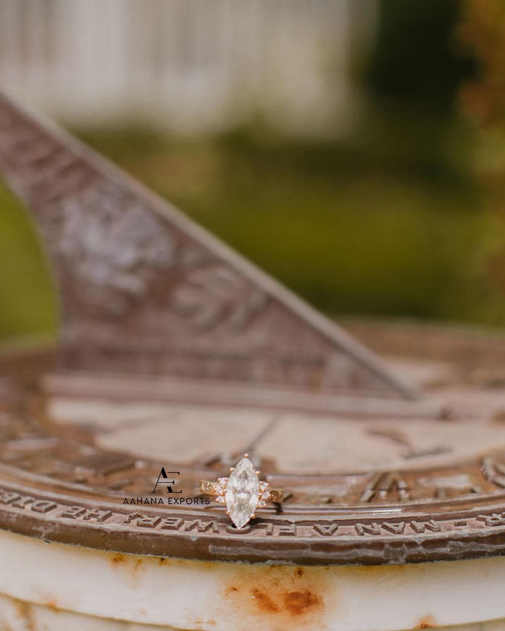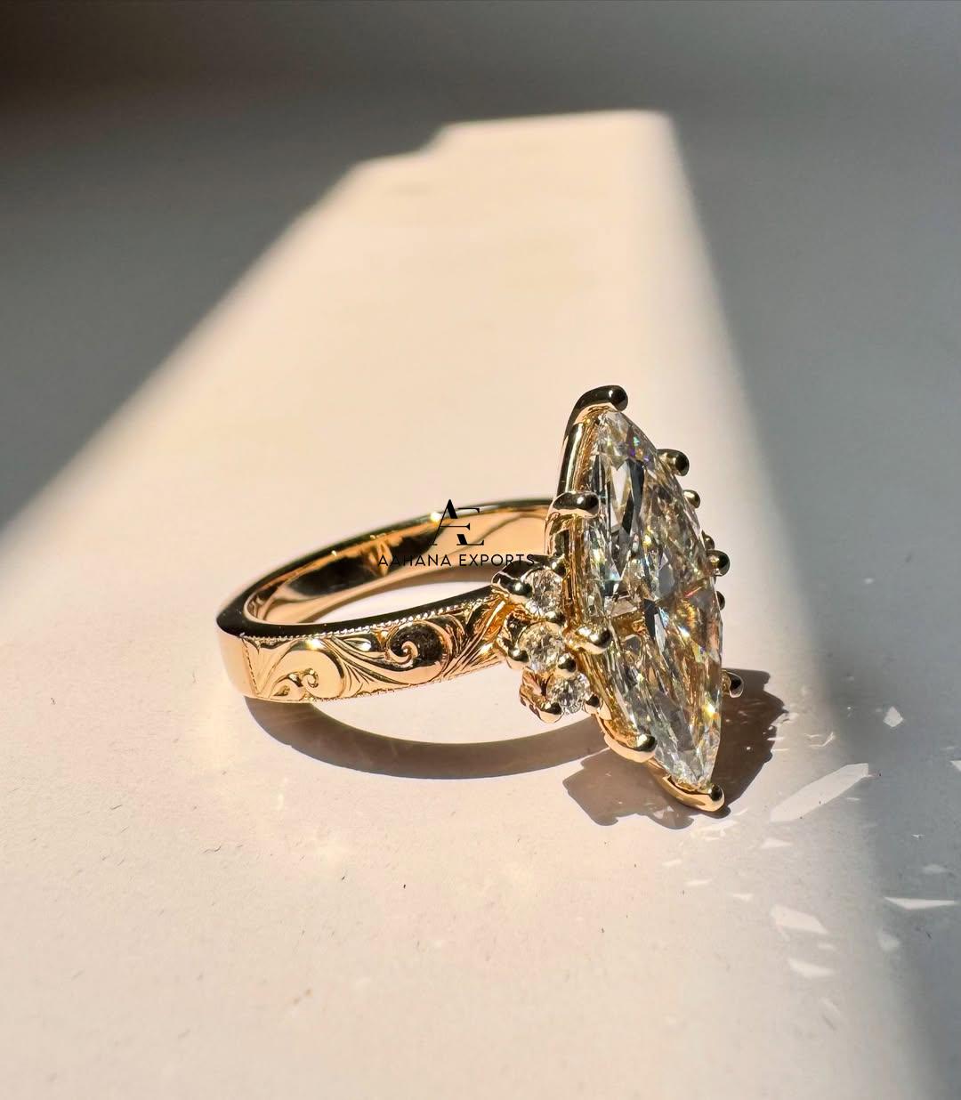 3.00 CT Marquise Diamond Engagement Ring | Lab Grown Diamond | Vintage Cluster Ring Engraved Band | Yellow Gold | Art Deco | Engagement Gift