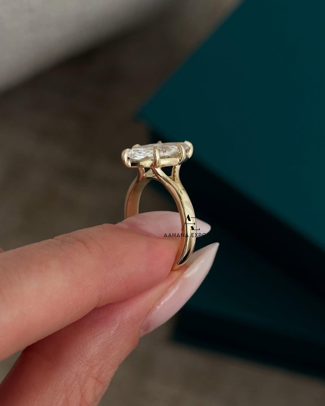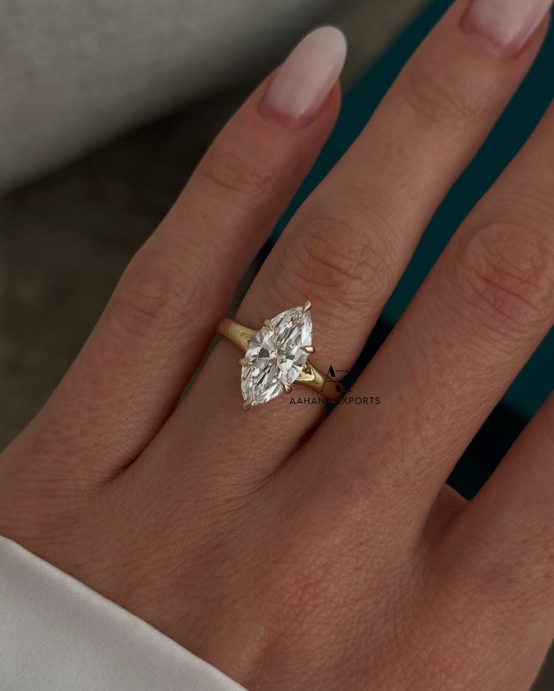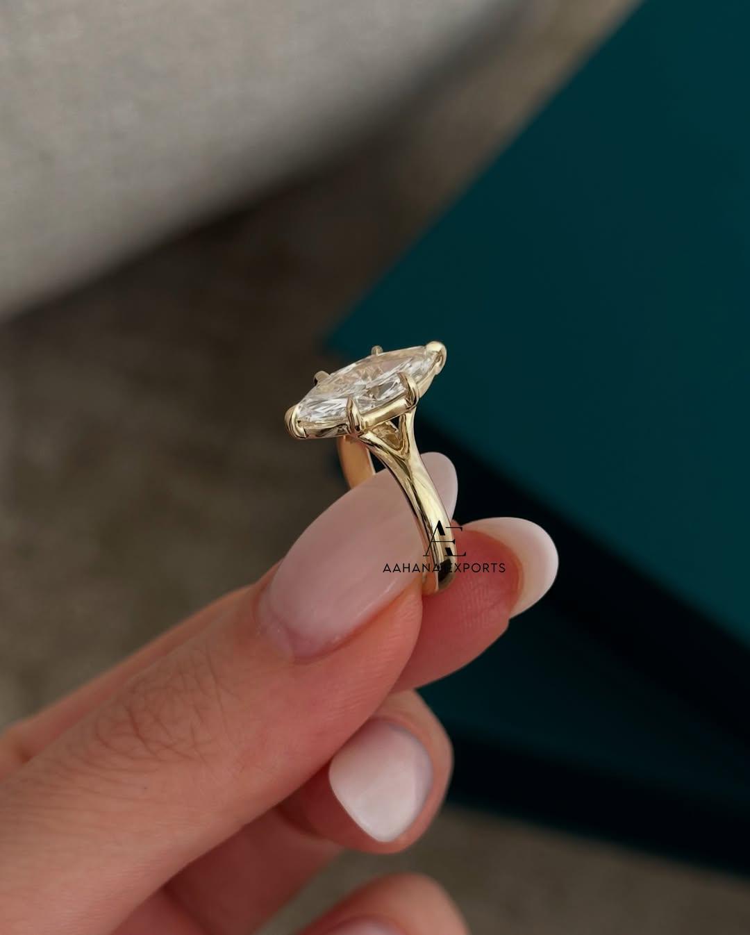 2 Carat Marquise Cut Lab Diamond Ring Engagement Ring Split Shank Ring Unique 6 Prongs Wedding Ring 14kt Gold Cathedral Ring Ethical Diamond