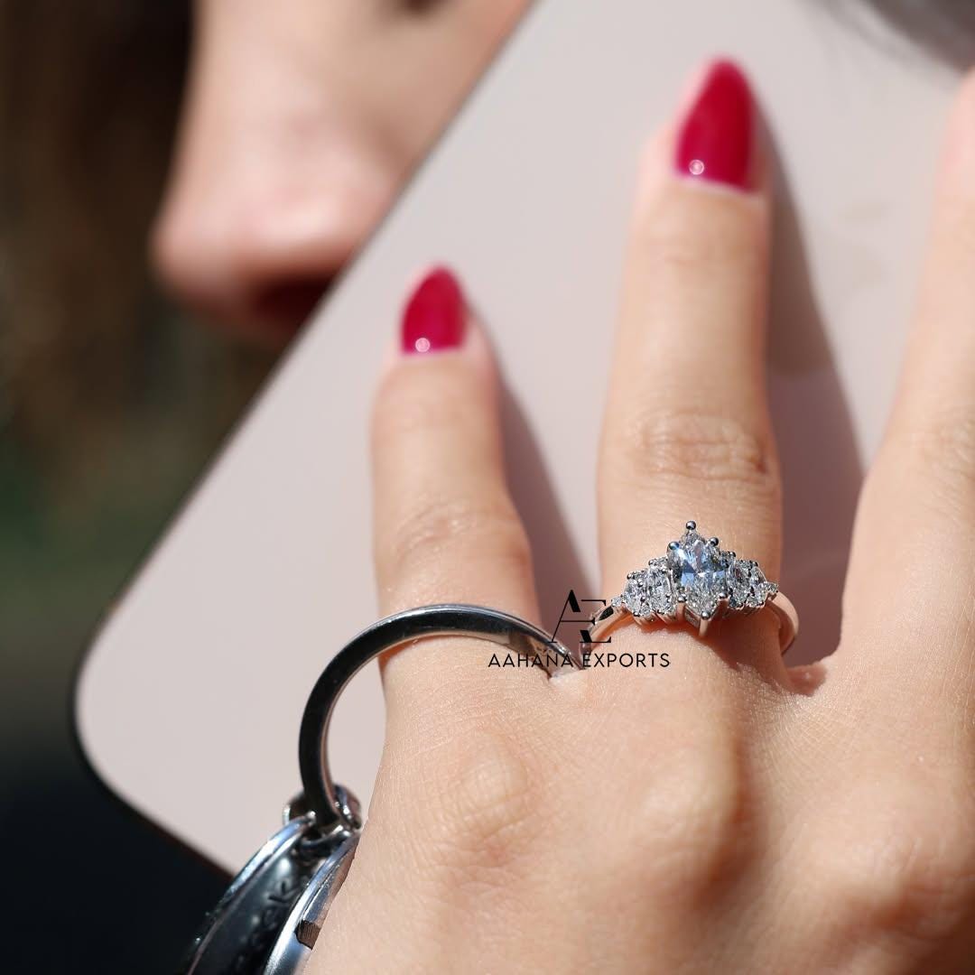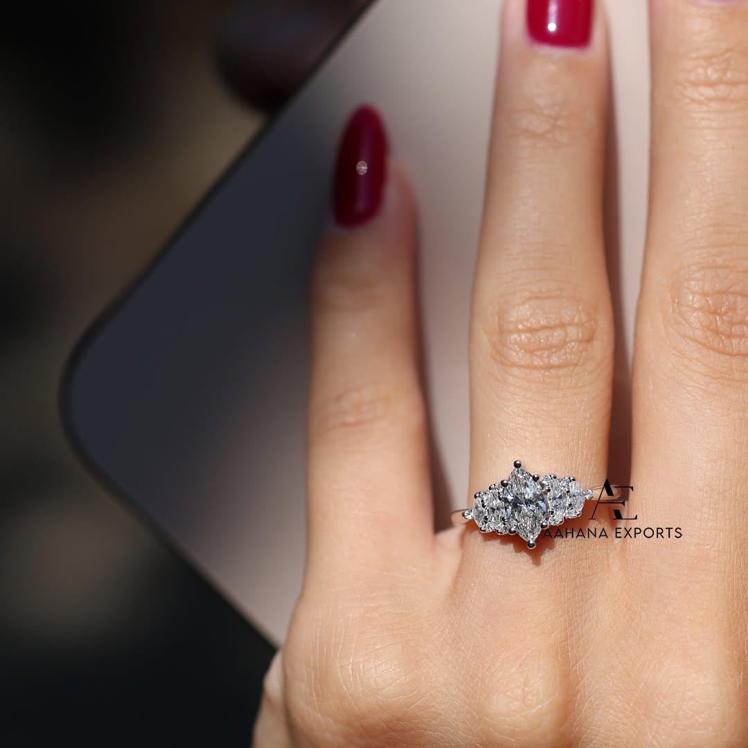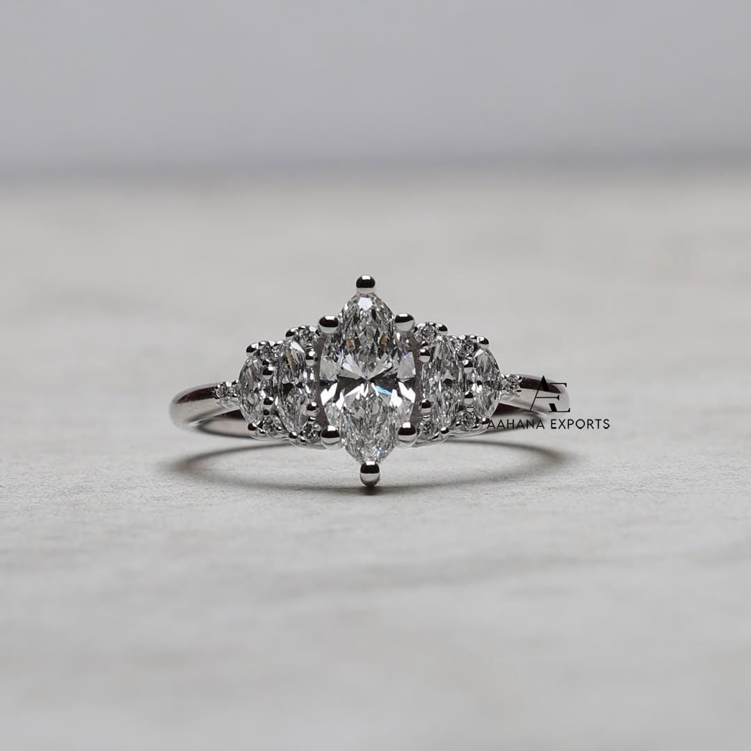 1 CT Marquise Lab Diamond Cluster Ring | Vintage Engagement Ring White Gold | Art Deco 5 Stone Ring | IGI Certified Diamond | Wedding Ring.