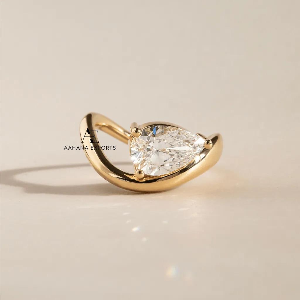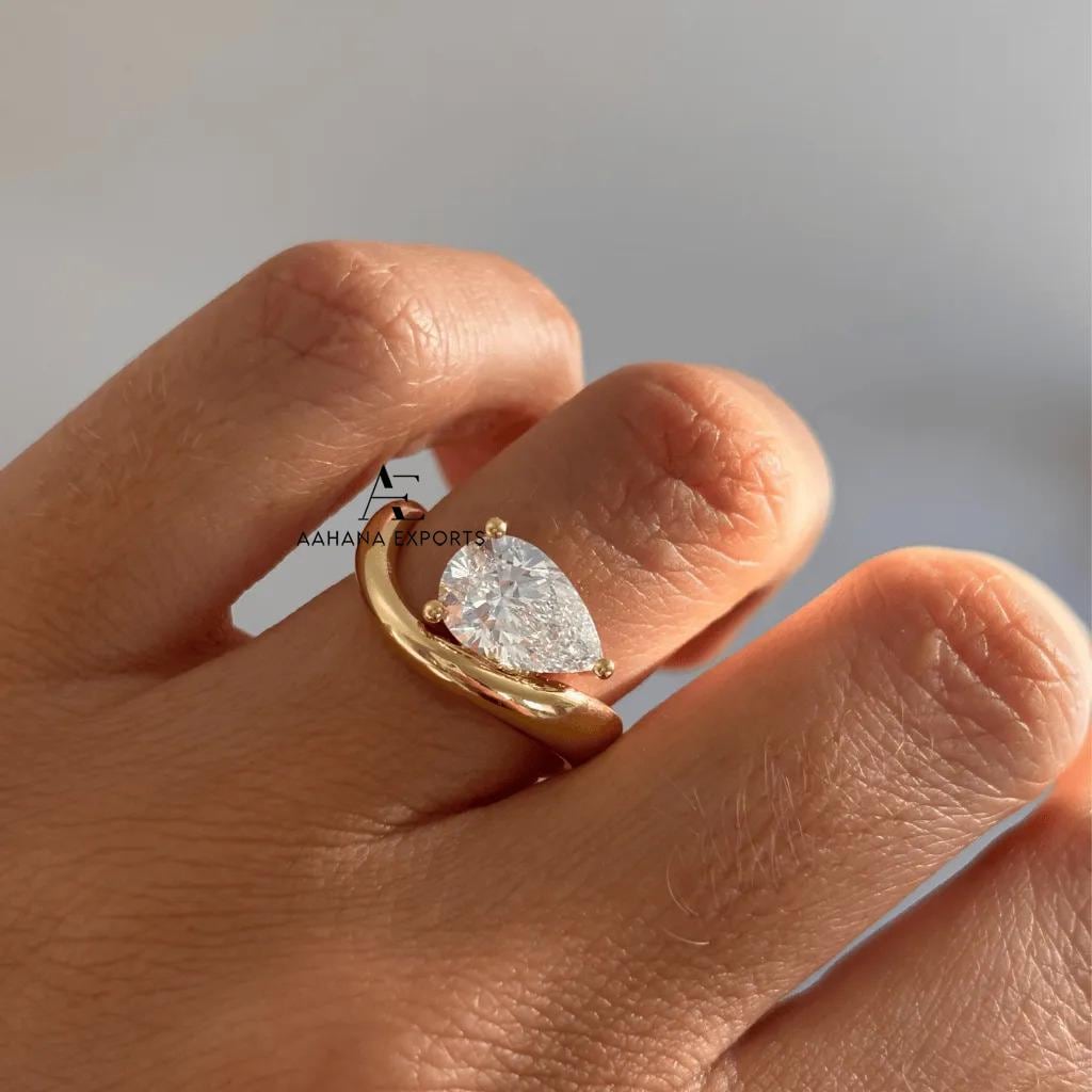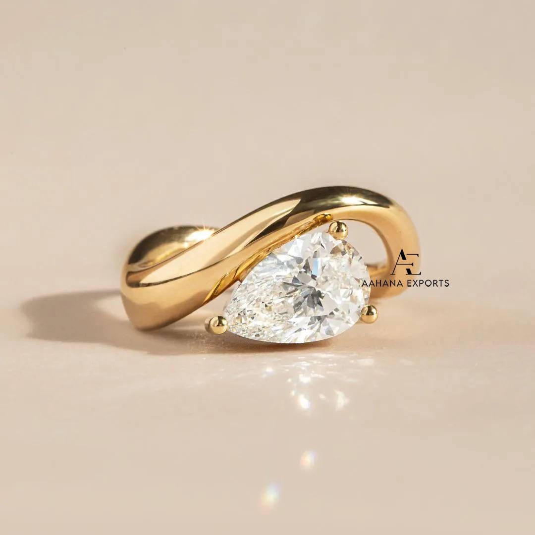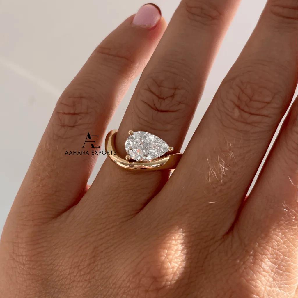 1 Carat Pear Cut Diamond East West Engagement Ring / Pear Lab Grown Diamond Ring / Wave Band Solitaire Ring / Solitaire Ring / 2 CT Diamond