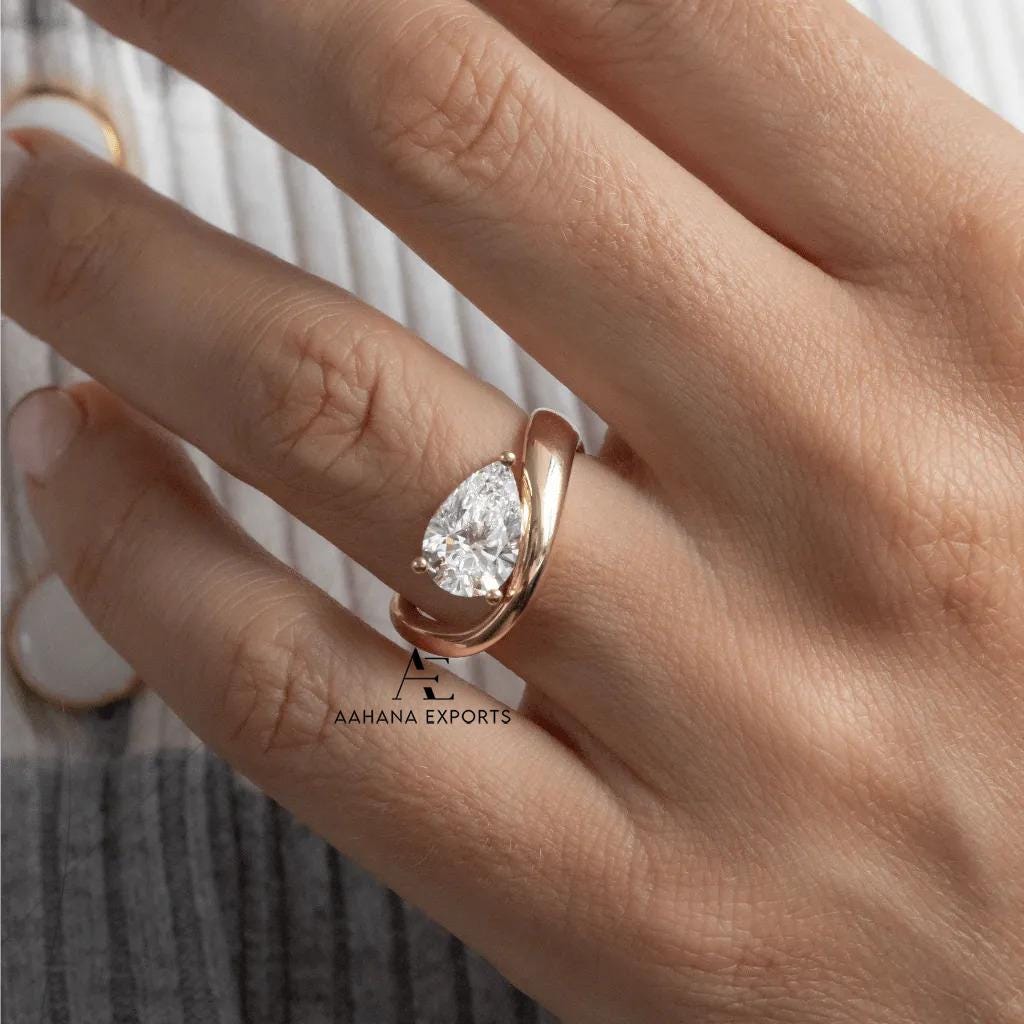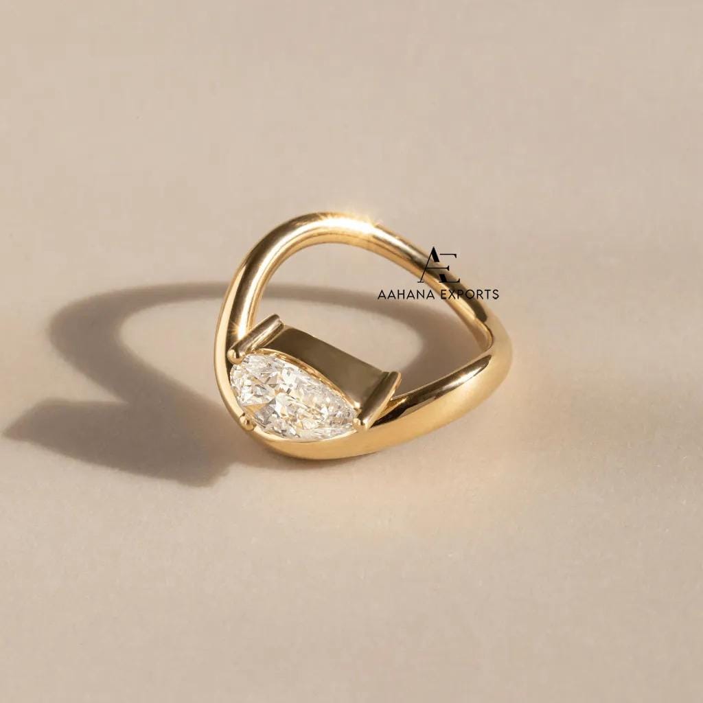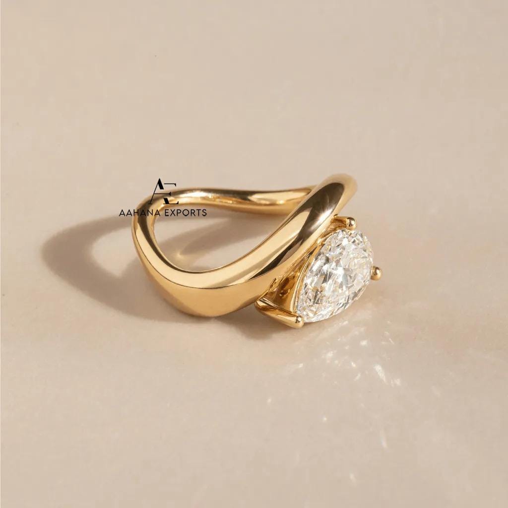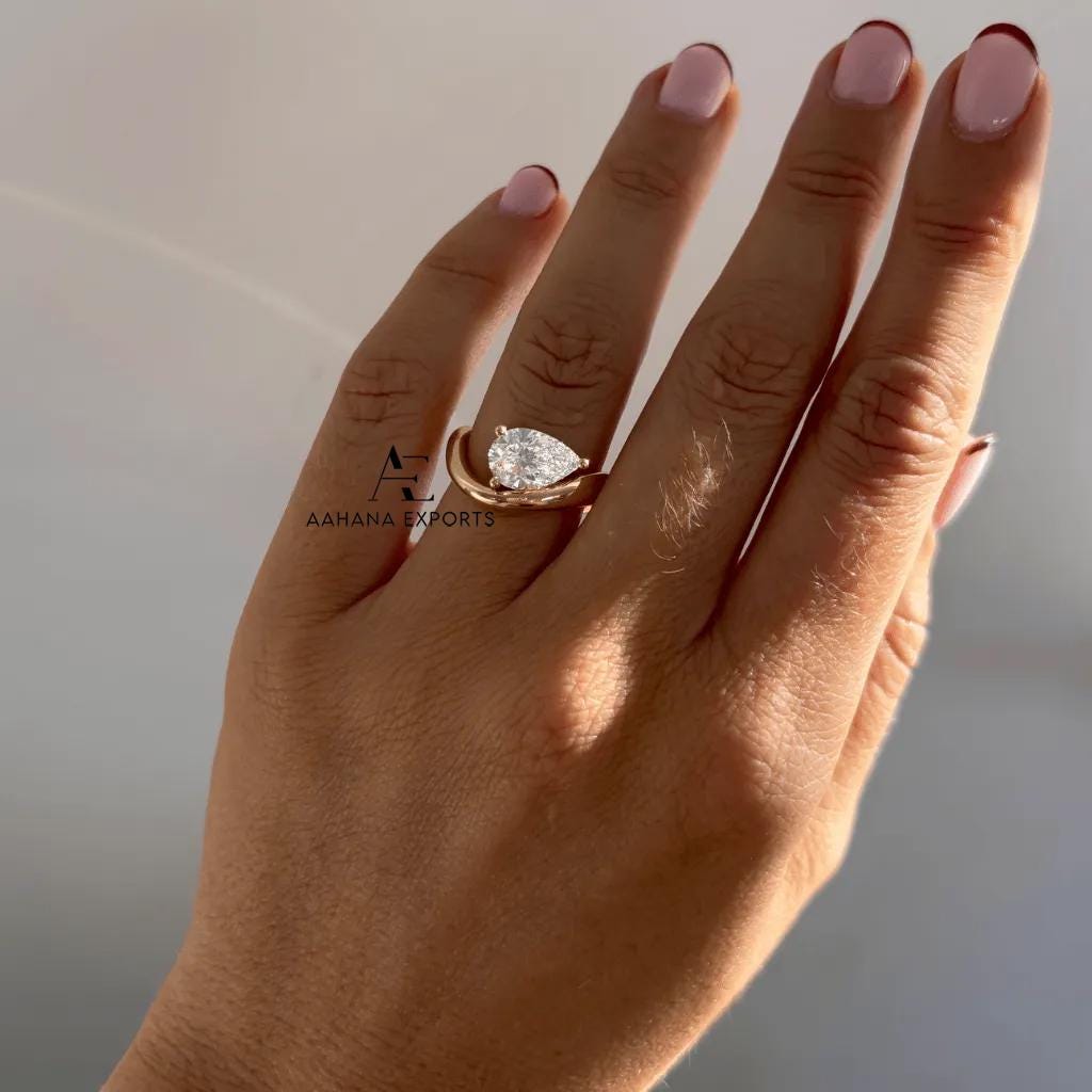 1 Carat Pear Cut Diamond East West Engagement Ring / Pear Lab Grown Diamond Ring / Wave Band Solitaire Ring / Solitaire Ring / 2 CT Diamond