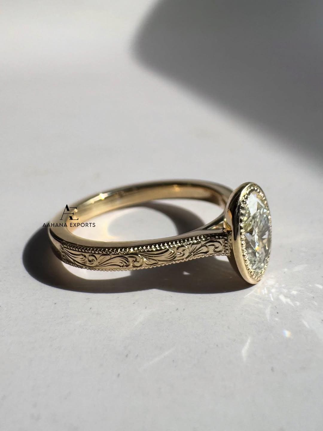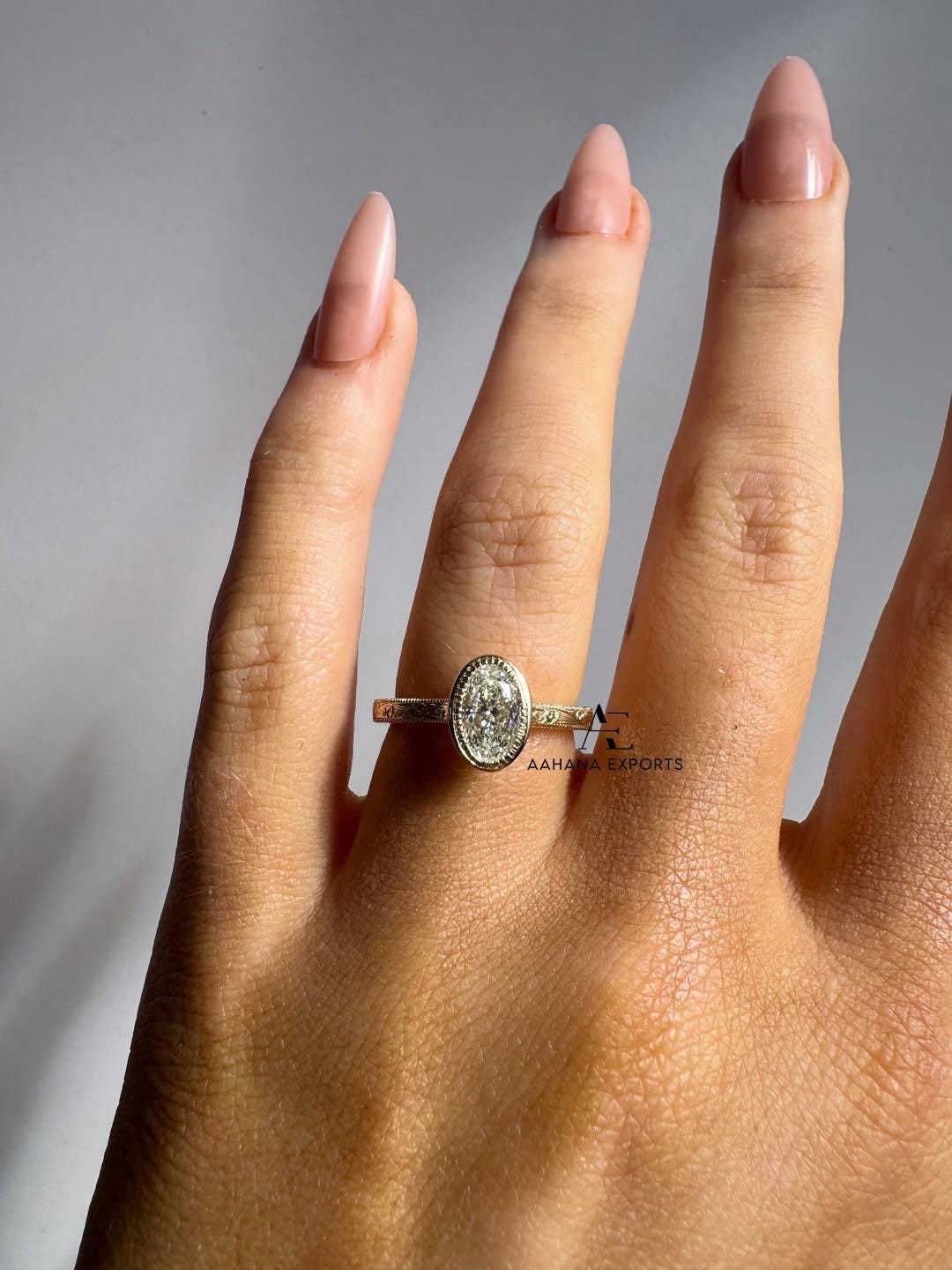 3 Carat Oval Lab Grown Diamond Engagement Ring, Milgrain Ring, Solitaire Ring, Oval Lab Grown Ring, Oval cvd Diamond Ring, Wedding Ring.