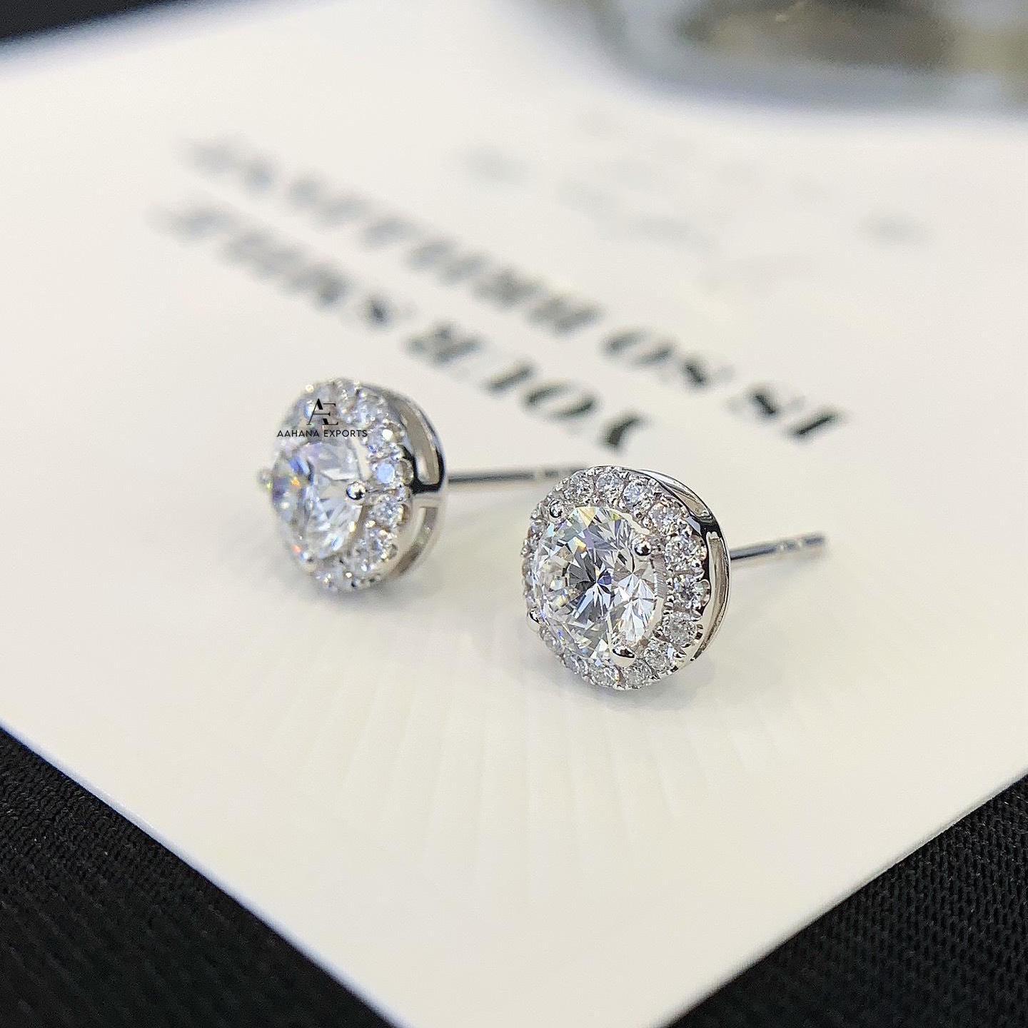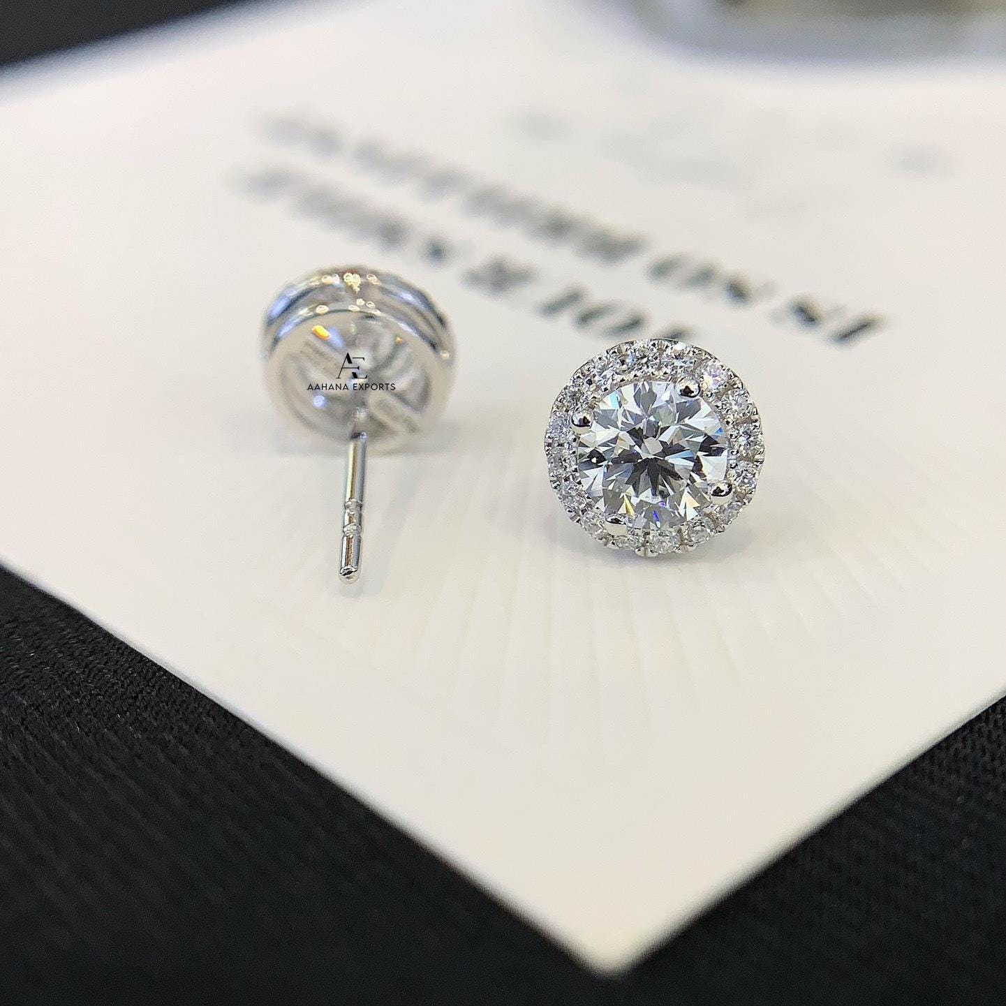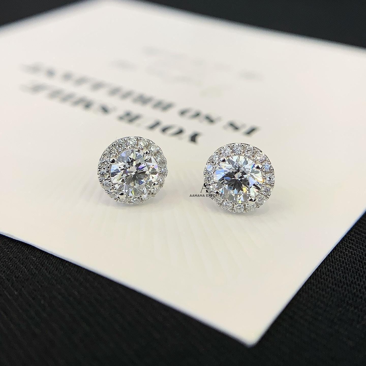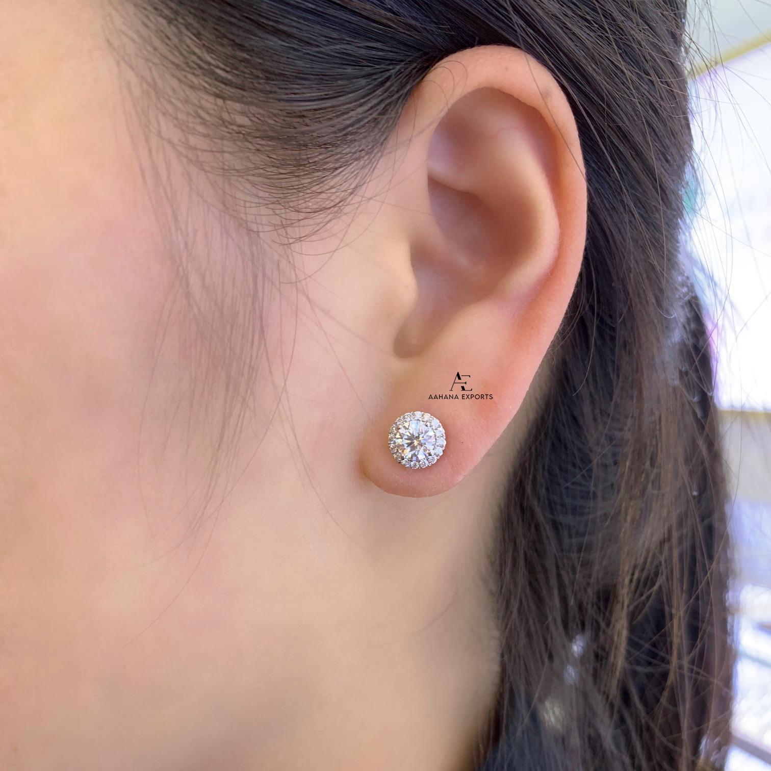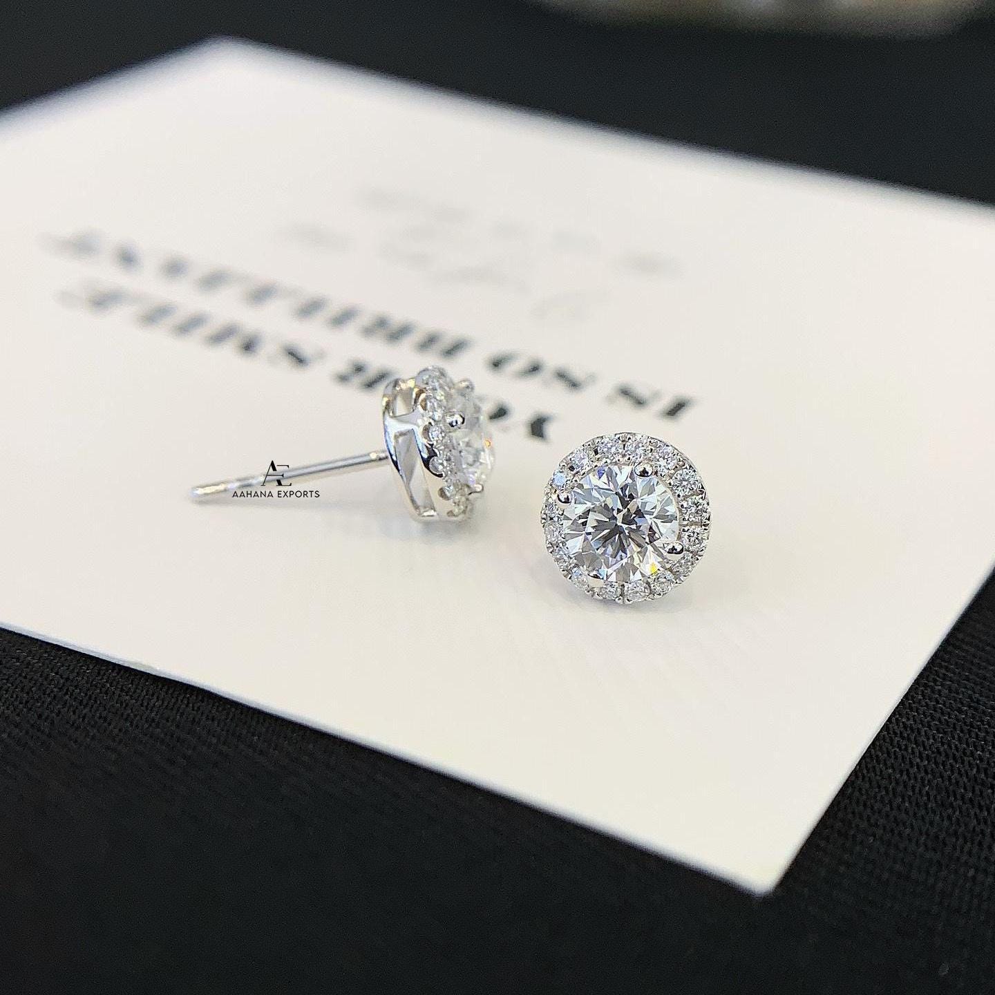 1.00 Carat Each Lab Grown Round Cut Diamond Halo Stud Earrings / 14kt White Gold Diamond Stud Earrings / Classic Lab Grown Diamond Earrings.