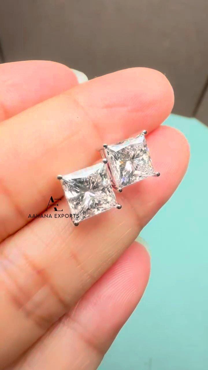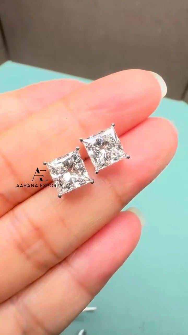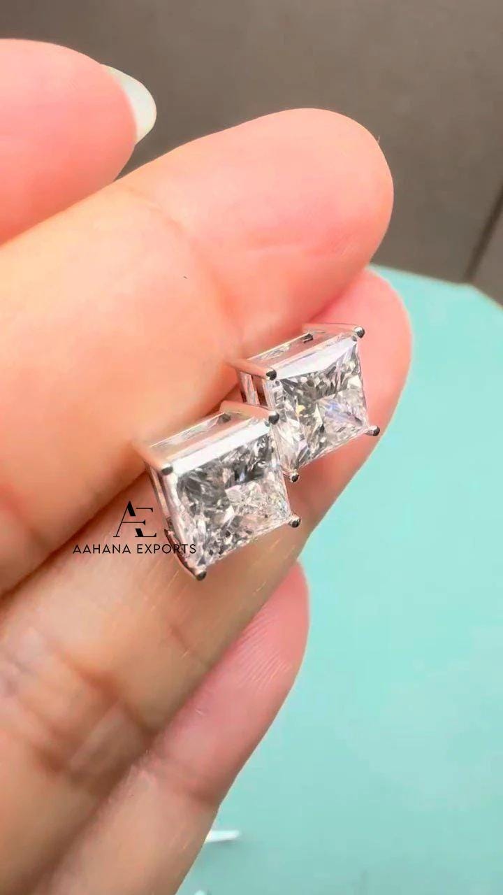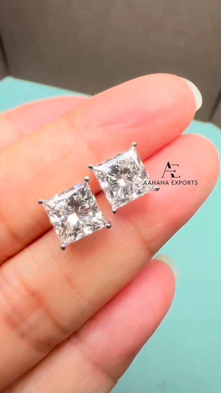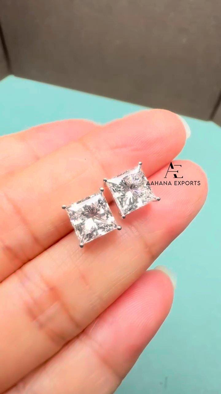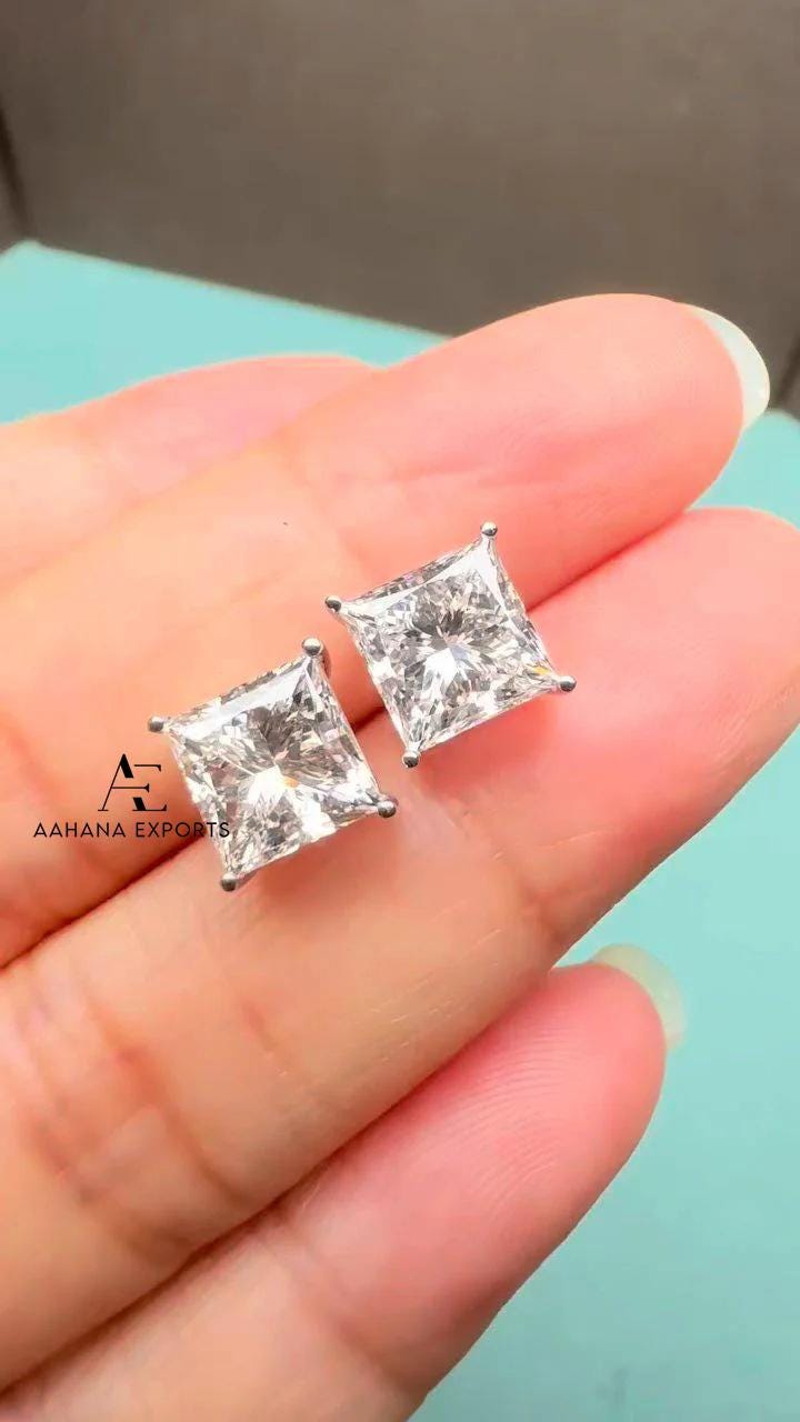 2 Carat Total Carat Weight Princess Cut Lab-Grown Diamond Stud Earrings: Handmade Gold Solitaire Bridal Jewelry