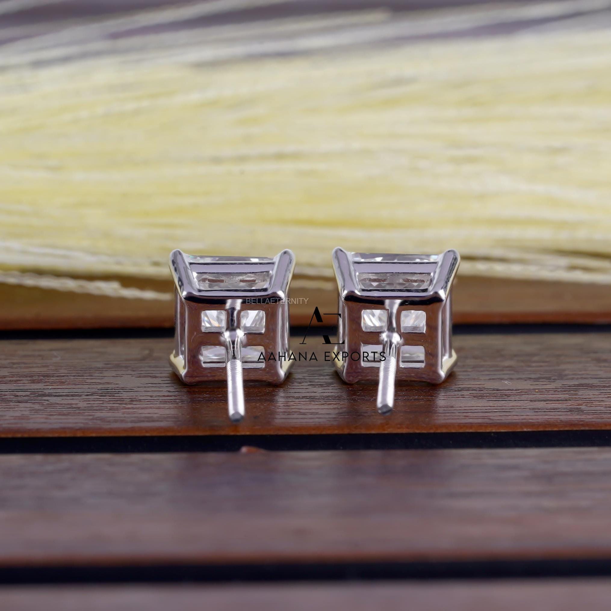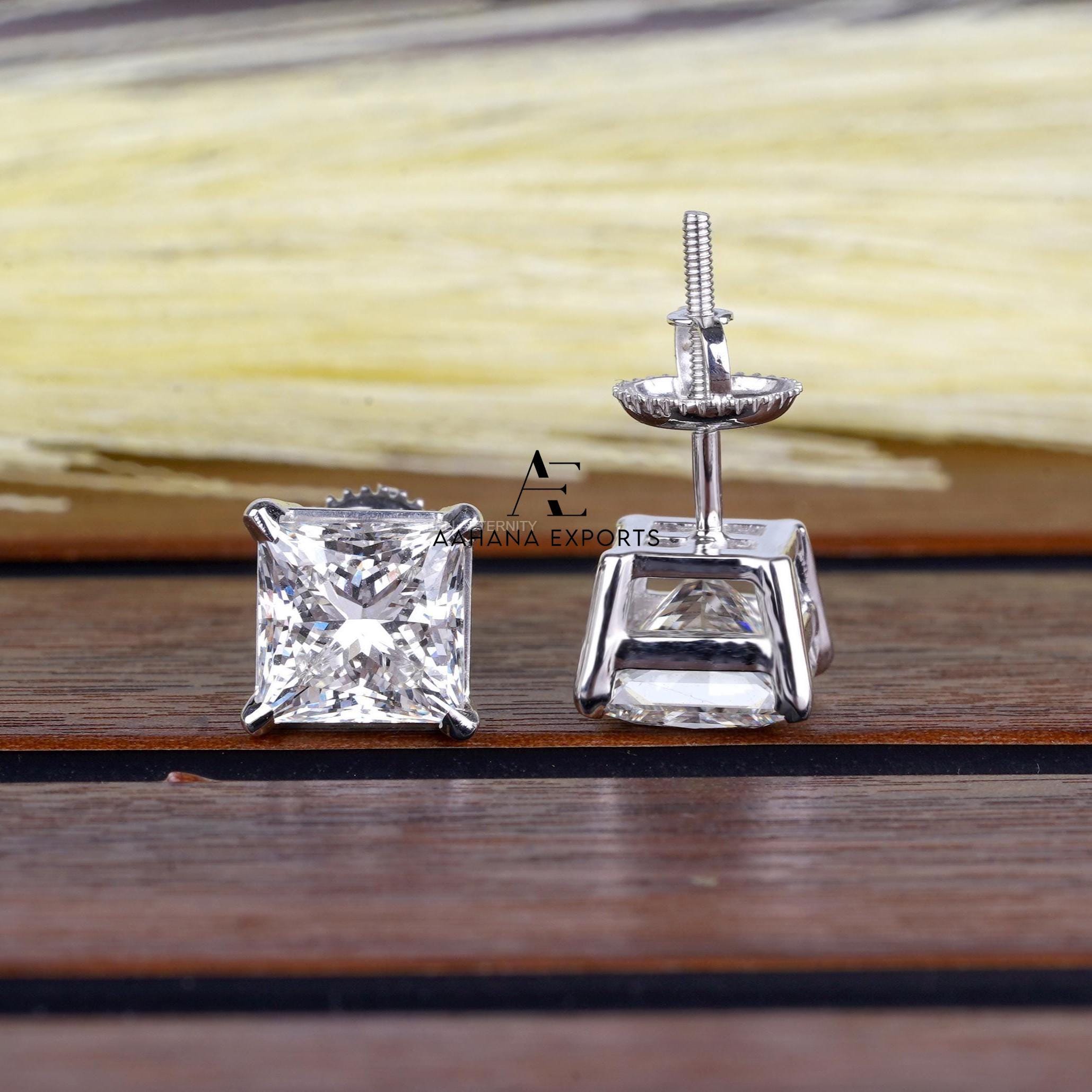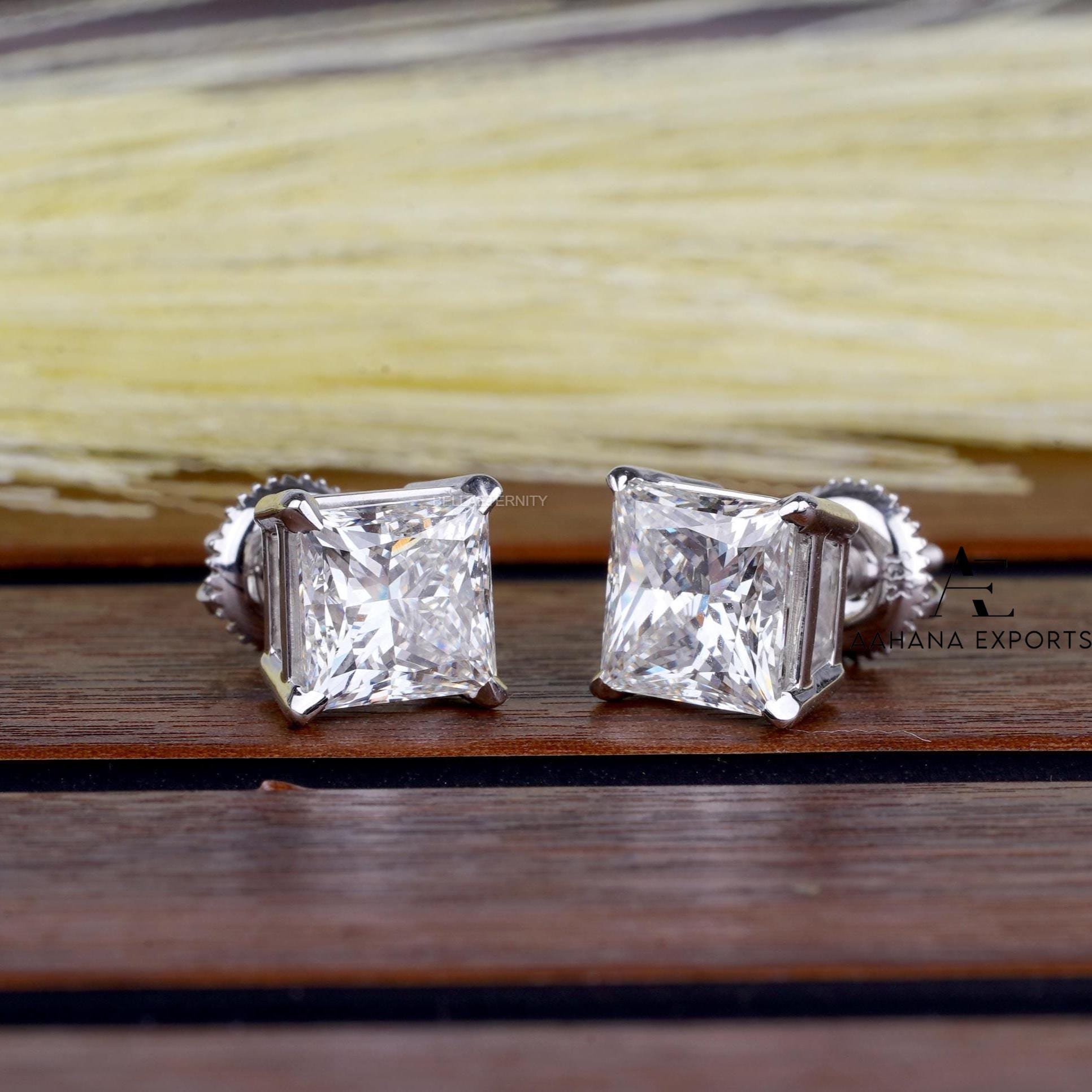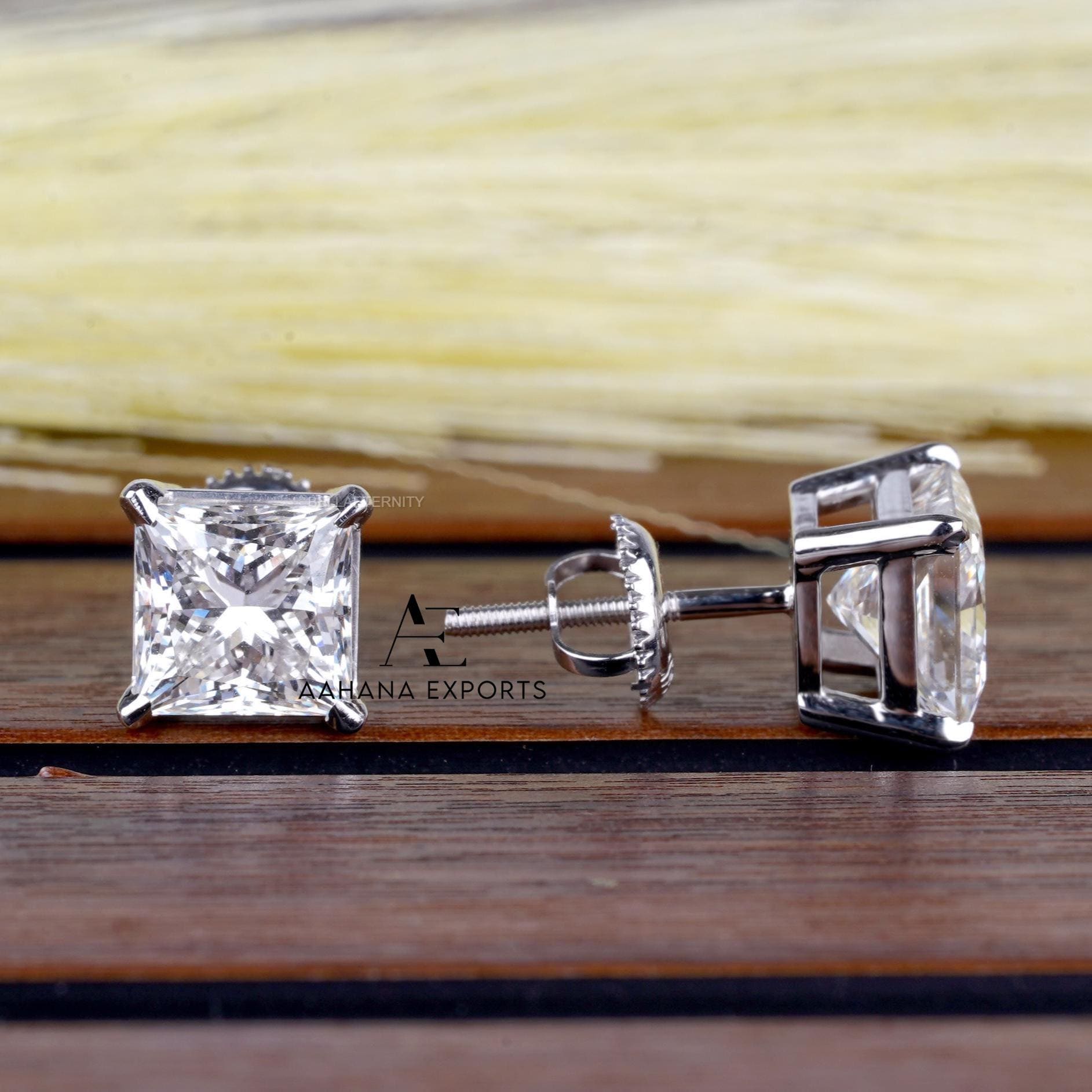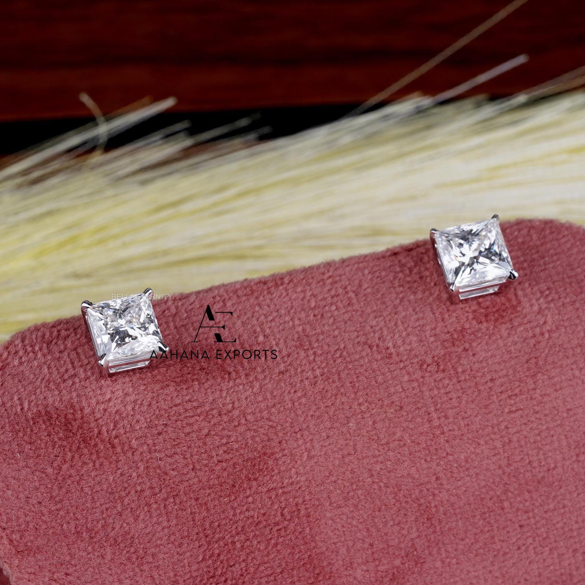 2 Carat Total Carat Weight Princess Cut Lab-Grown Diamond Stud Earrings: Handmade Gold Solitaire Bridal Jewelry