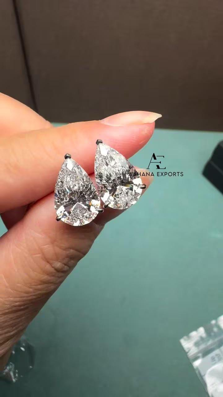 3 Carat Each Pear Shape Lab Diamond Stud Earrings Solid 10Kt, 14Kt, 18Kt Gold