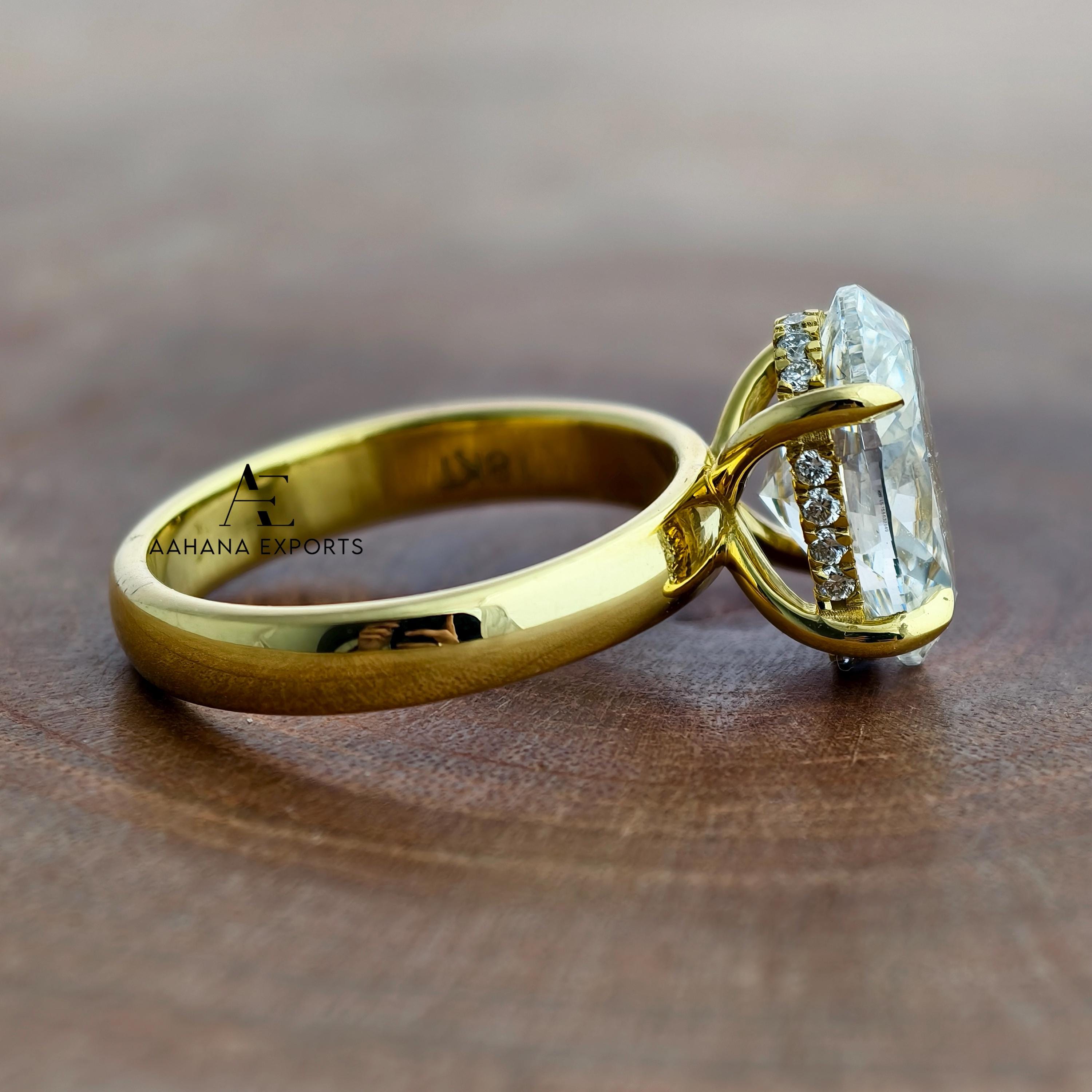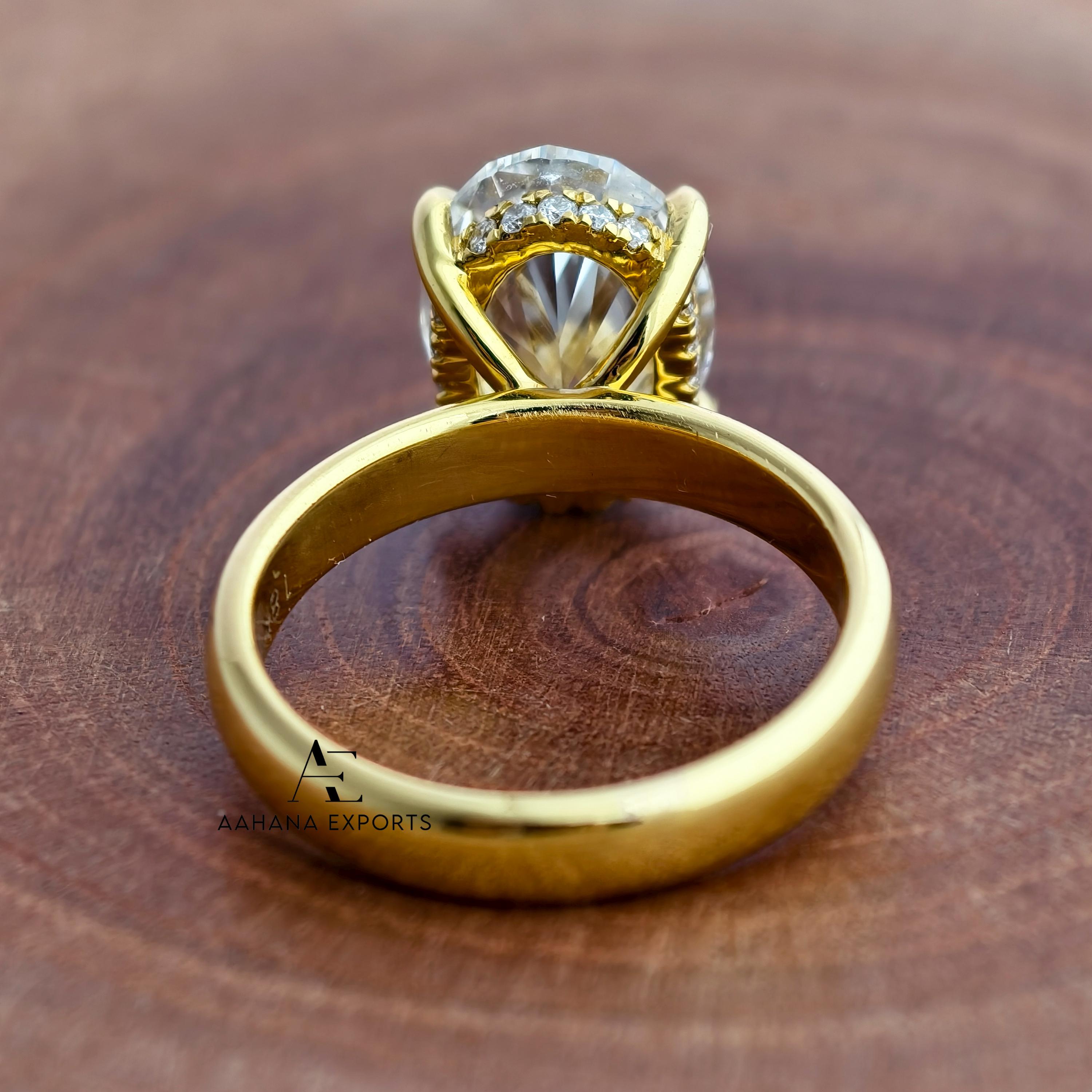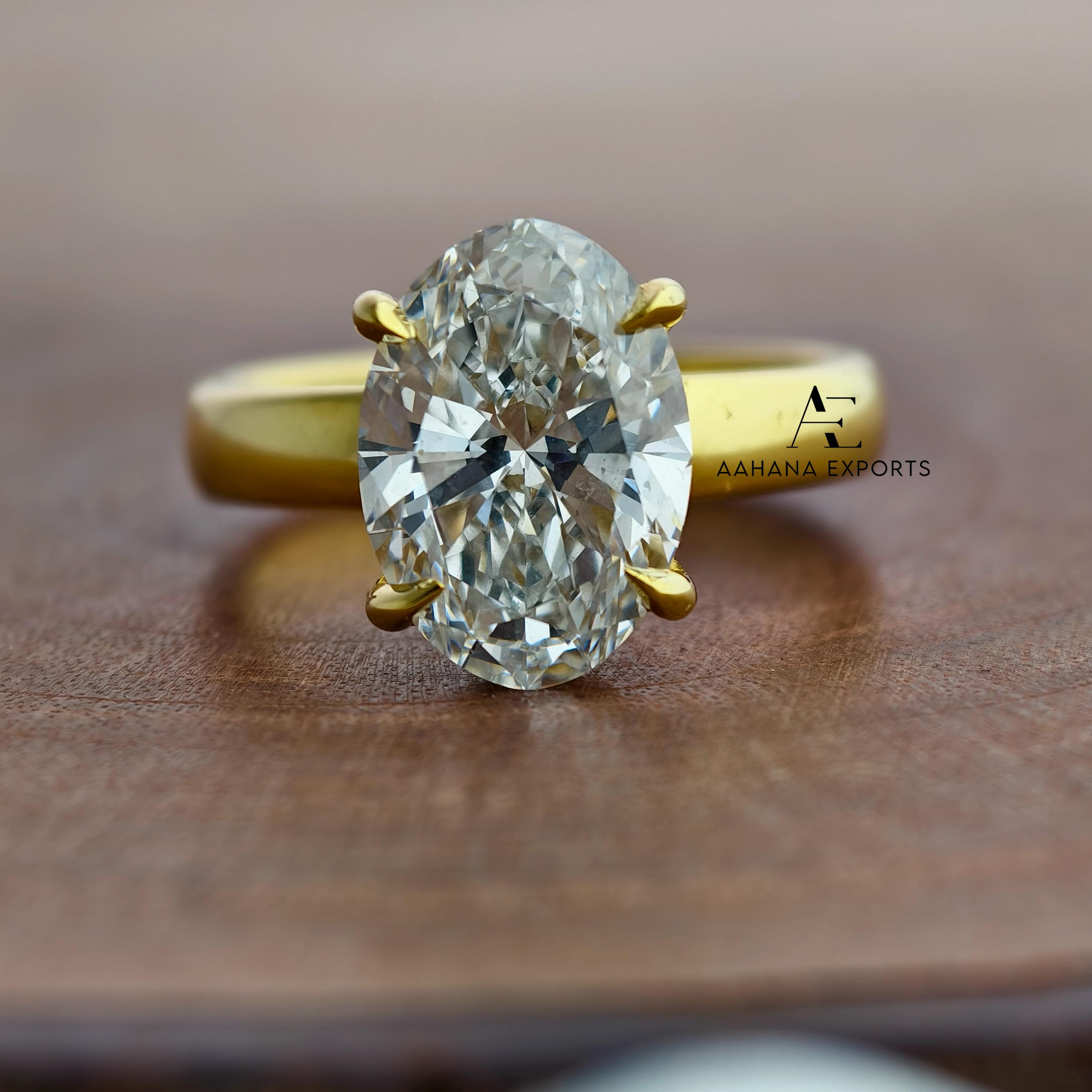 Certified 2.00 CT Lab Grown Diamond Ring, 3.00mm Cigar Band Oval Lab Diamond Engagement Ring, Hidden Halo Ring, Solid 18KT Yellow Gold Ring.