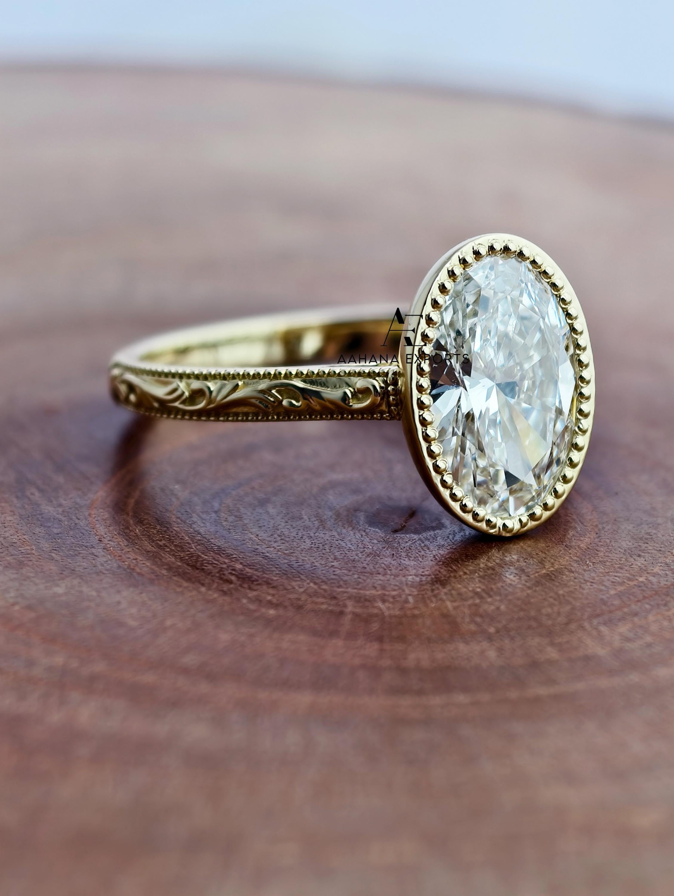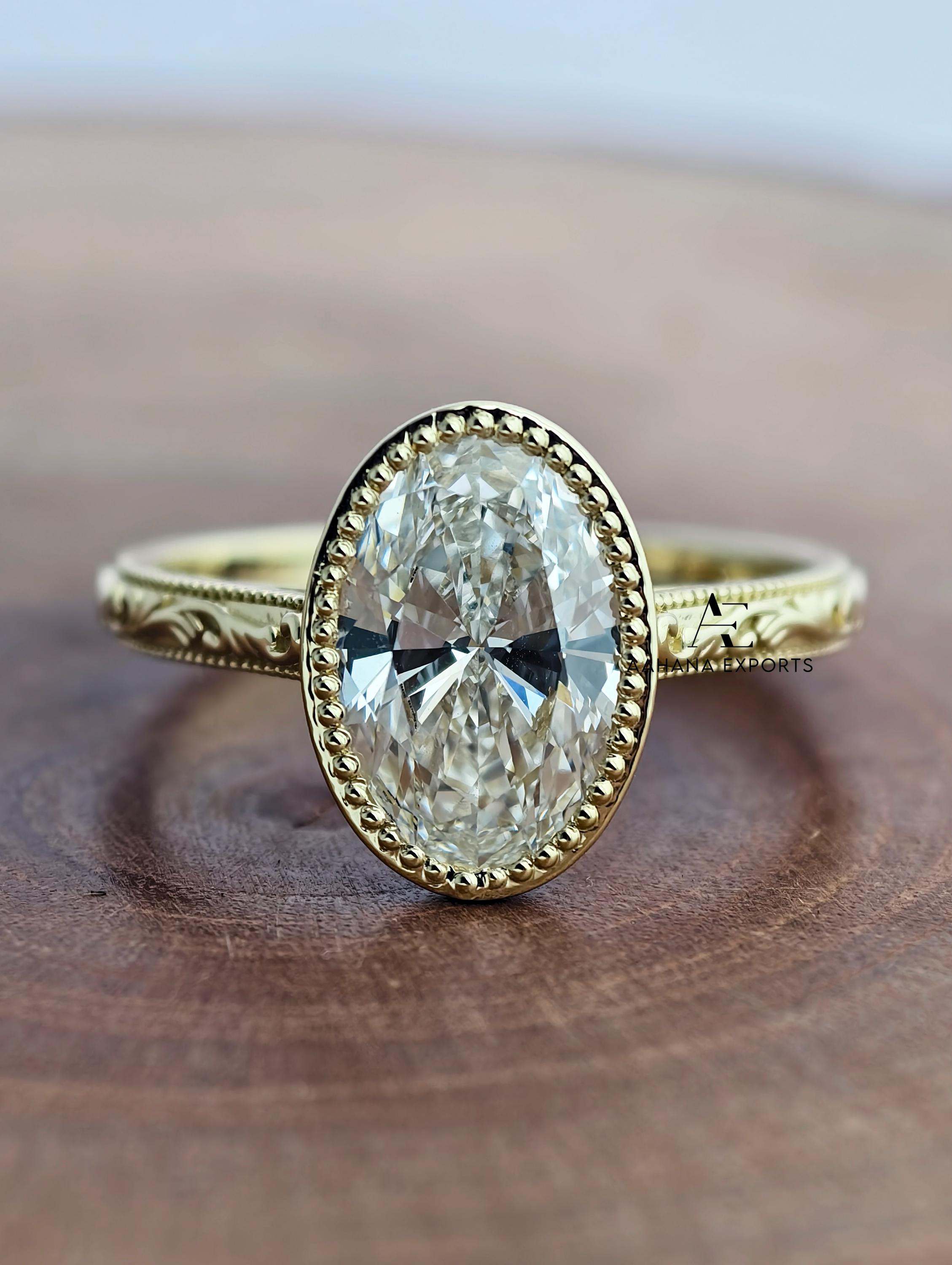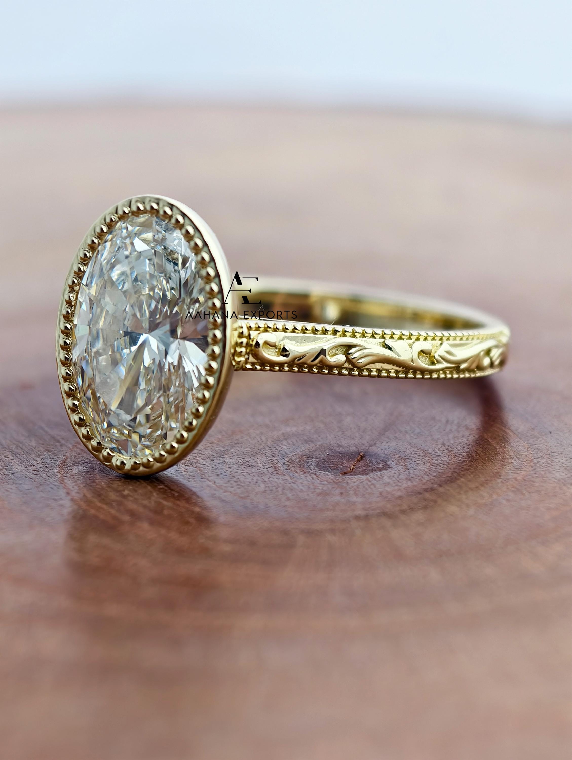 3 Carat Oval Lab Grown Diamond Engagement Ring, Milgrain Ring, Solitaire Ring, Oval Lab Grown Ring, Oval cvd Diamond Ring, Wedding Ring.