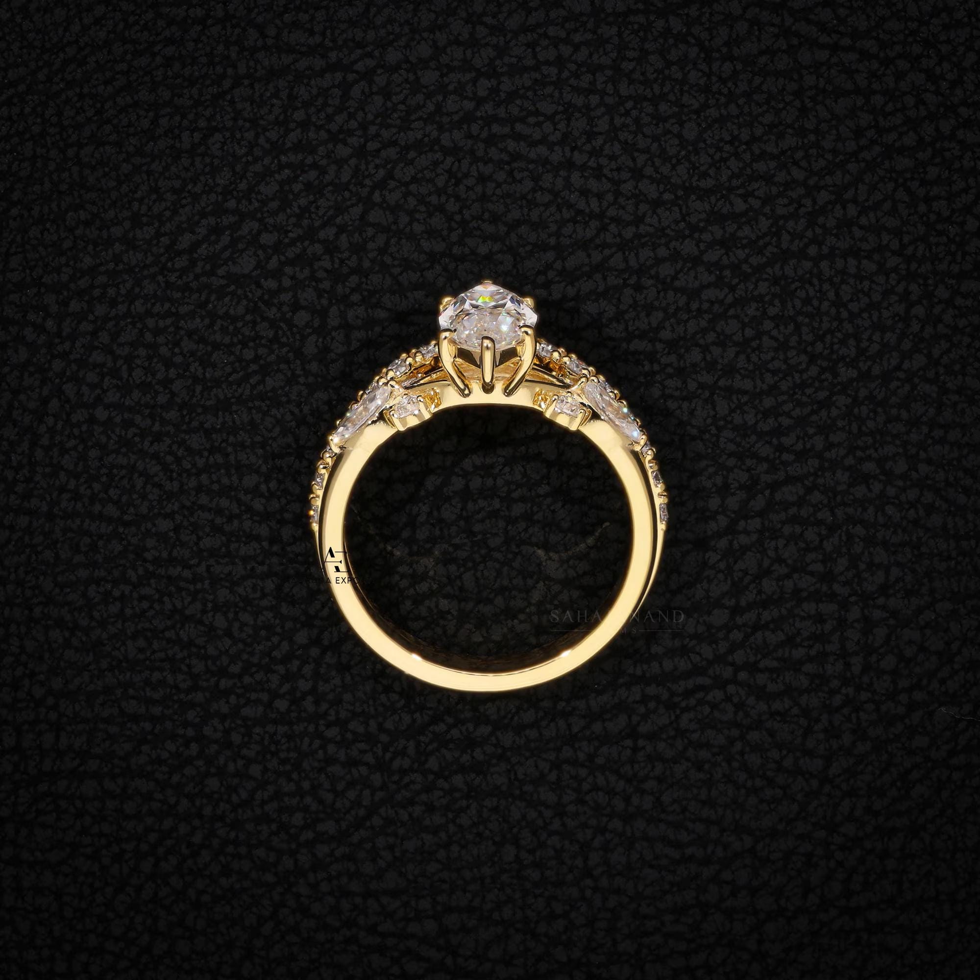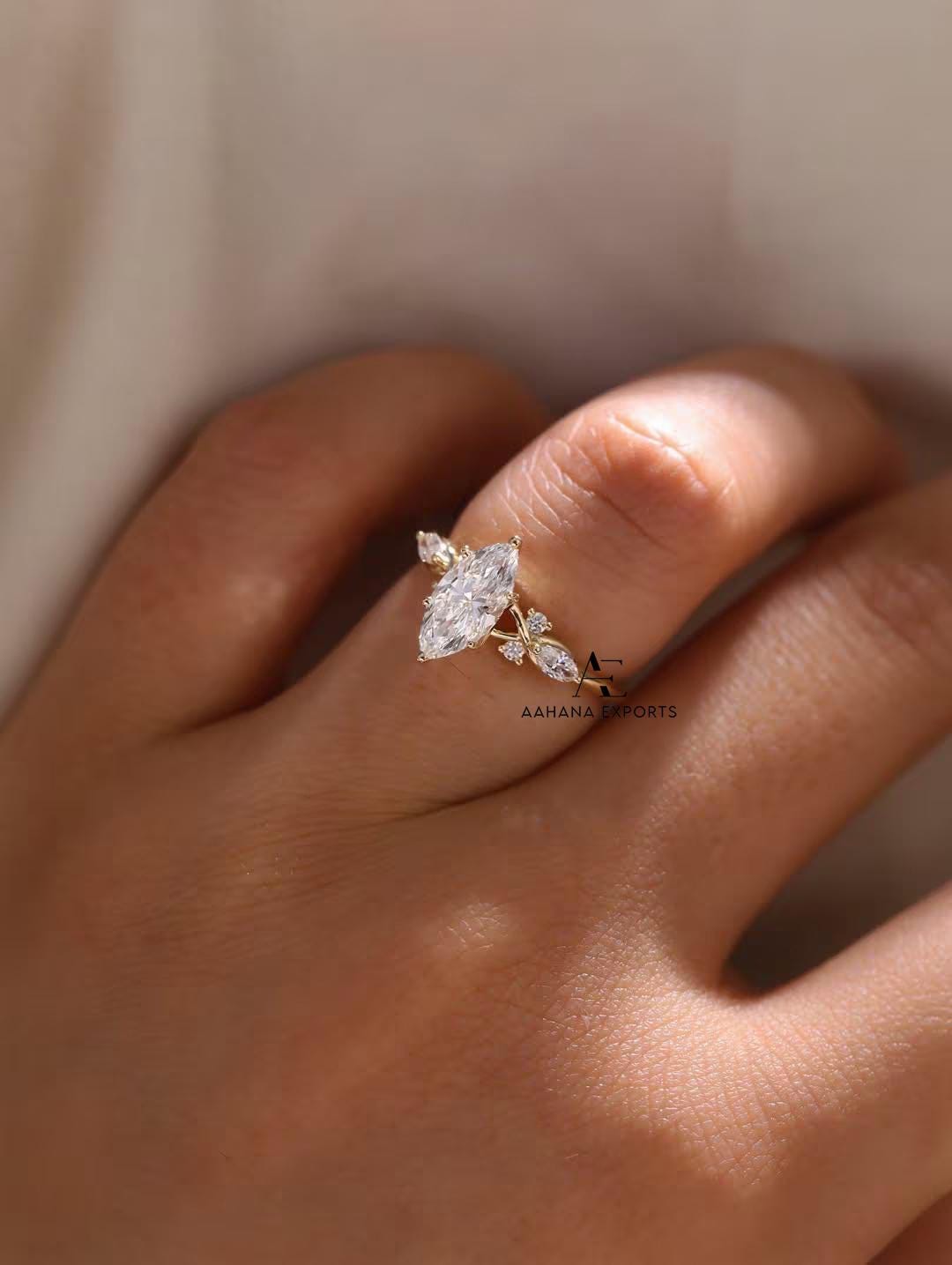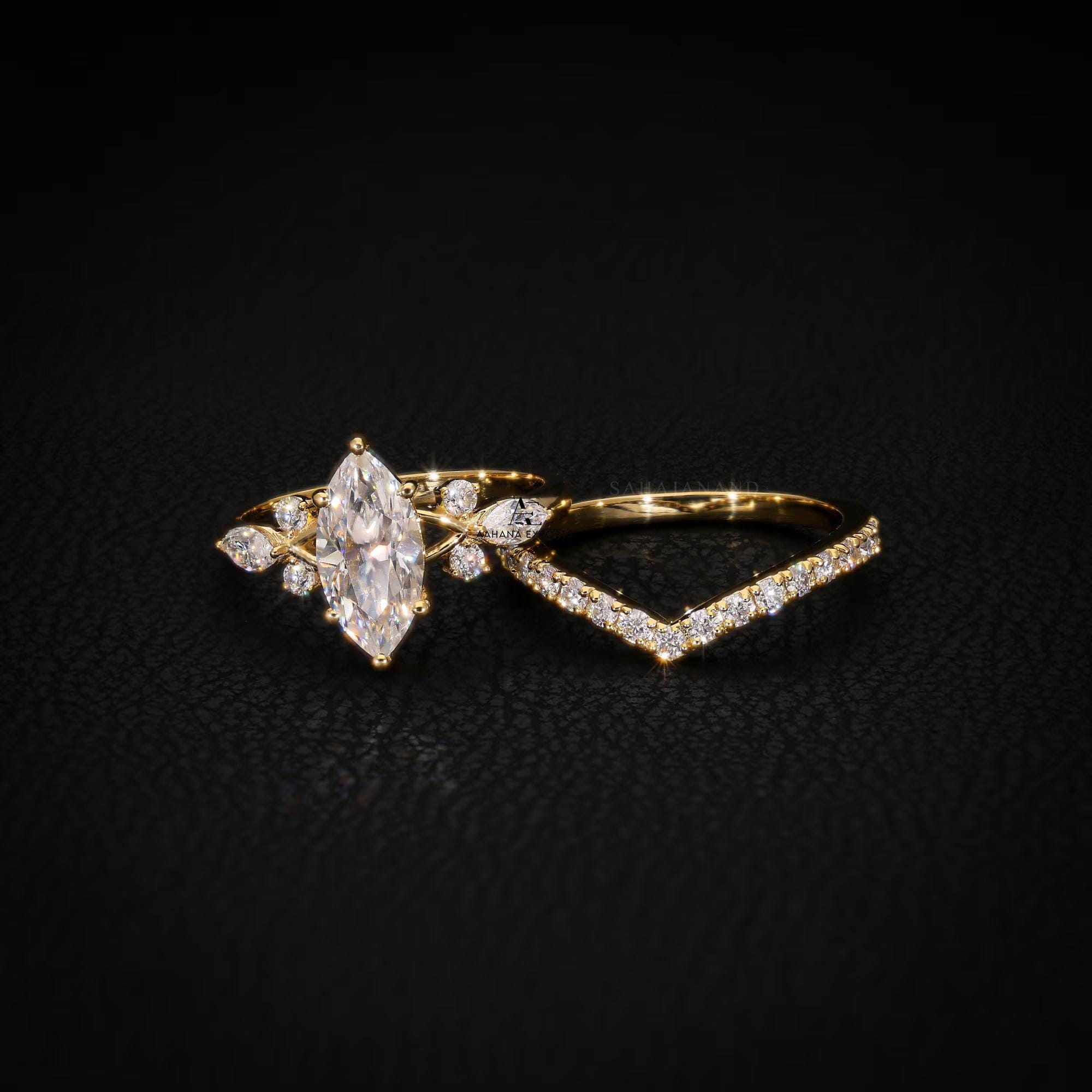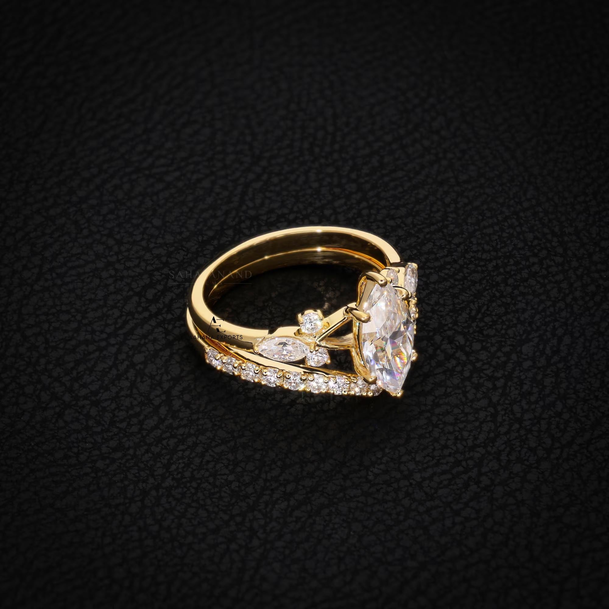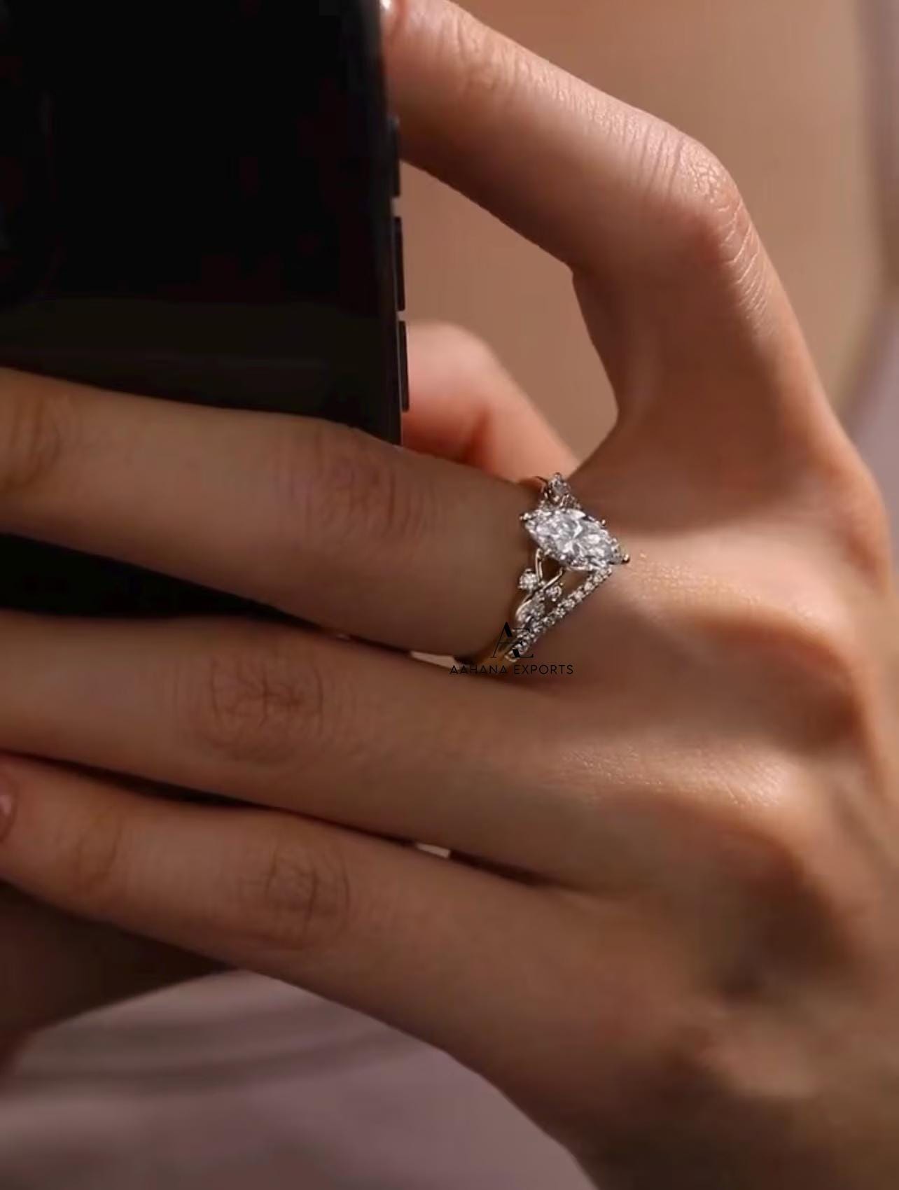 2 CT Marquise Lab-Grown Diamond engagement ring set Unique Rose gold ring Diamond ring leaf band Bridal Set Promise Ring Anniversary Ring