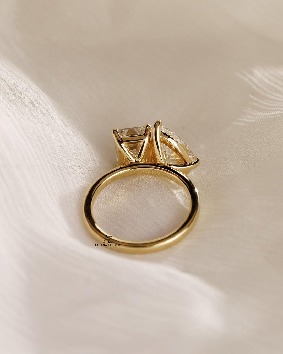 4 TCW Yellow Gold Toi Et Moi Engagement Ring | Pear and Emerald Cut Lab-Grown Diamond | Vintage Two-Stone Ring | Unique Bridal Jewelry