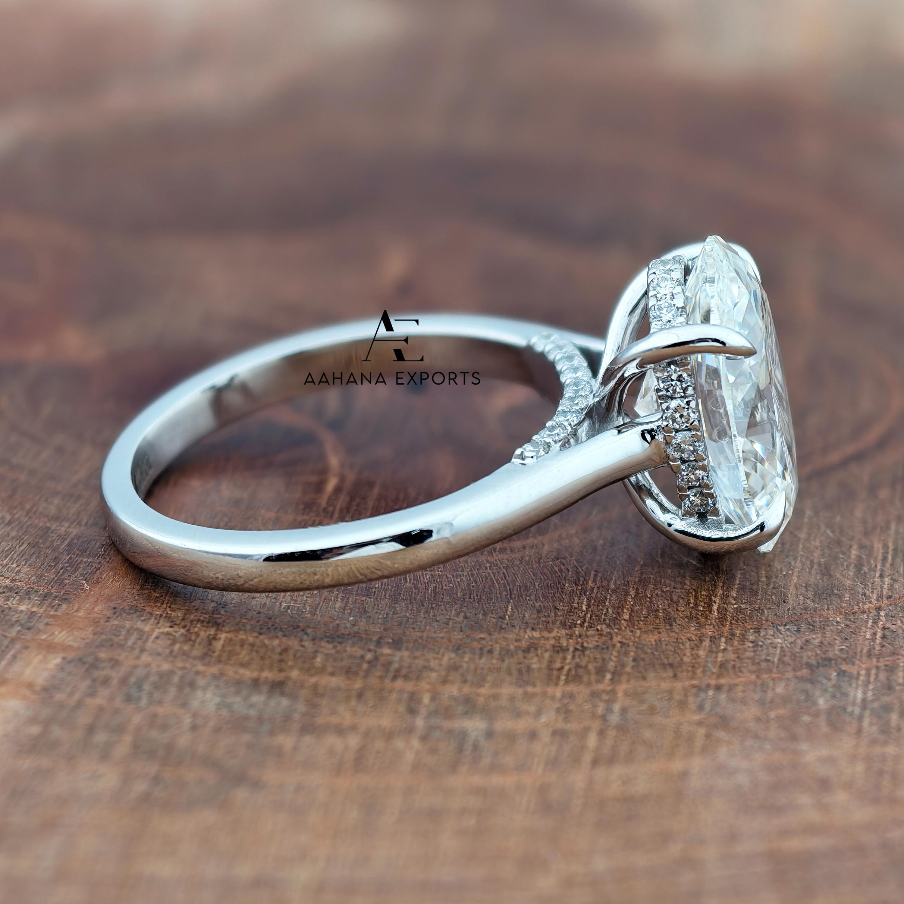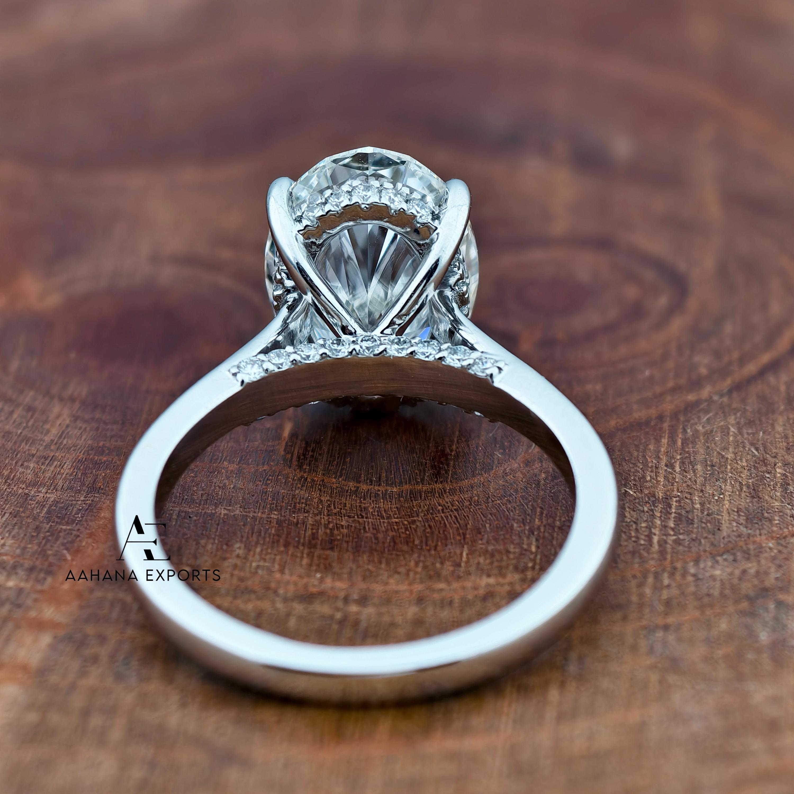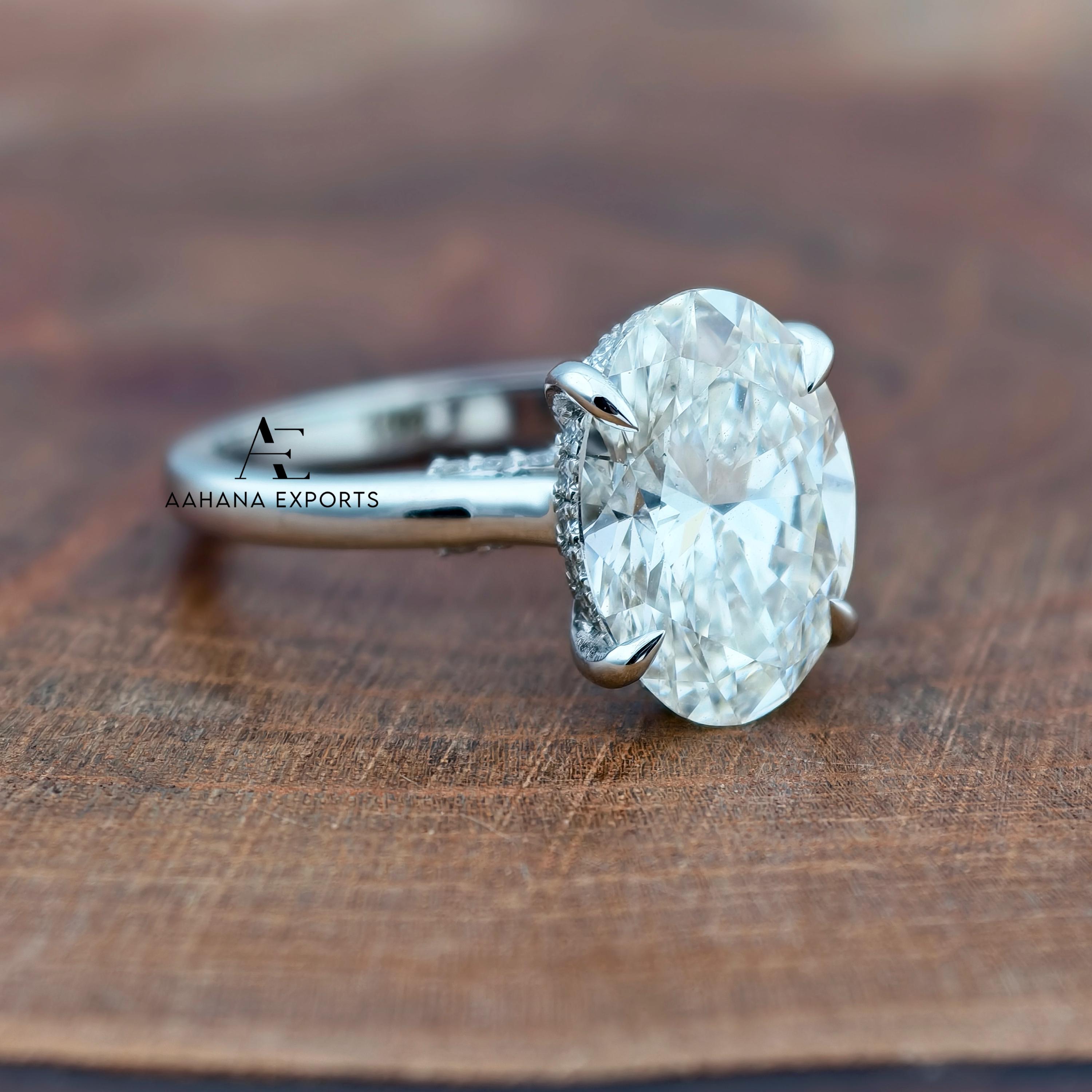 IGI Certified Oval Lab Grown Diamond Engagement Ring - White/Yellow/Rose Solid Gold.