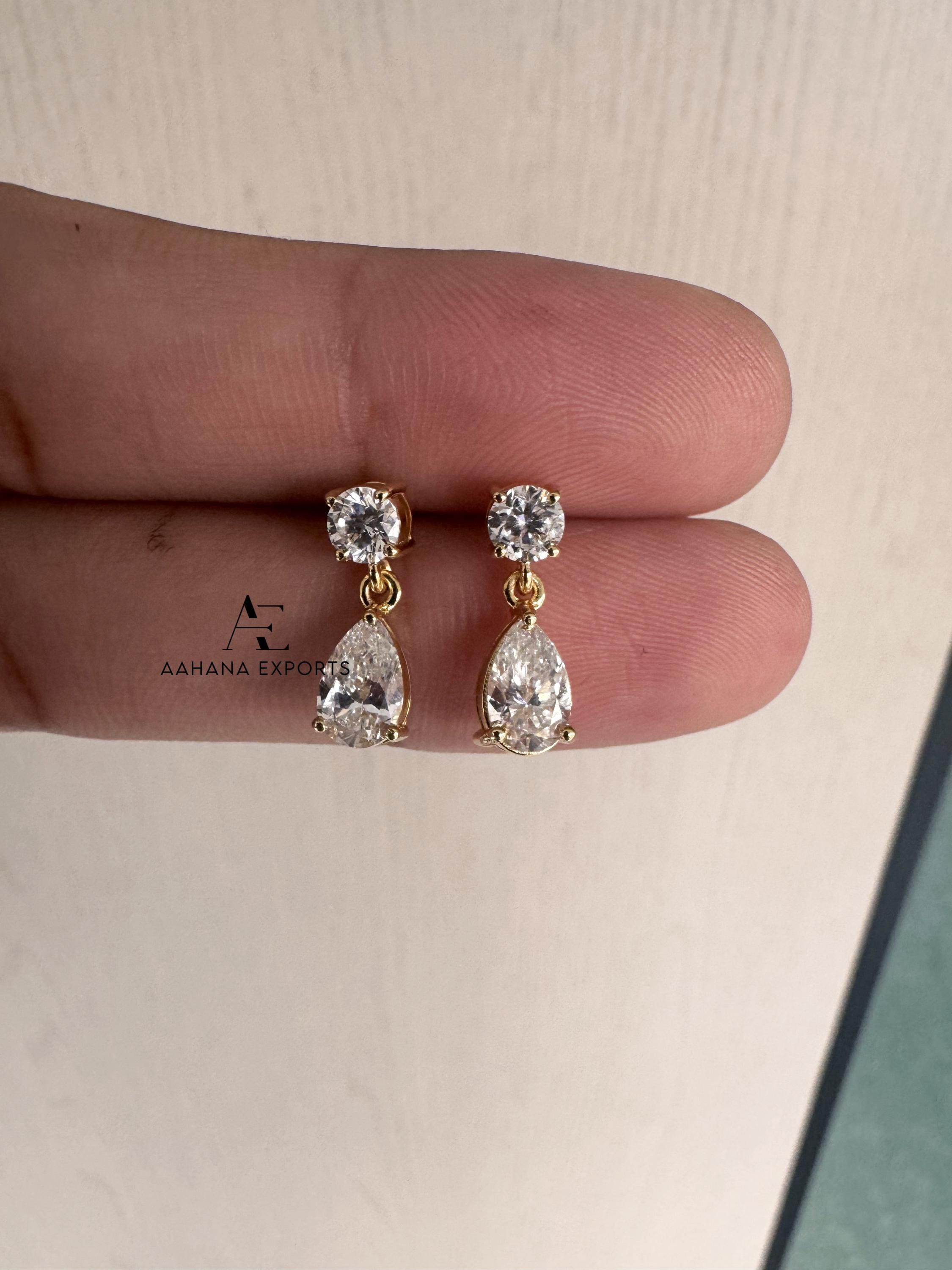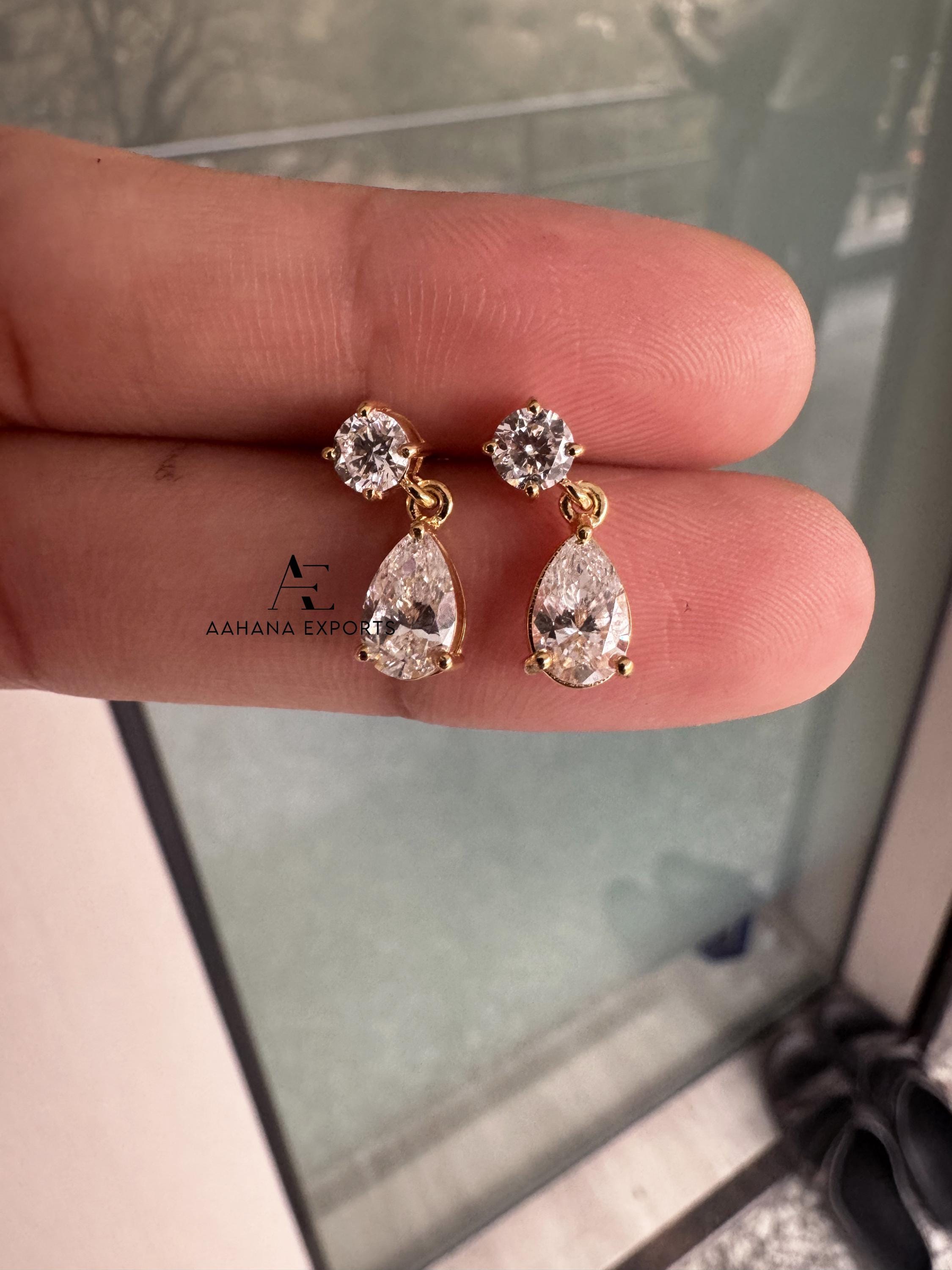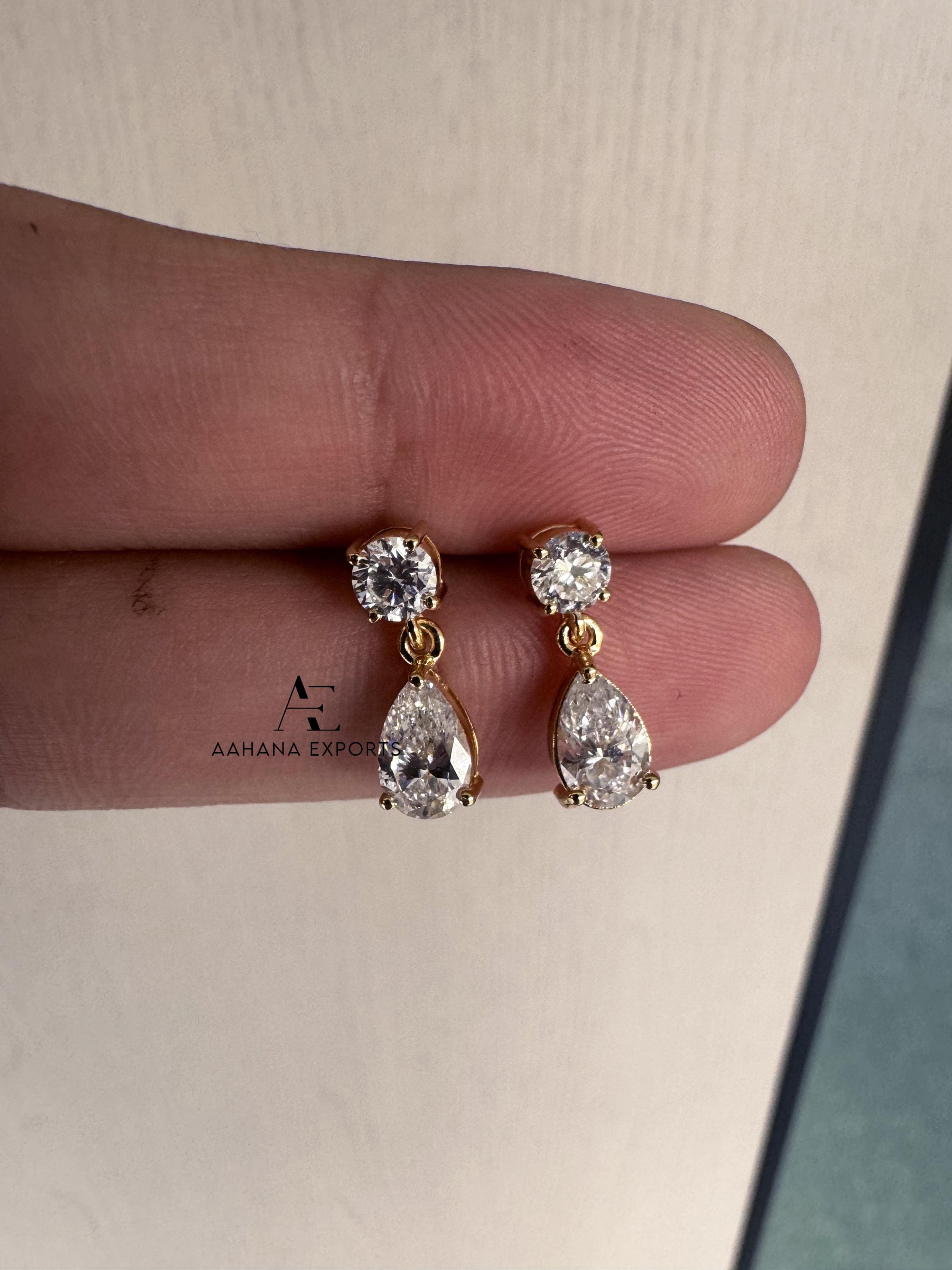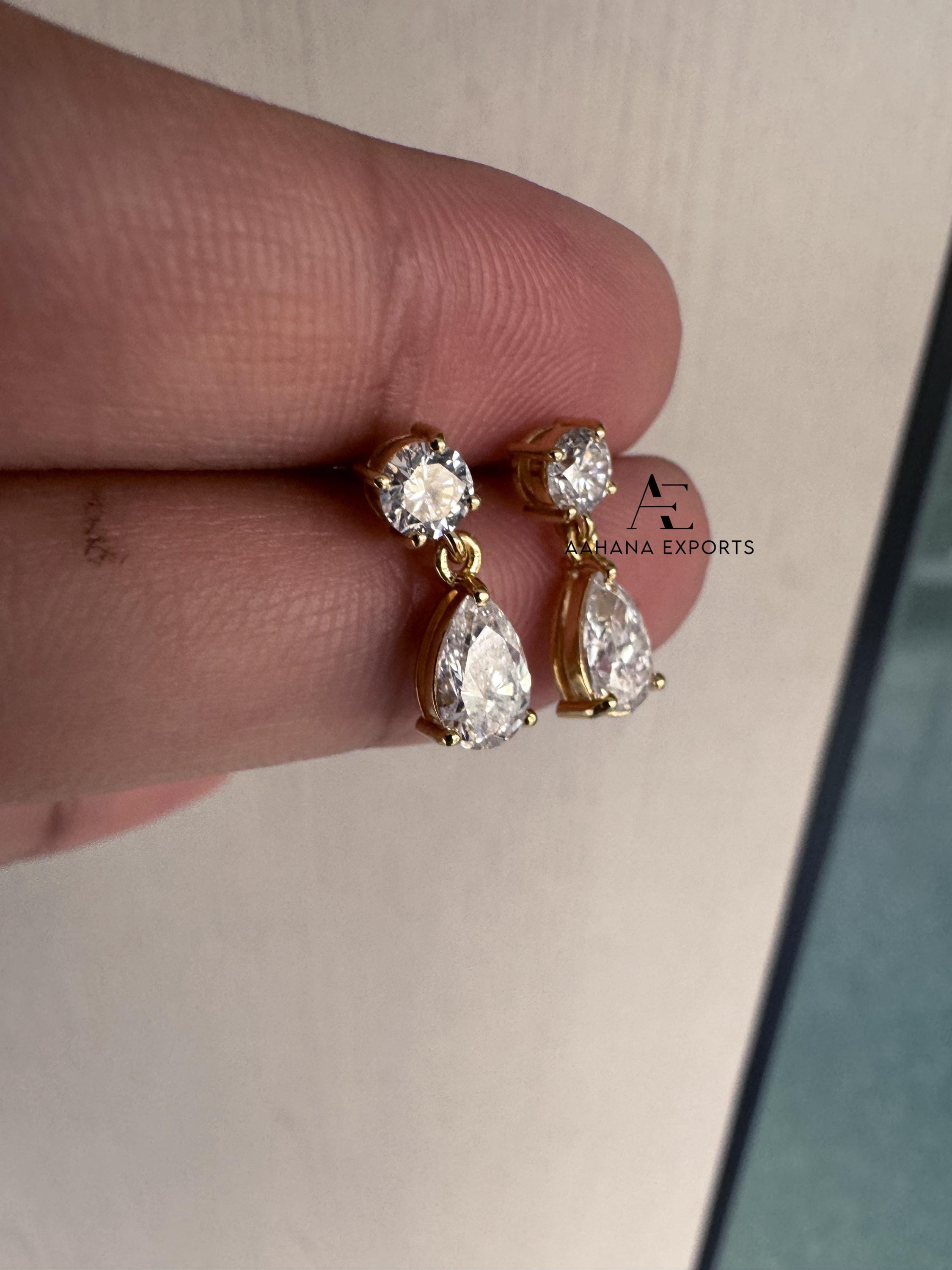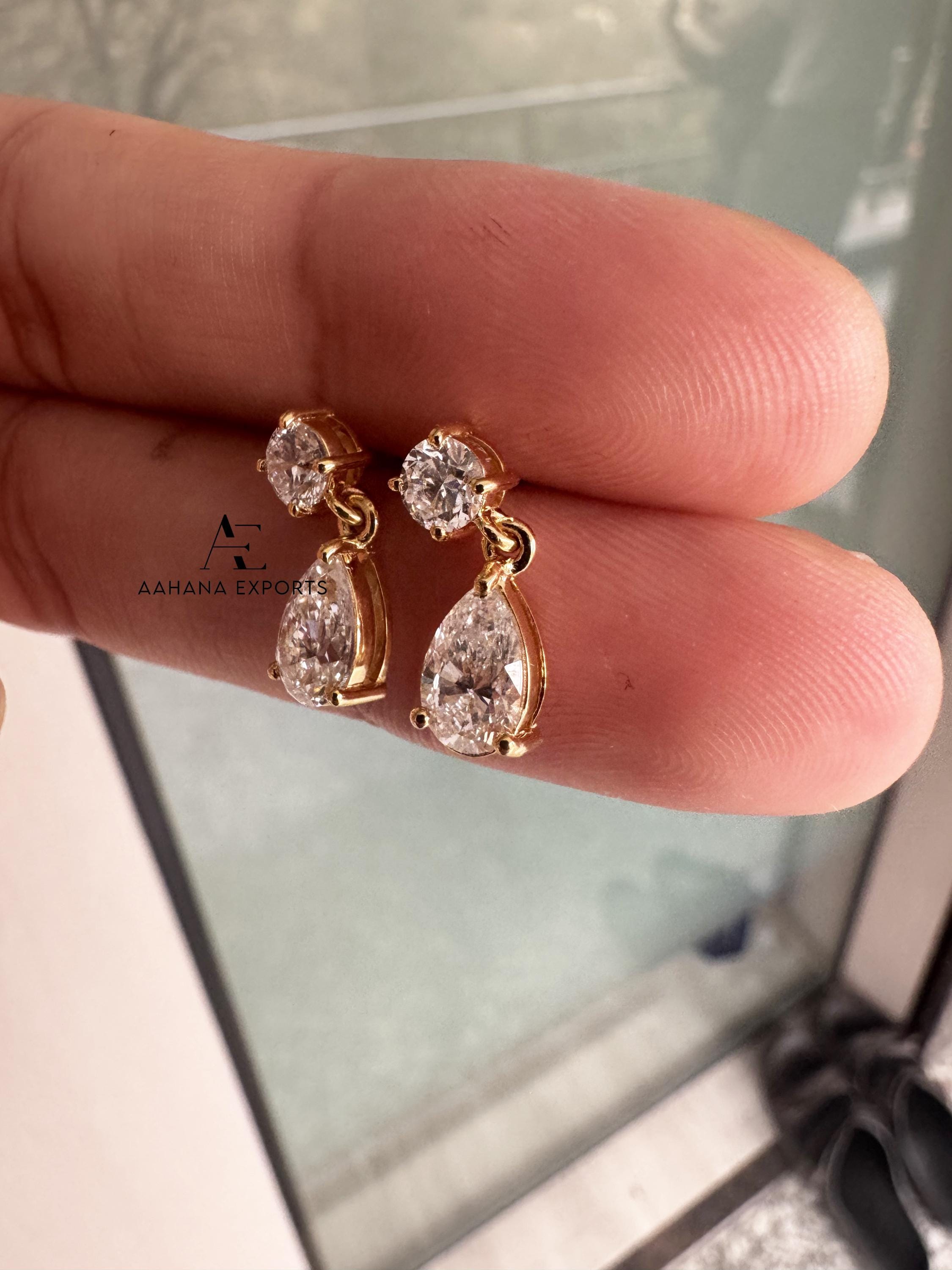 1.20 TCW Pear Tear Drop Diamond Earrings, Pear Cut Lab Grown Diamond Earrings, Round Earrings, IGI Certified Diamonds, Wedding Earrings