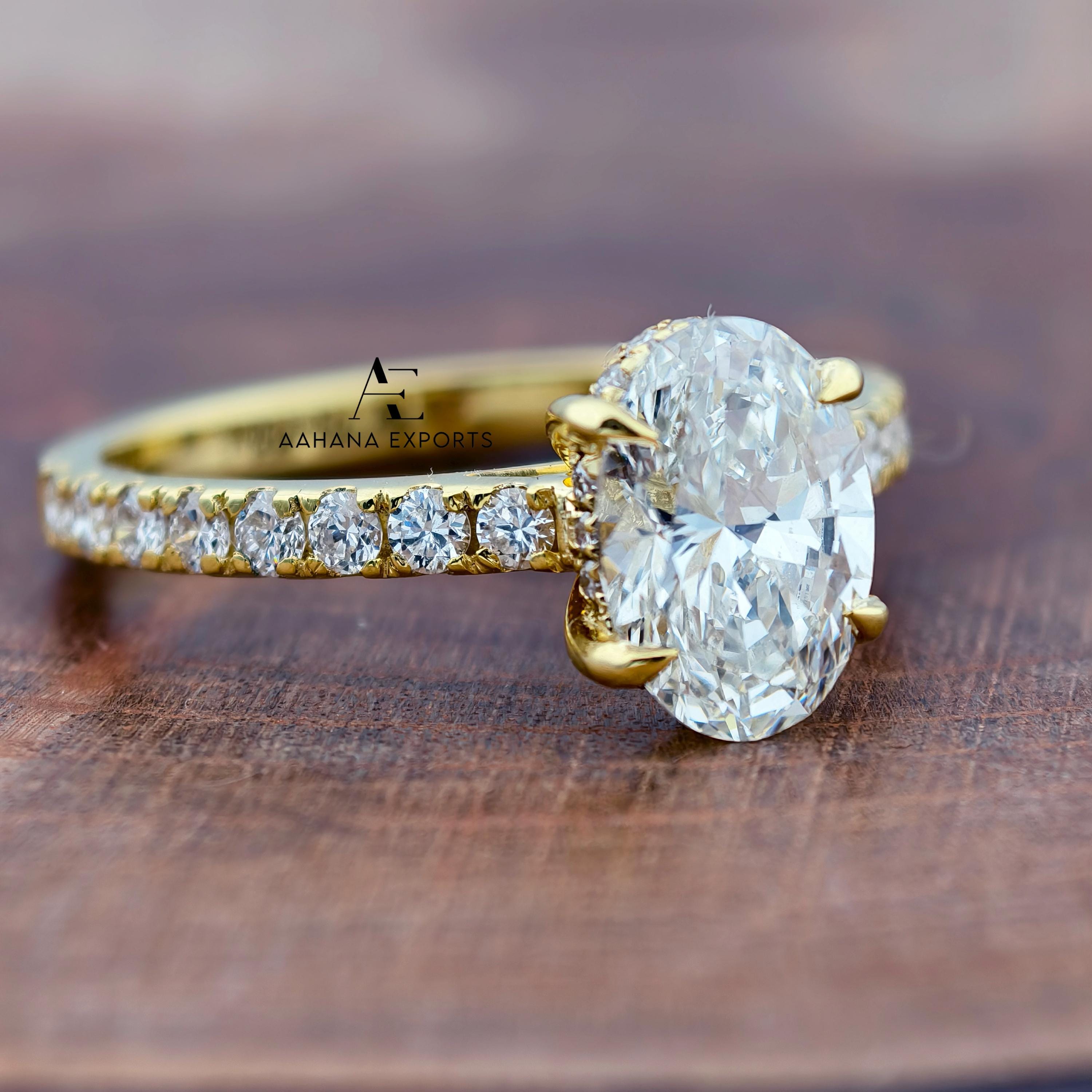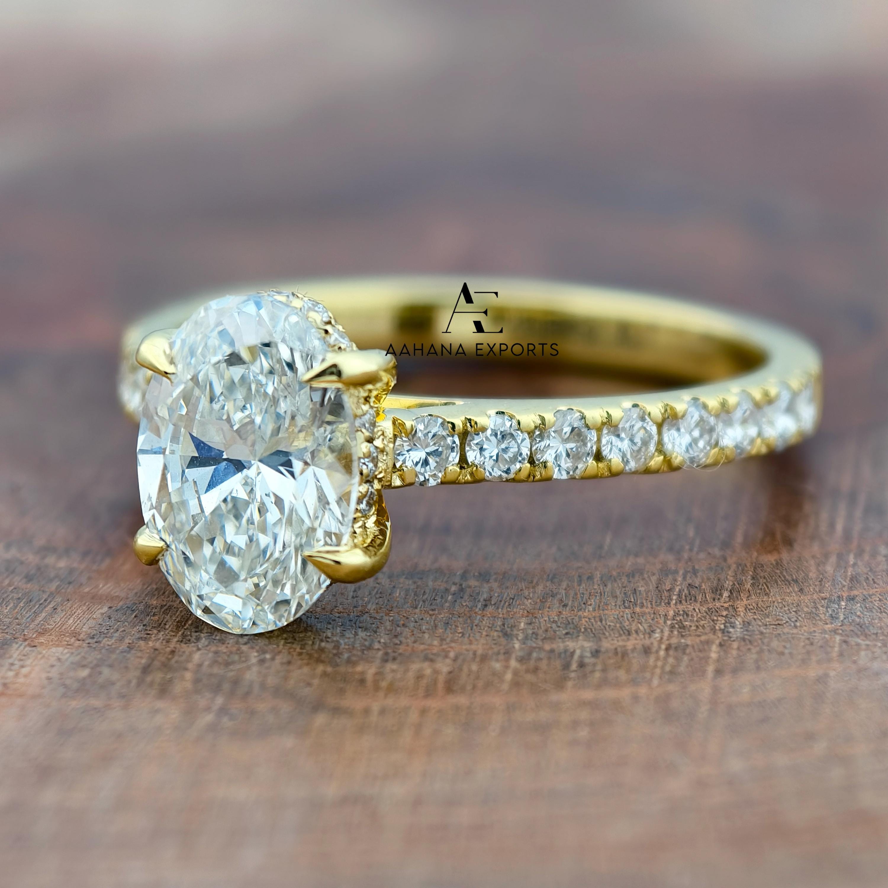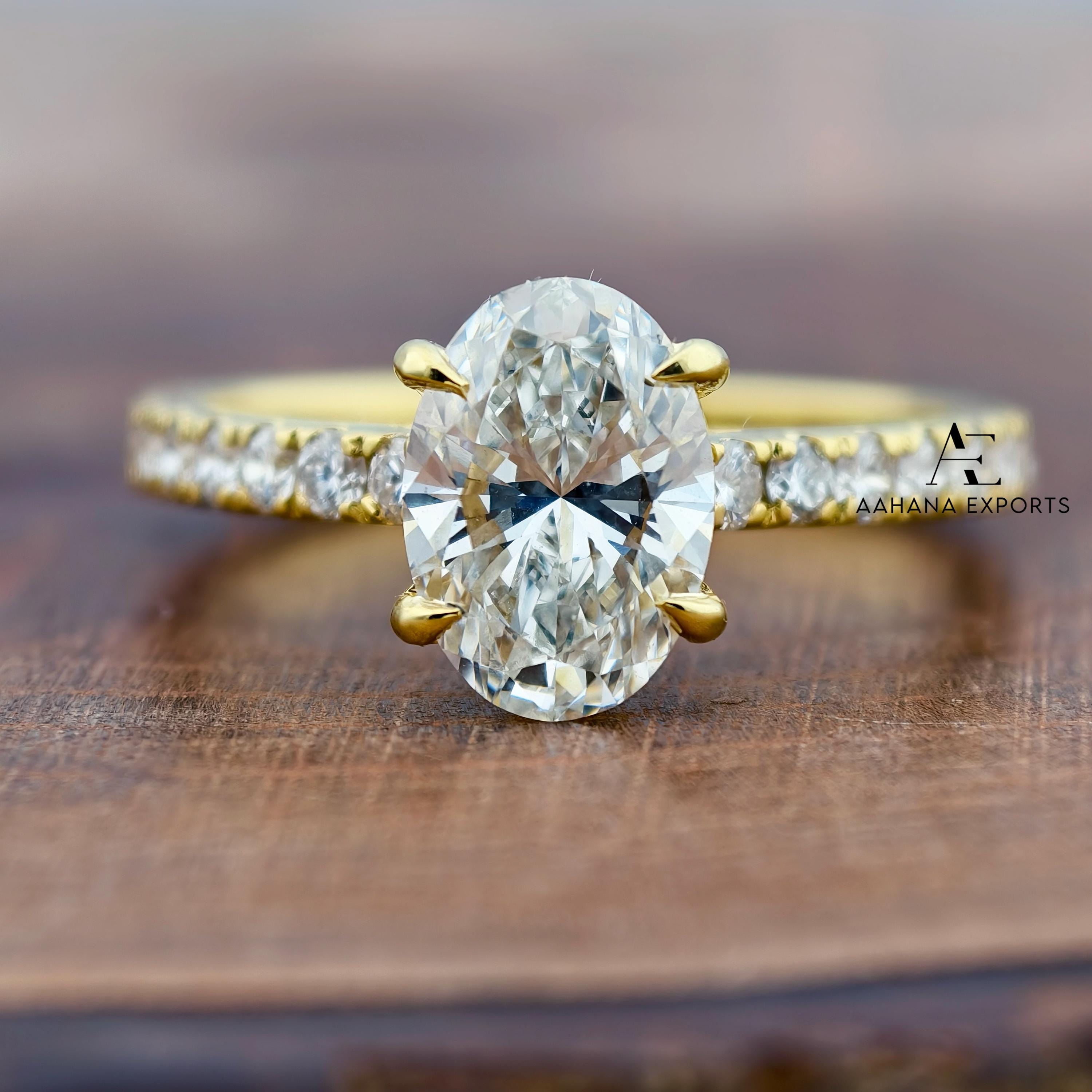 2.00 CT IGI Certified Oval Cut Lab Grown Diamond Engagement Ring, Side Round Diamonds, Wedding Ring For Women, Anniversary Gifts For Her.