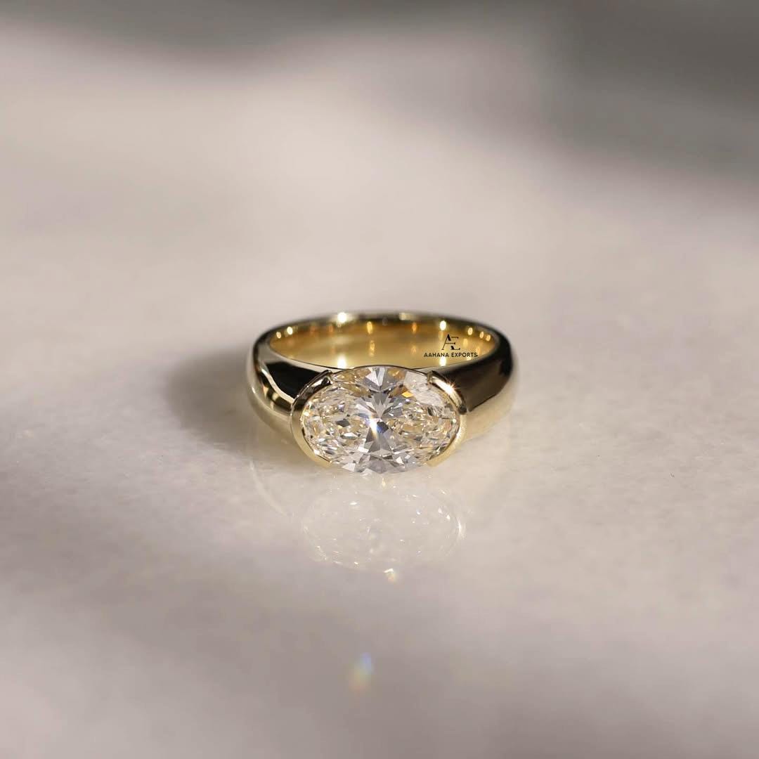 2 CT Oval Lab Grown Diamond Ring / Half Bezel Engagement Ring /10K, 14K or 18K Gold Solitaire Ring / East West Ring / Oval Engagement Ring