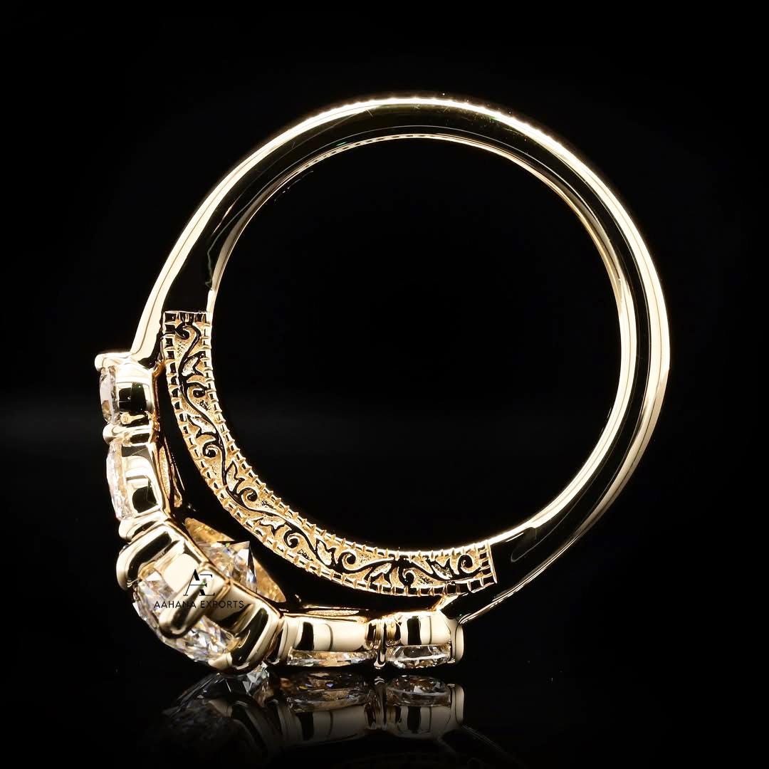 Vintage-Inspired Cathedral Bridge 3 Ct Marquise Lab Grown Diamond Engagement Ring Art Deco 14KT Wedding Ring For Women Anniversary Ring