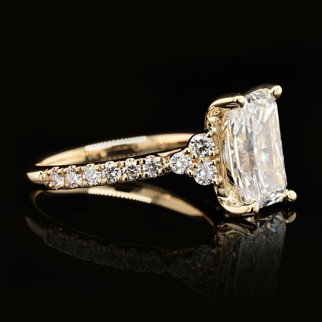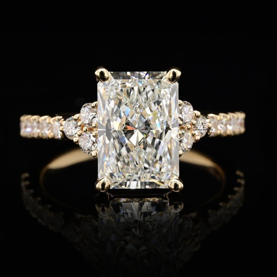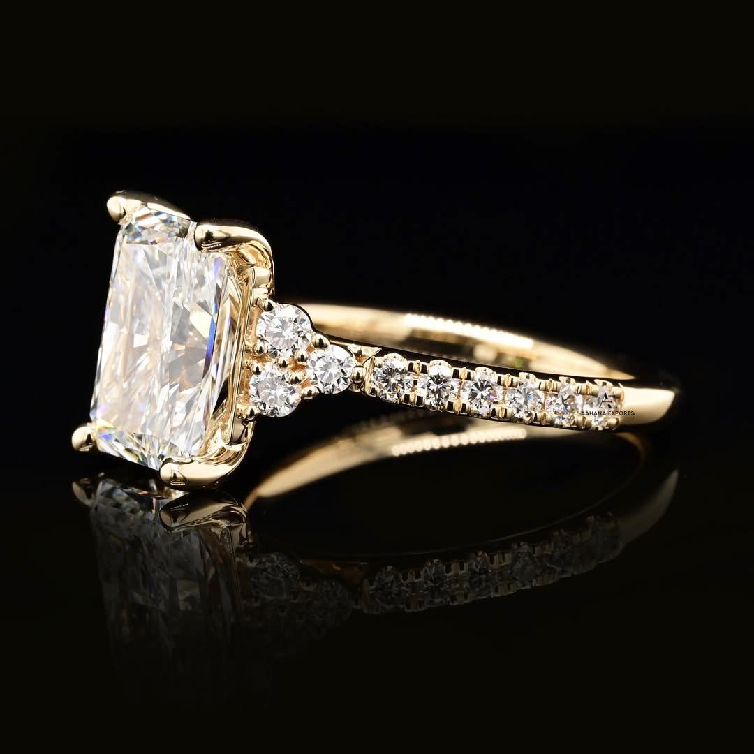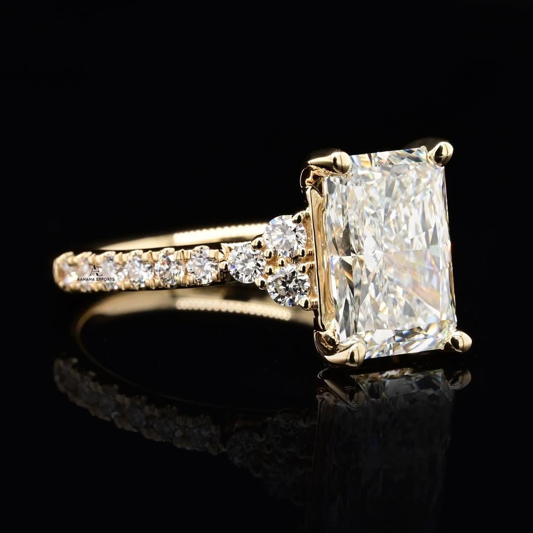 Radiant Cut 2.00 Carat IGI Certified F Color VVS2 Clarity Lab Grown Diamond Engagement Ring Hidden Halo and Side Round Diamonds, 14k Gold
