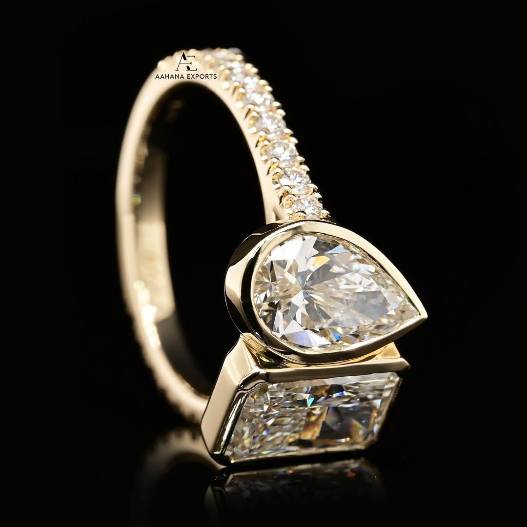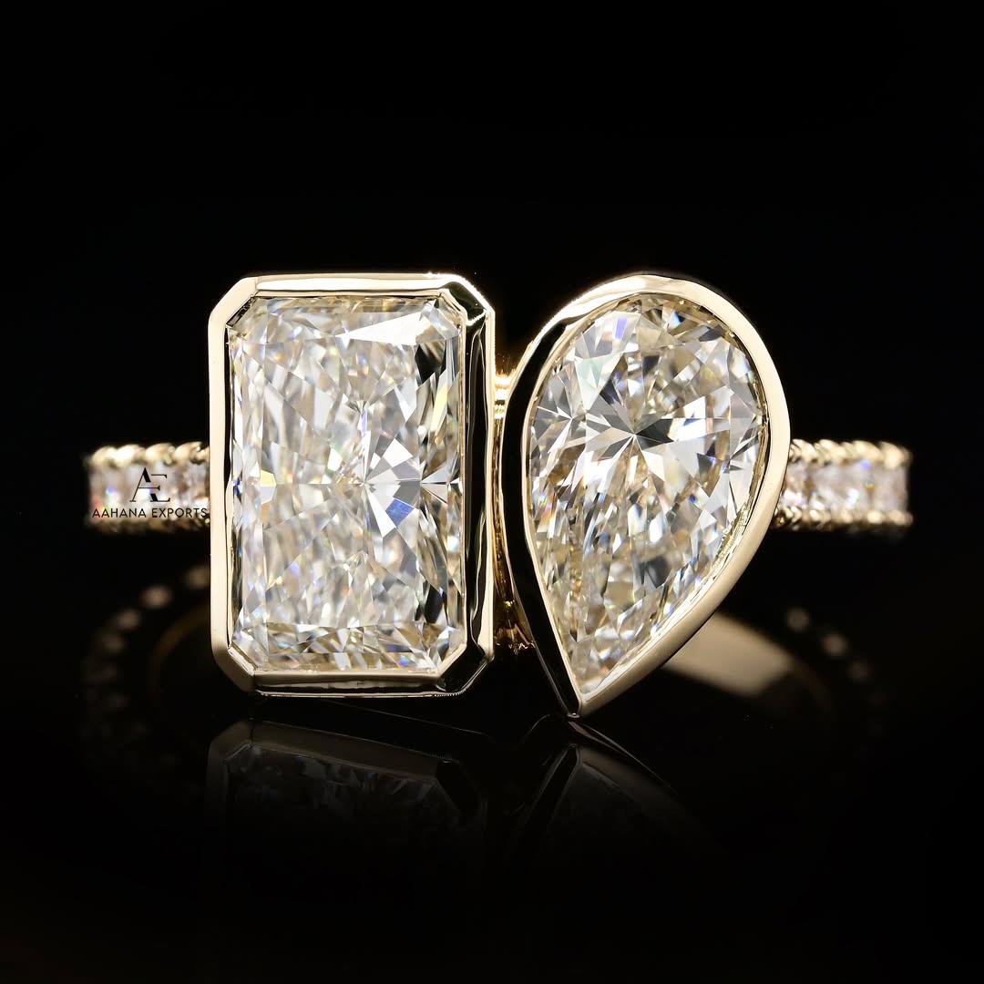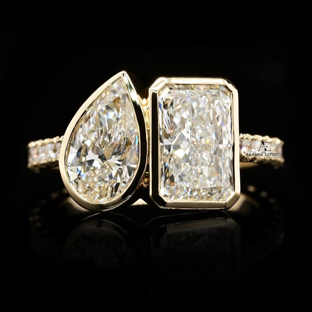 2+2 CT Toi Et Moi Lab Diamond Ring | Emerald and Pear Cut Toi Et Moi Ring | Lab Grown Diamond Toi Et Moi Ring | Toi Et Moi Engagement Ring