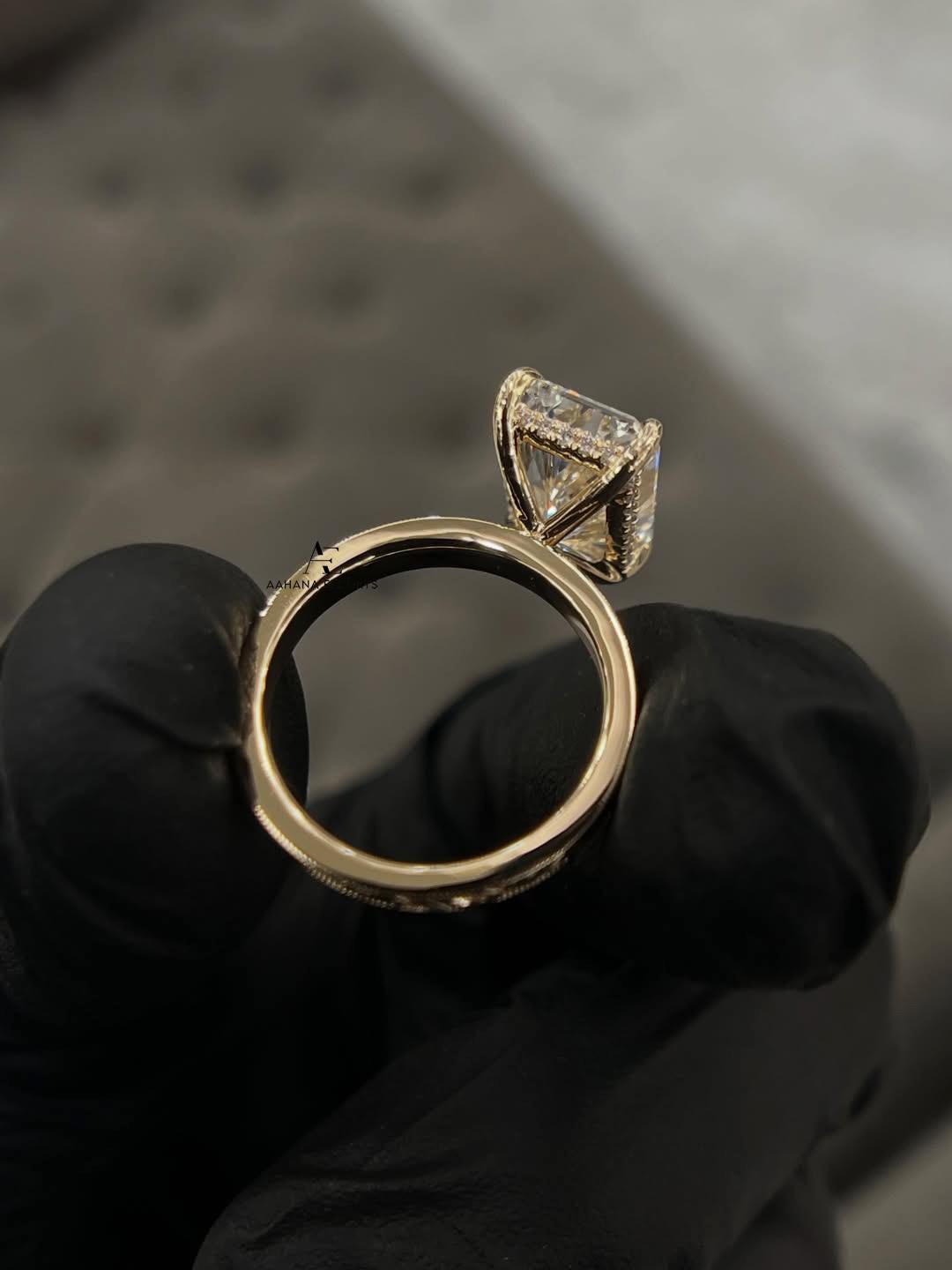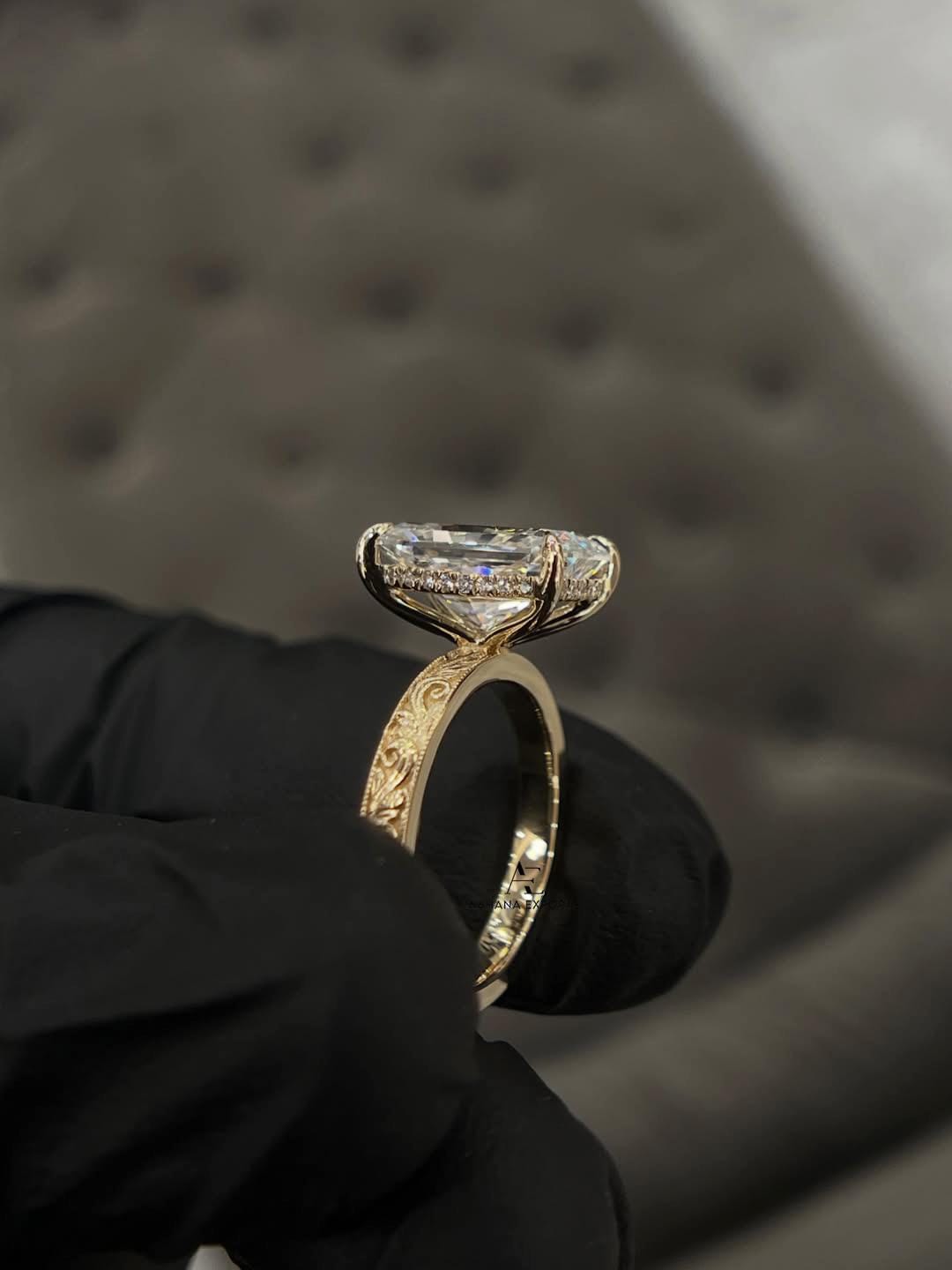 Victorian 3ct Radiant Cut Lab-Grown Engagement Ring Engraved Lab-Grown Wedding Ring Solid Gold Cathedral Setting Promise Rings For Women