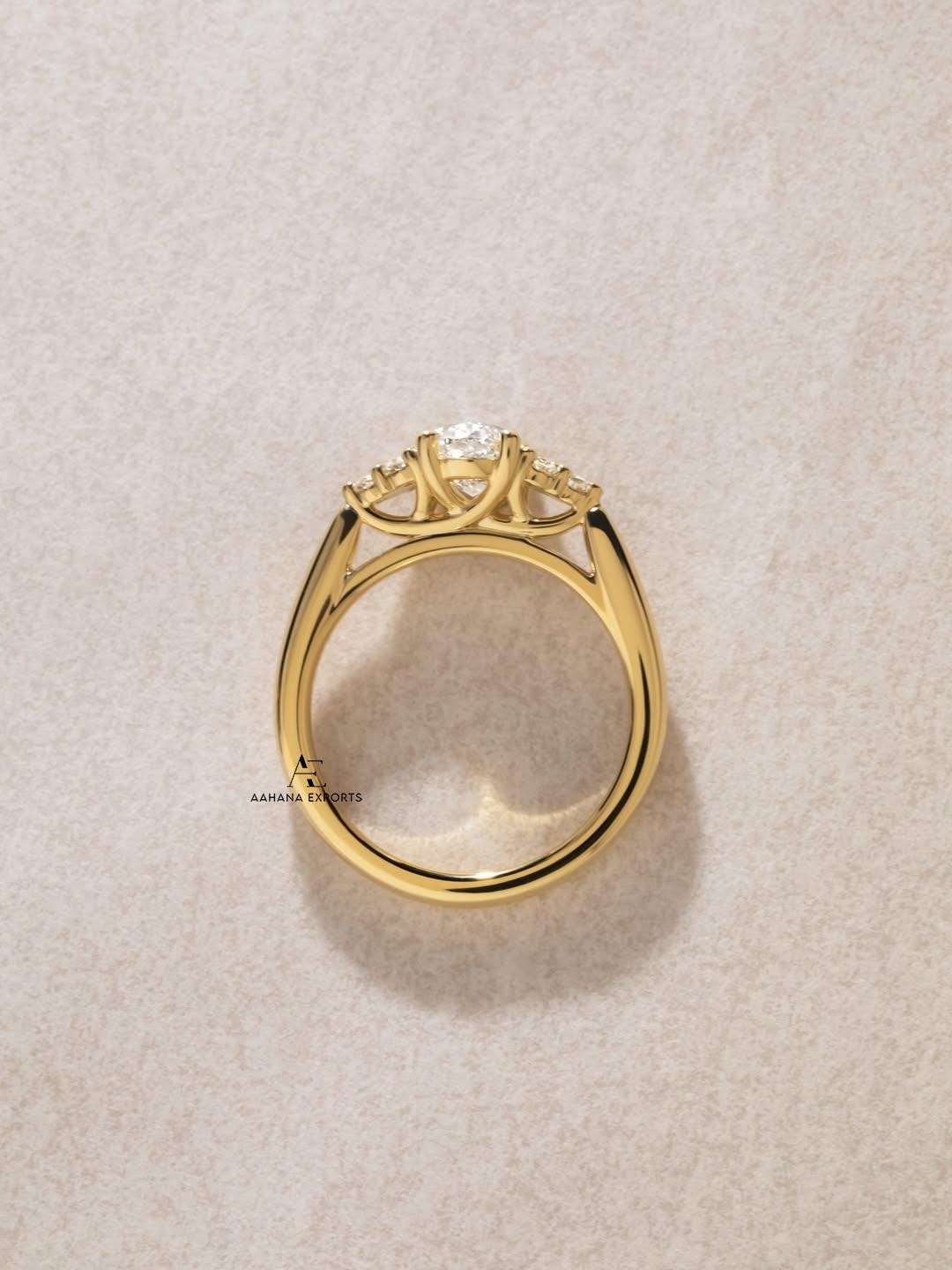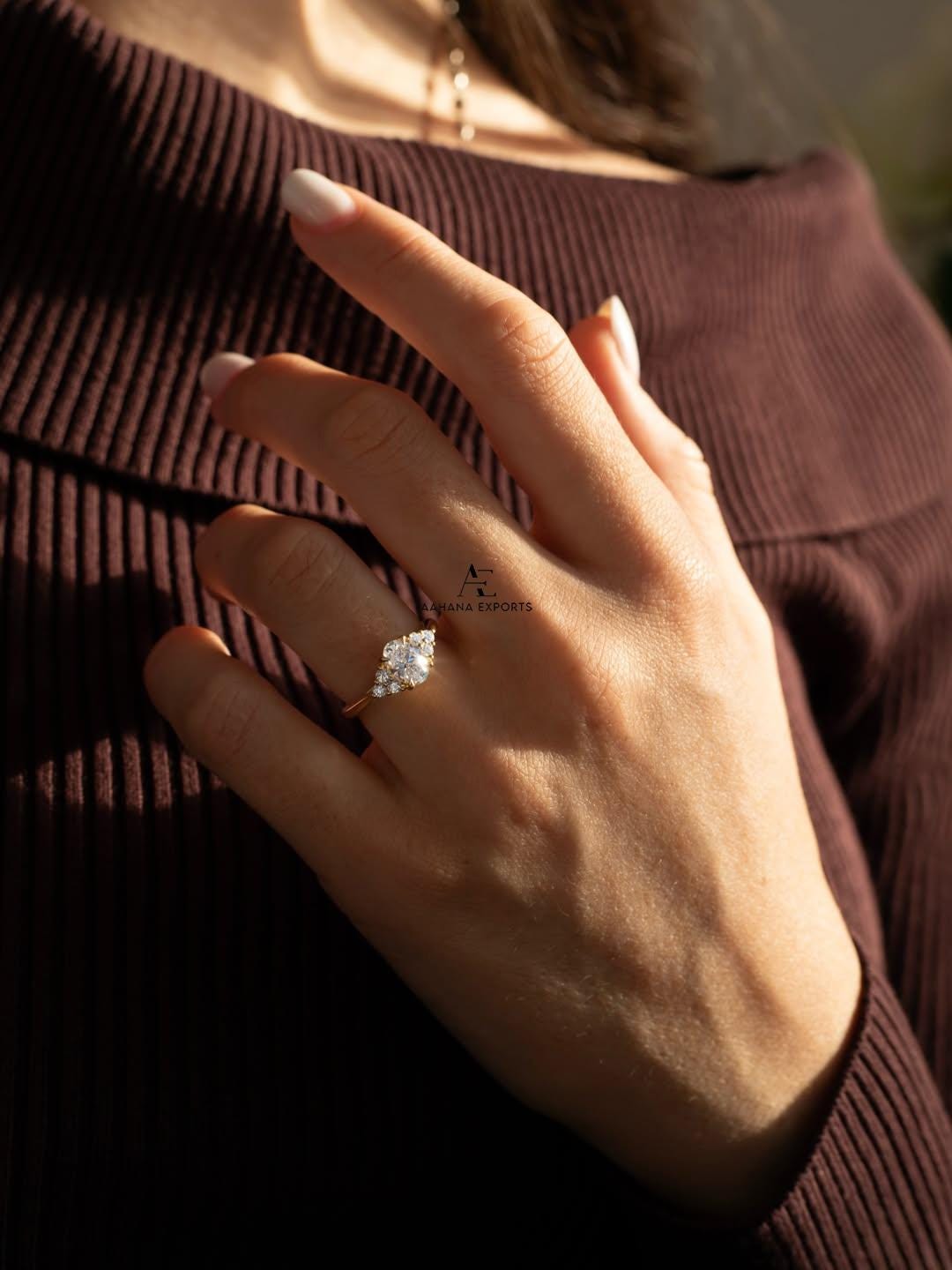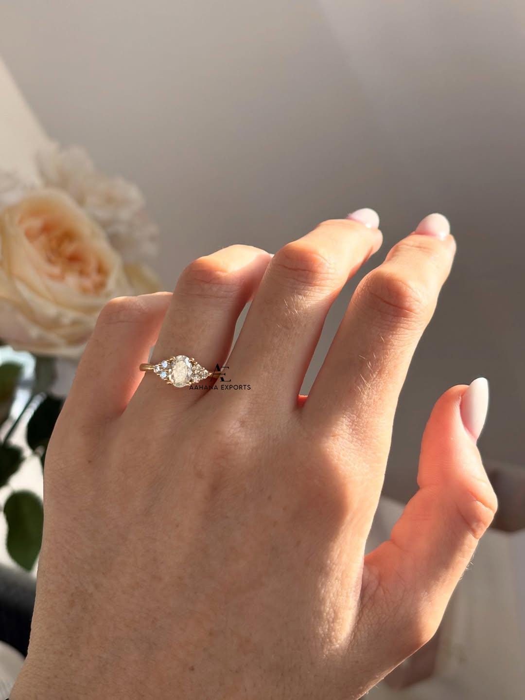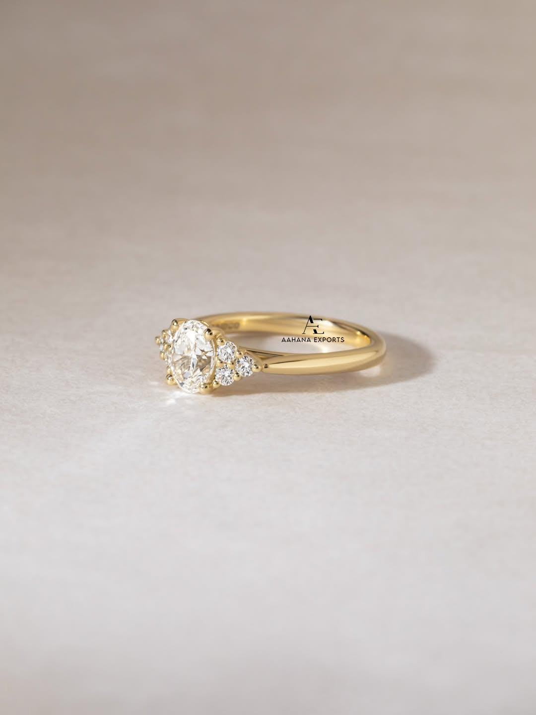 1.00 carat E Color VVS2 Clarity Oval Cut Lab Grown Diamond Engagement Ring, Side Round Cut Diamonds 14k Yellow Gold, Cluster Diamond Ring