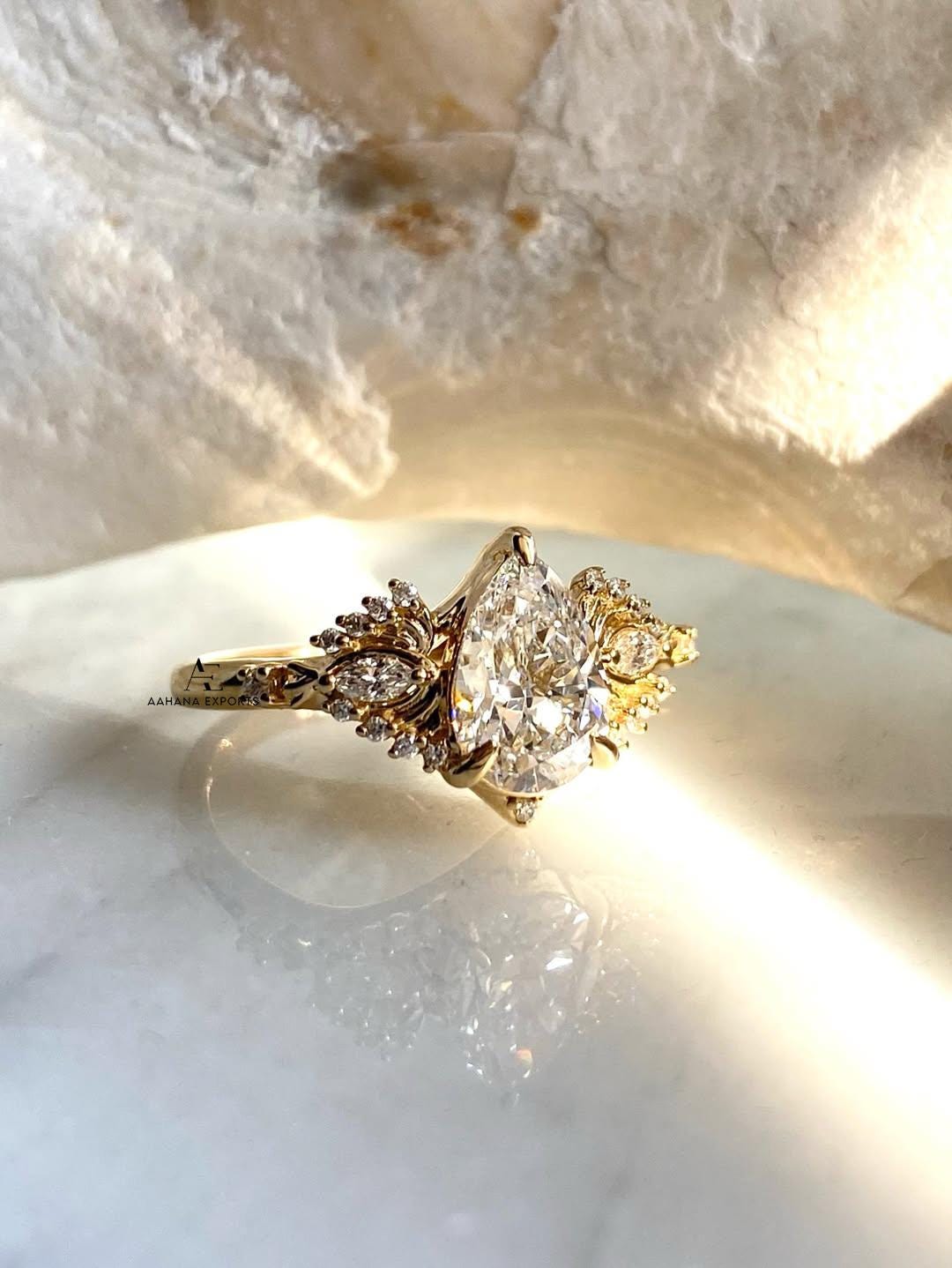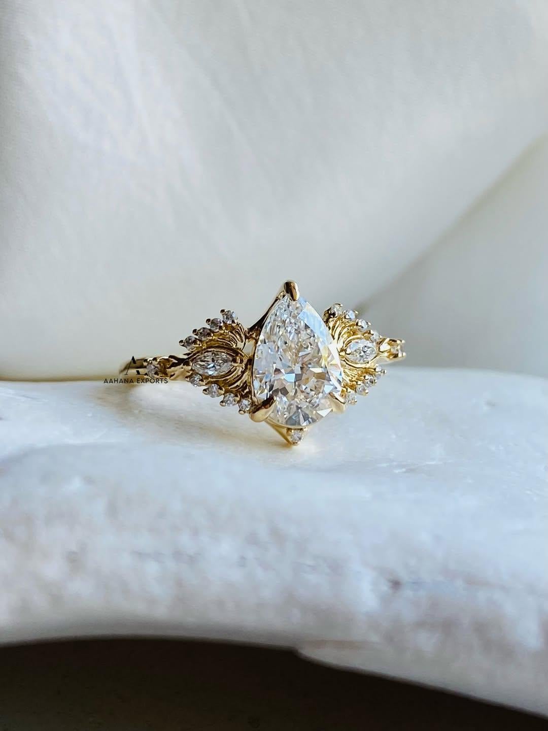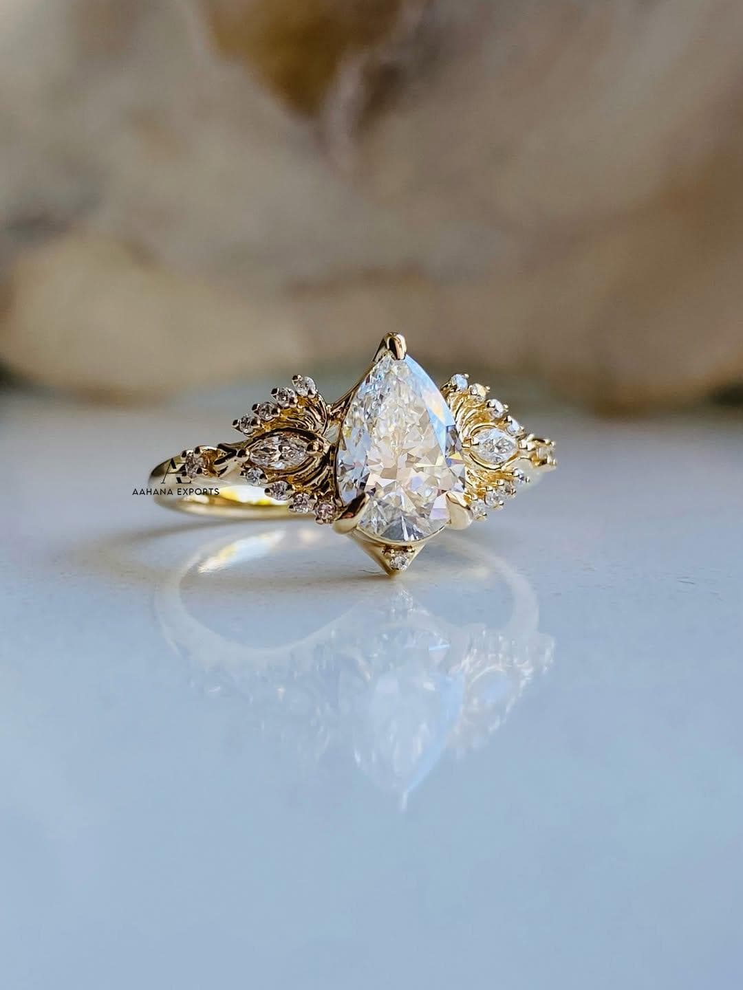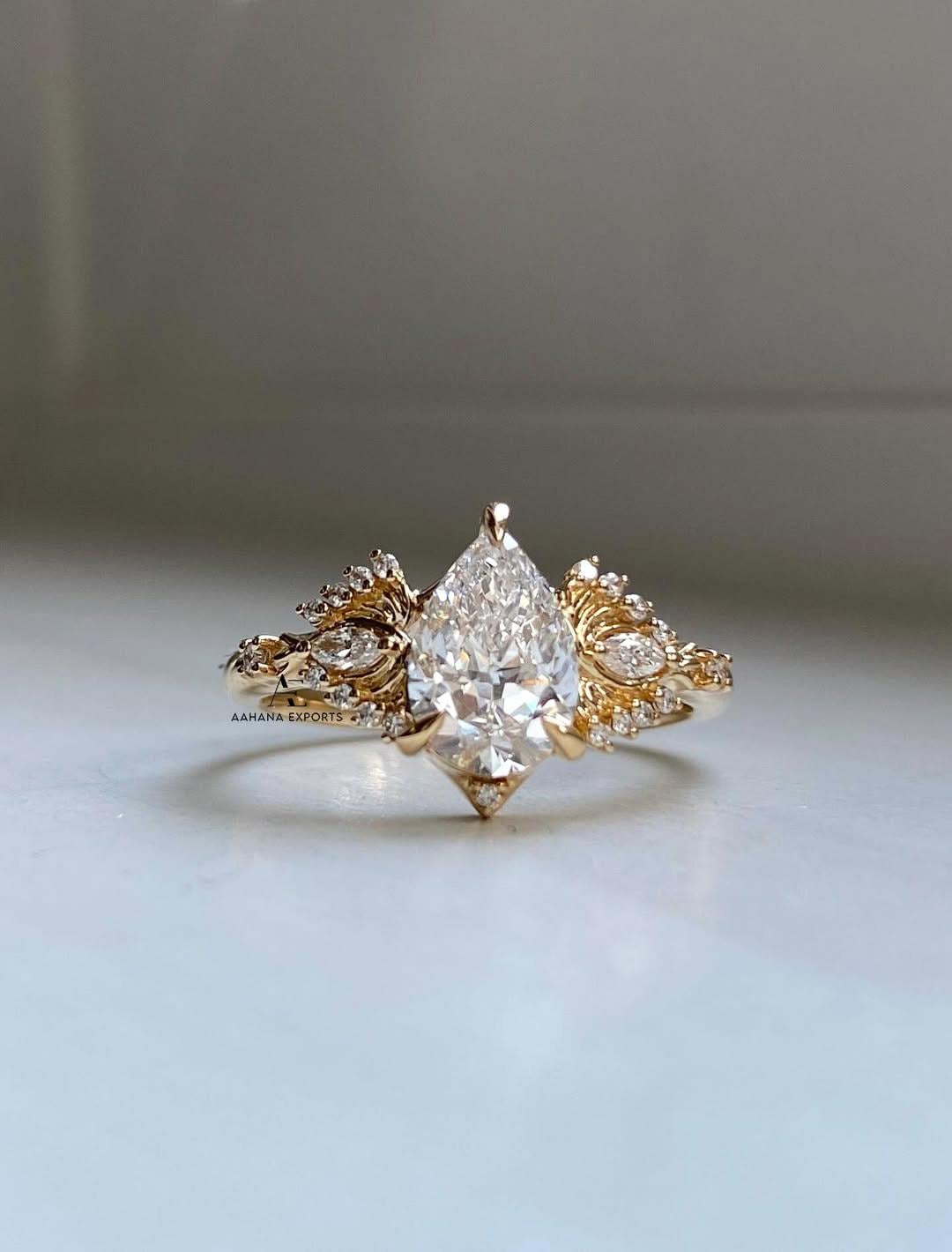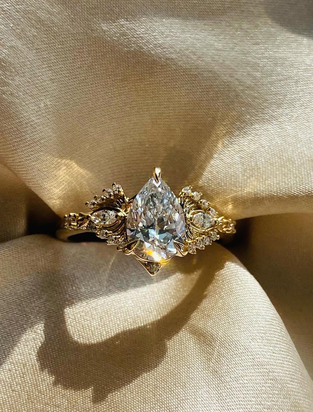 1 Carat Pear LG-Diamond Ginkgo Butterfly Lab Grown Diamond Pear Cut Unique Engagement Ring 14k Gold Vintage Engagement Ring Butterfly Effect