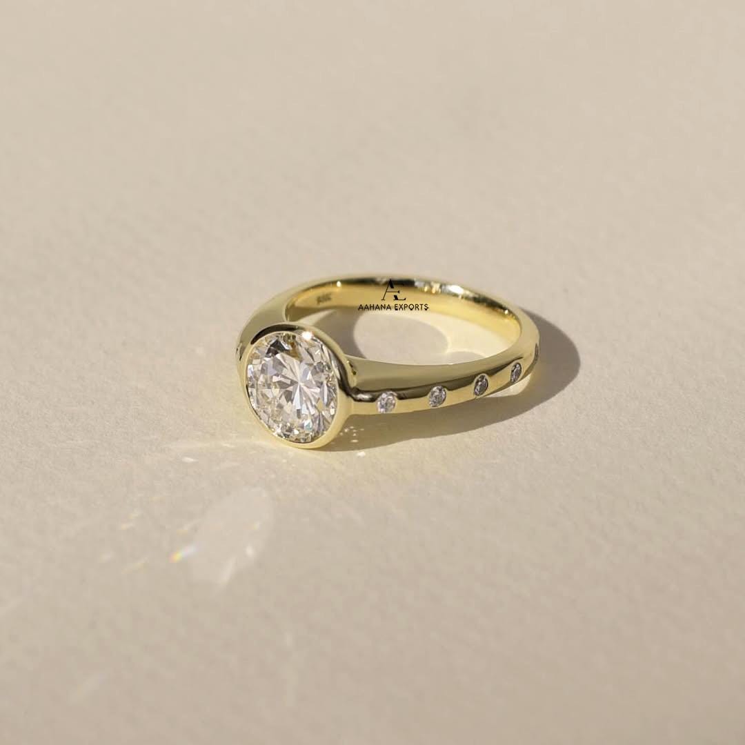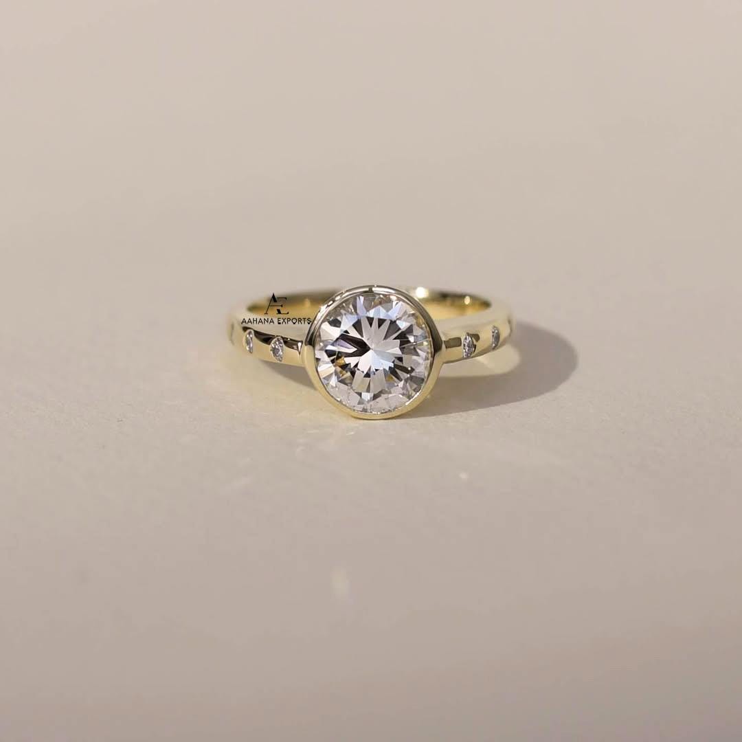 2.00 Carat IGI Certified E Color VVS2 Clarity Round Brilliant Ideal Cut Lab Grown Diamond Solitaire Ring, Bezel Set 14k Gold With Side Round