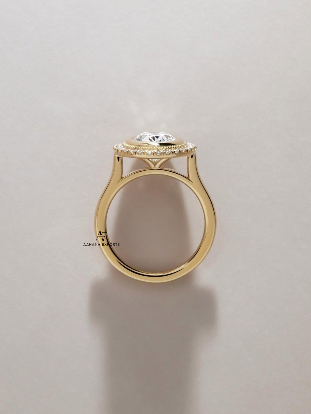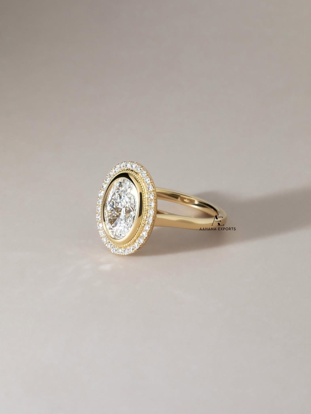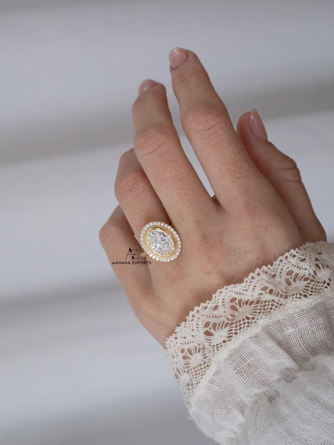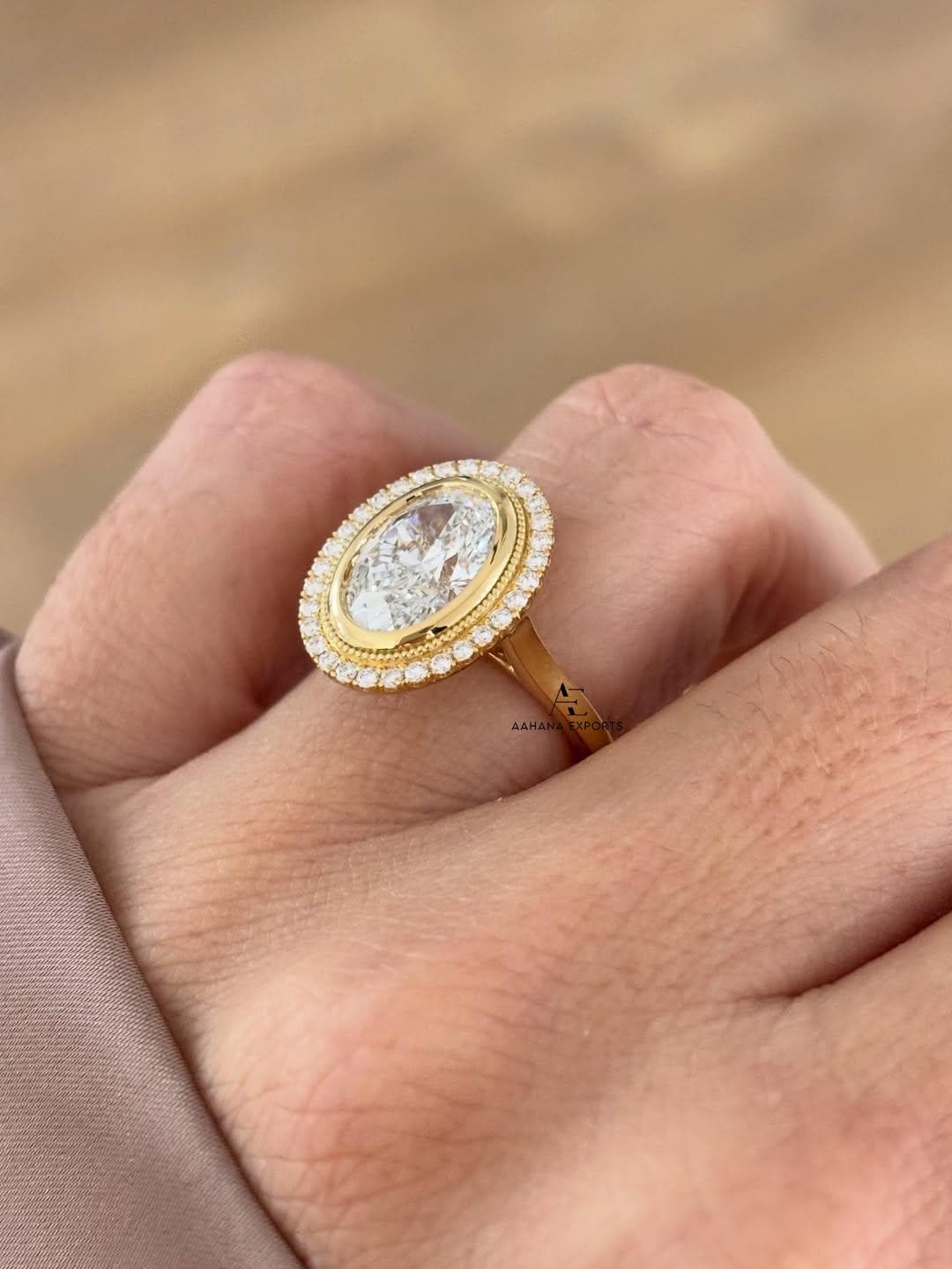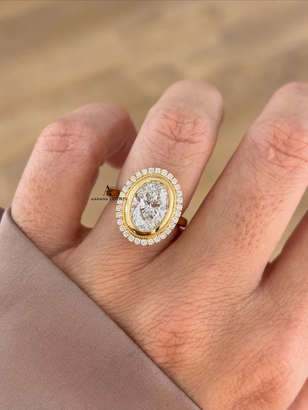 4 Carat Oval Lab-Grown Diamond Engagement Ring, 14KT Yellow Gold Halo, CLASSIC Promise Anniversary Ring for Women, Ring for Proposal