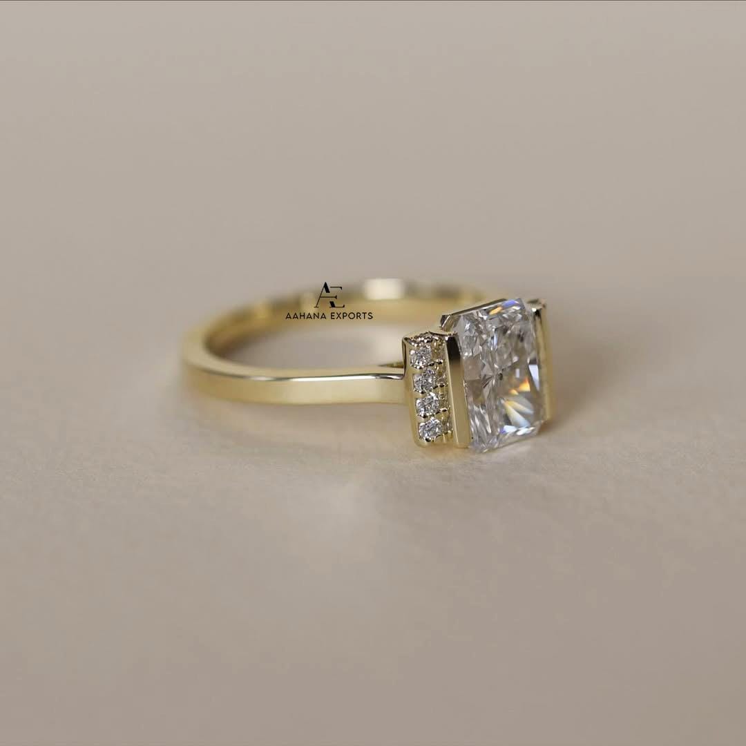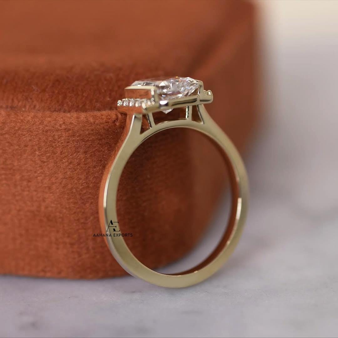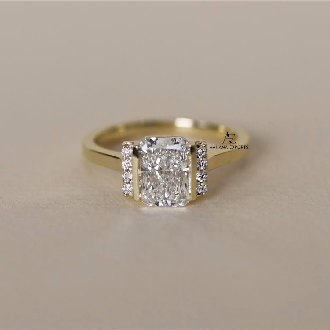 2 Carat Elongated Radiant Cut Lab Grown Diamond Solitaire Engagement Ring / IGI Certified F-VVS2 / 14k White Gold.