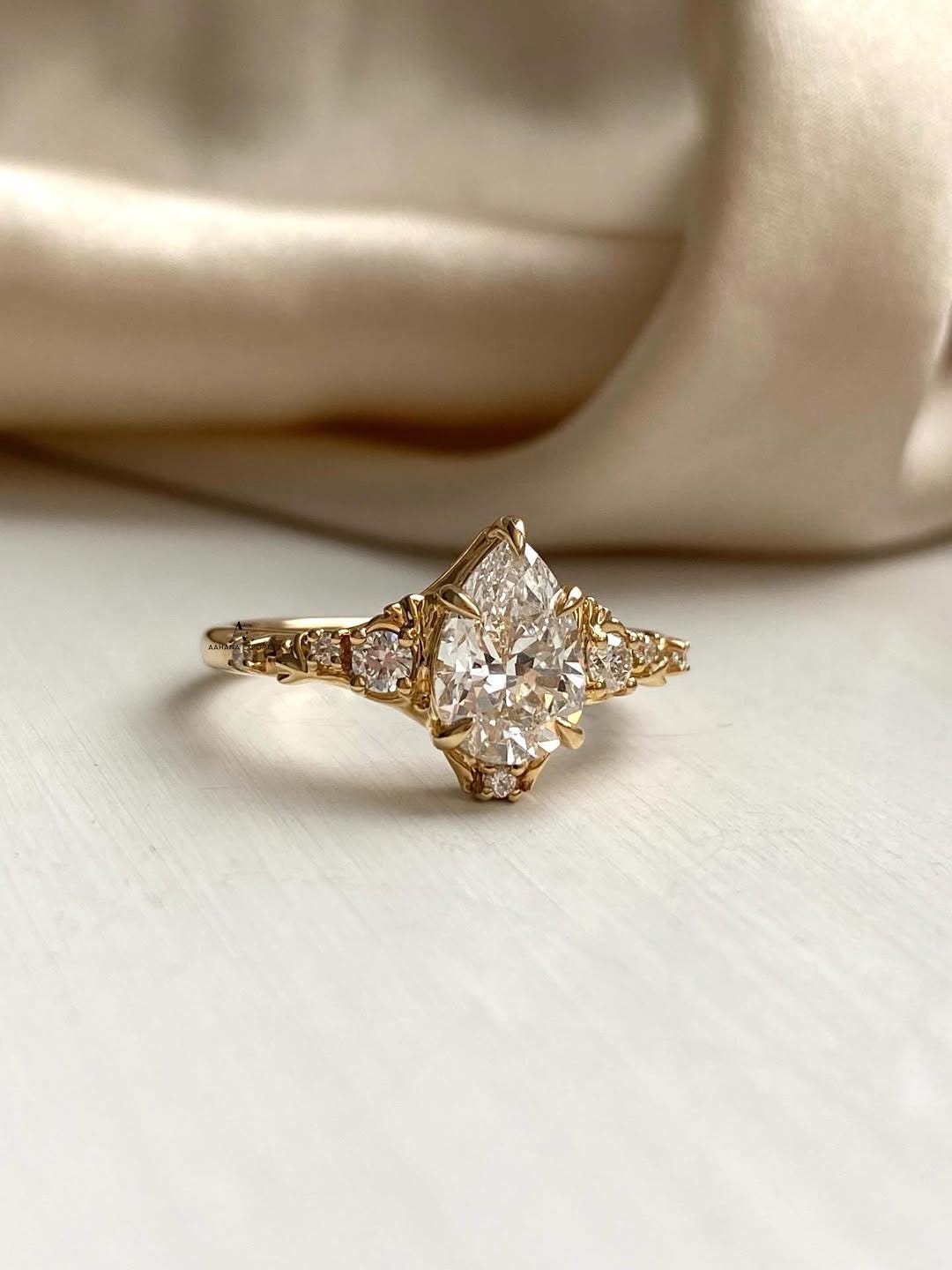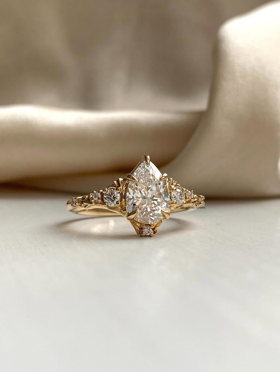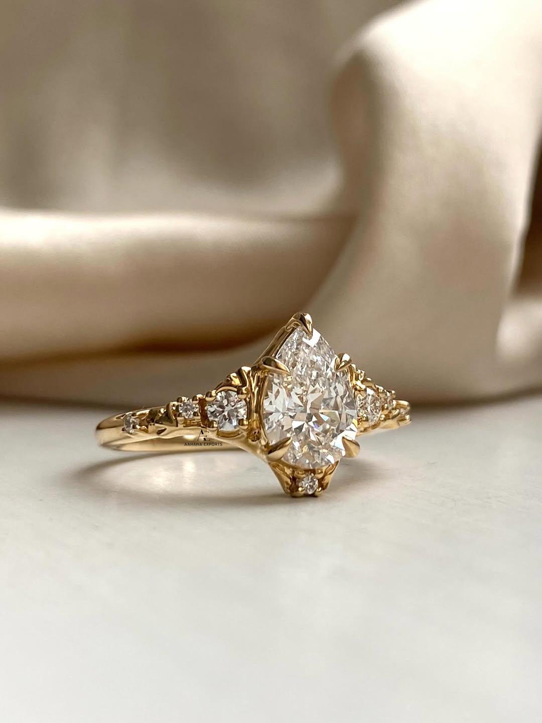 Dela -1 Carat Pear Lab Grown Diamond Engagement Ring: 14k Gold Fantasy Ring