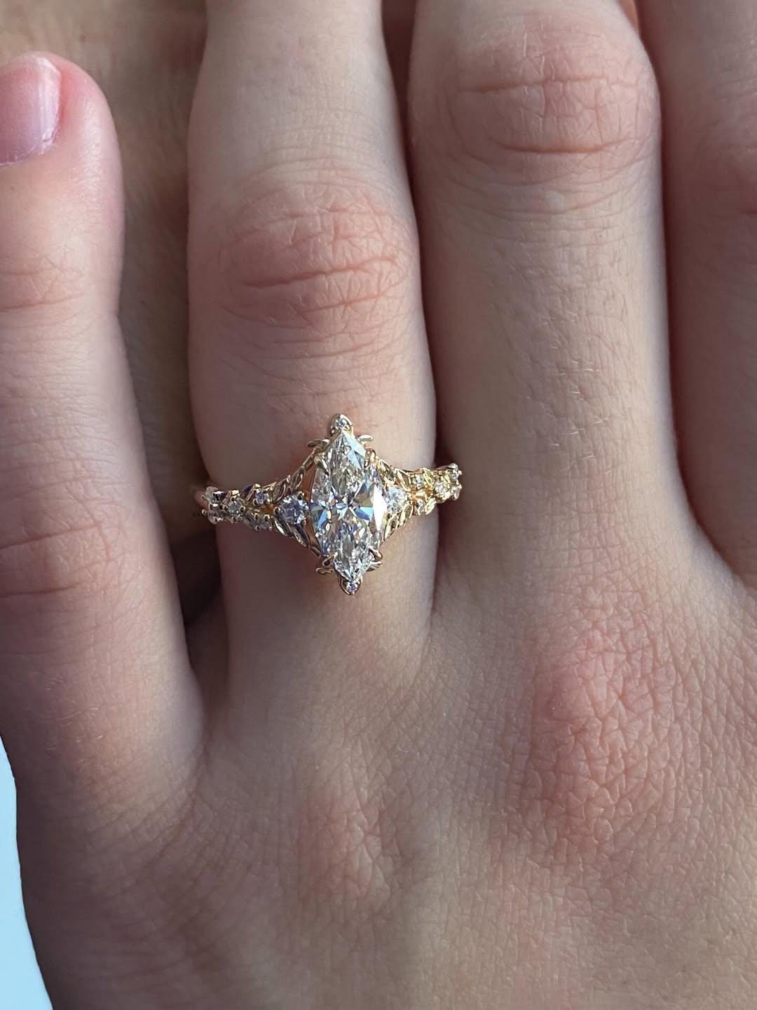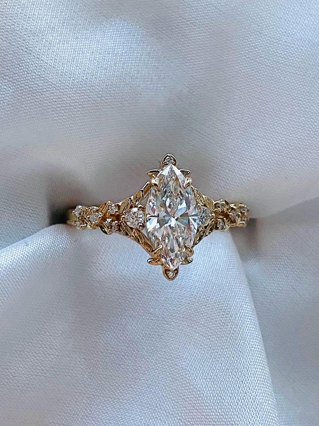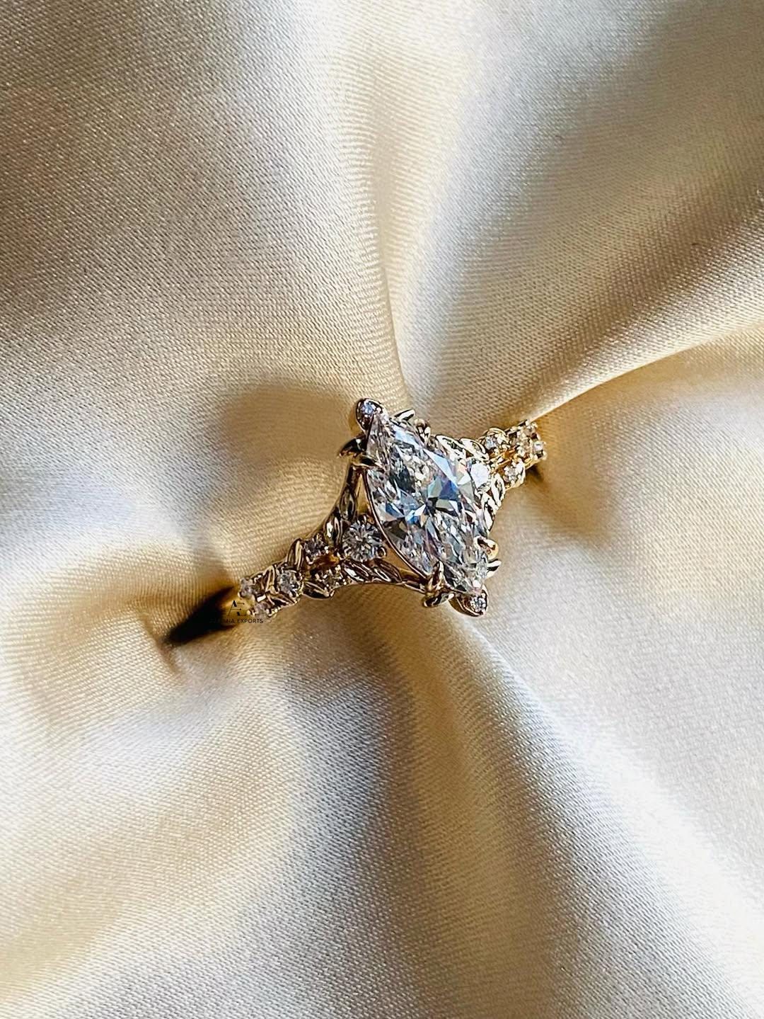 Marquise Engagement Ring: Lab Diamonds, 14k Gold, Unique Fiore Alpha Floral Design