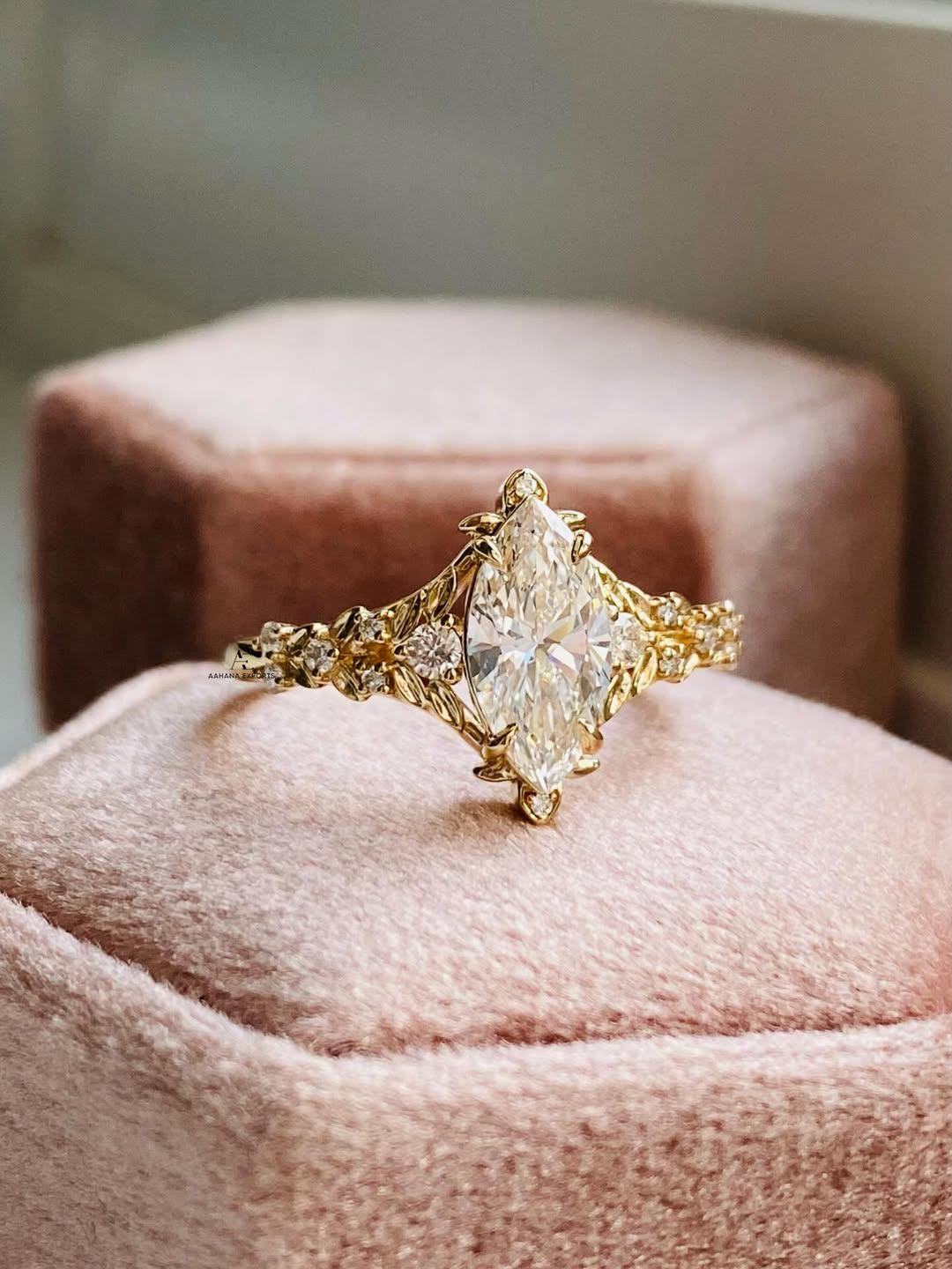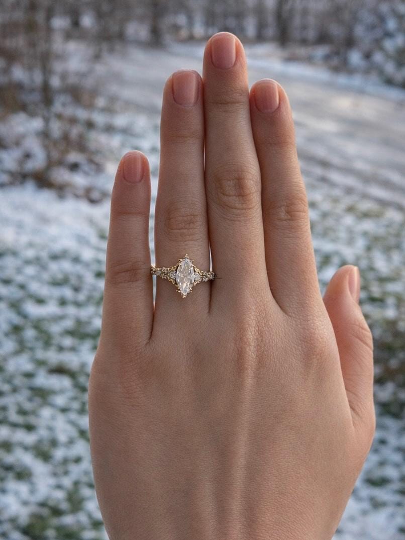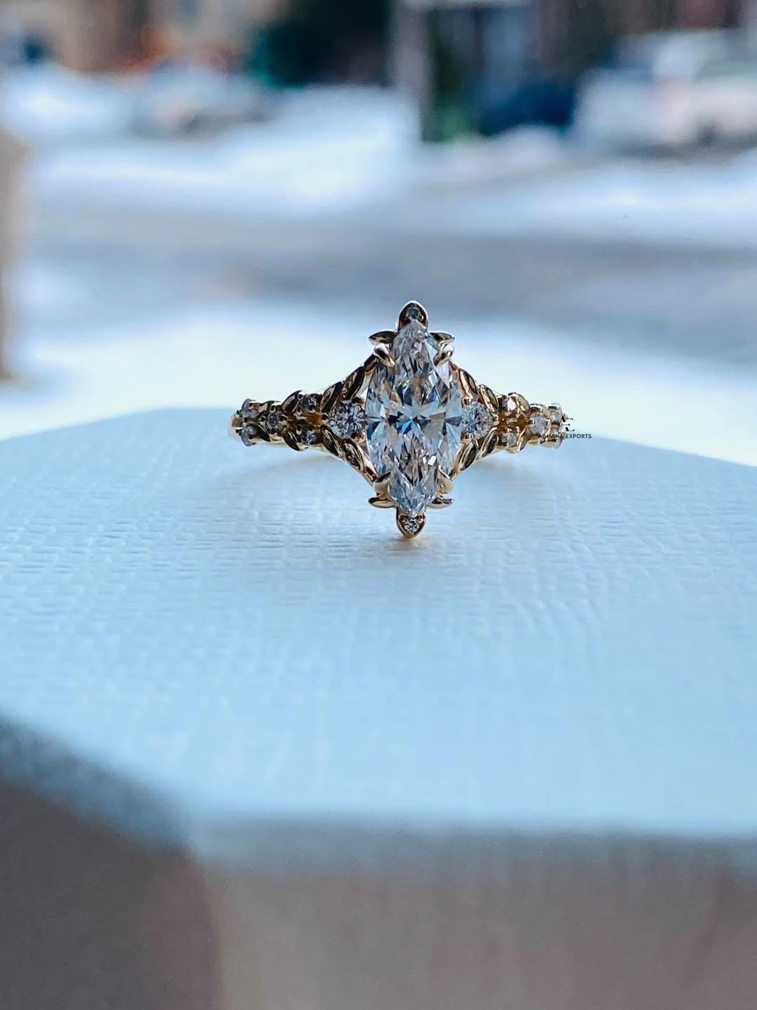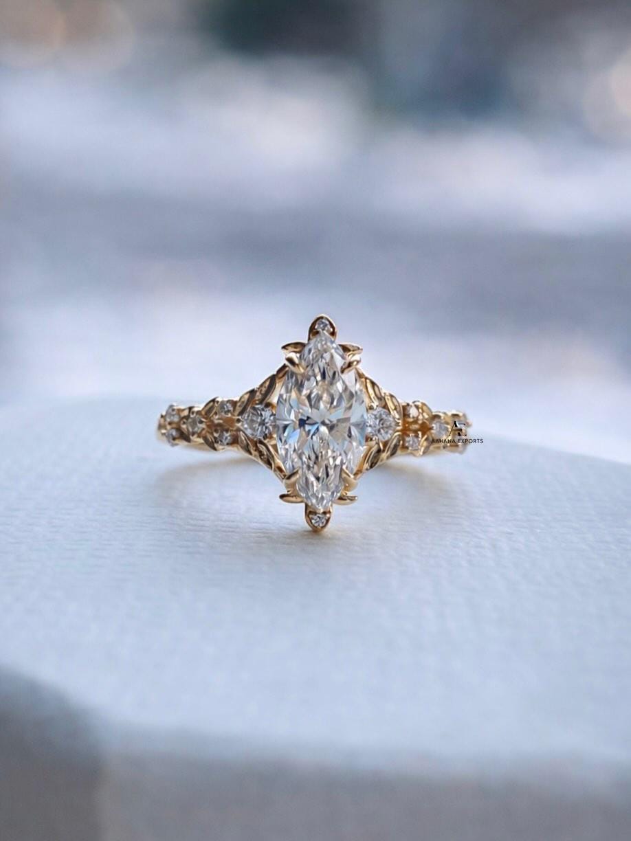 Marquise Engagement Ring: Lab Diamonds, 14k Gold, Unique Fiore Alpha Floral Design