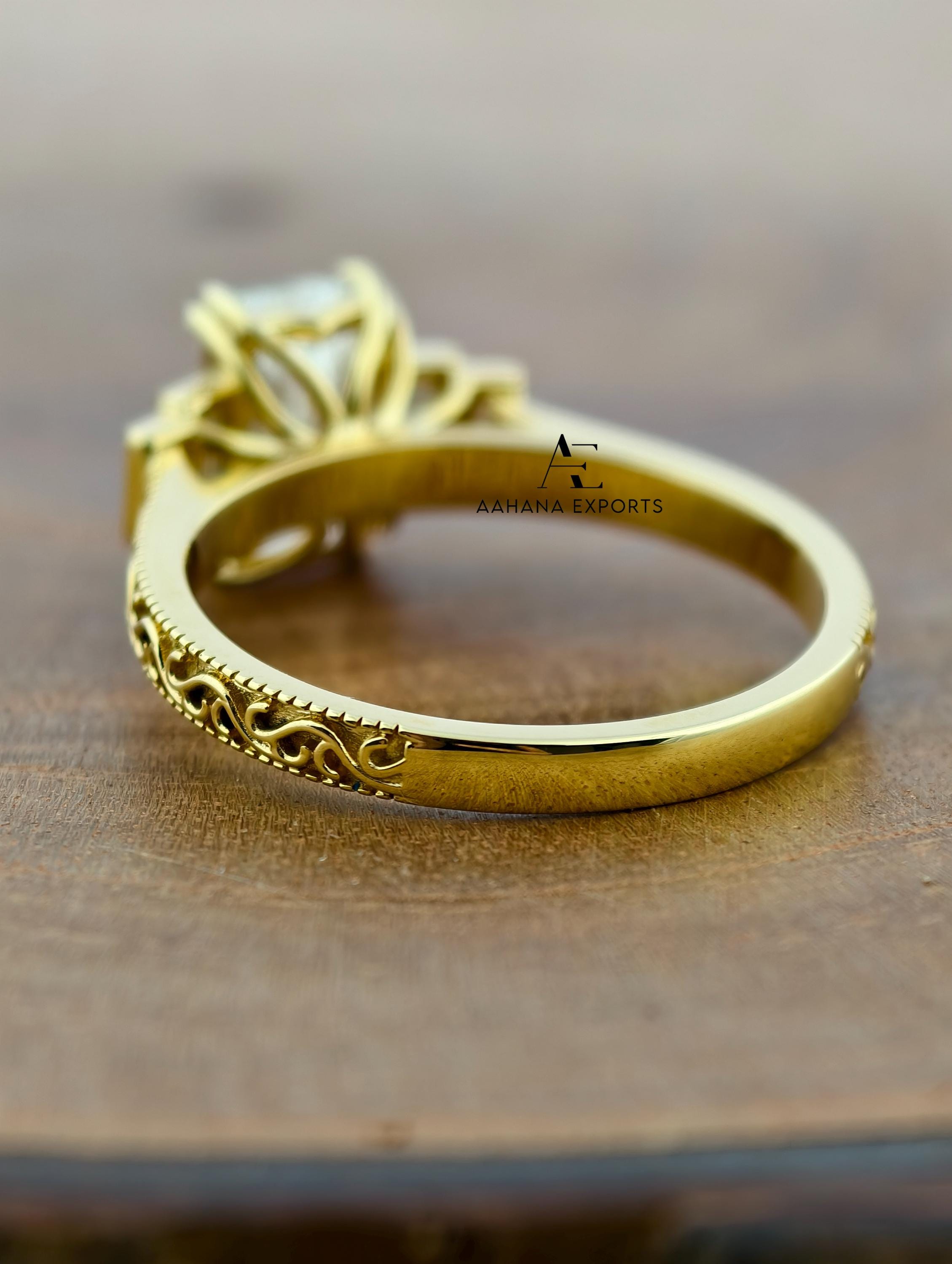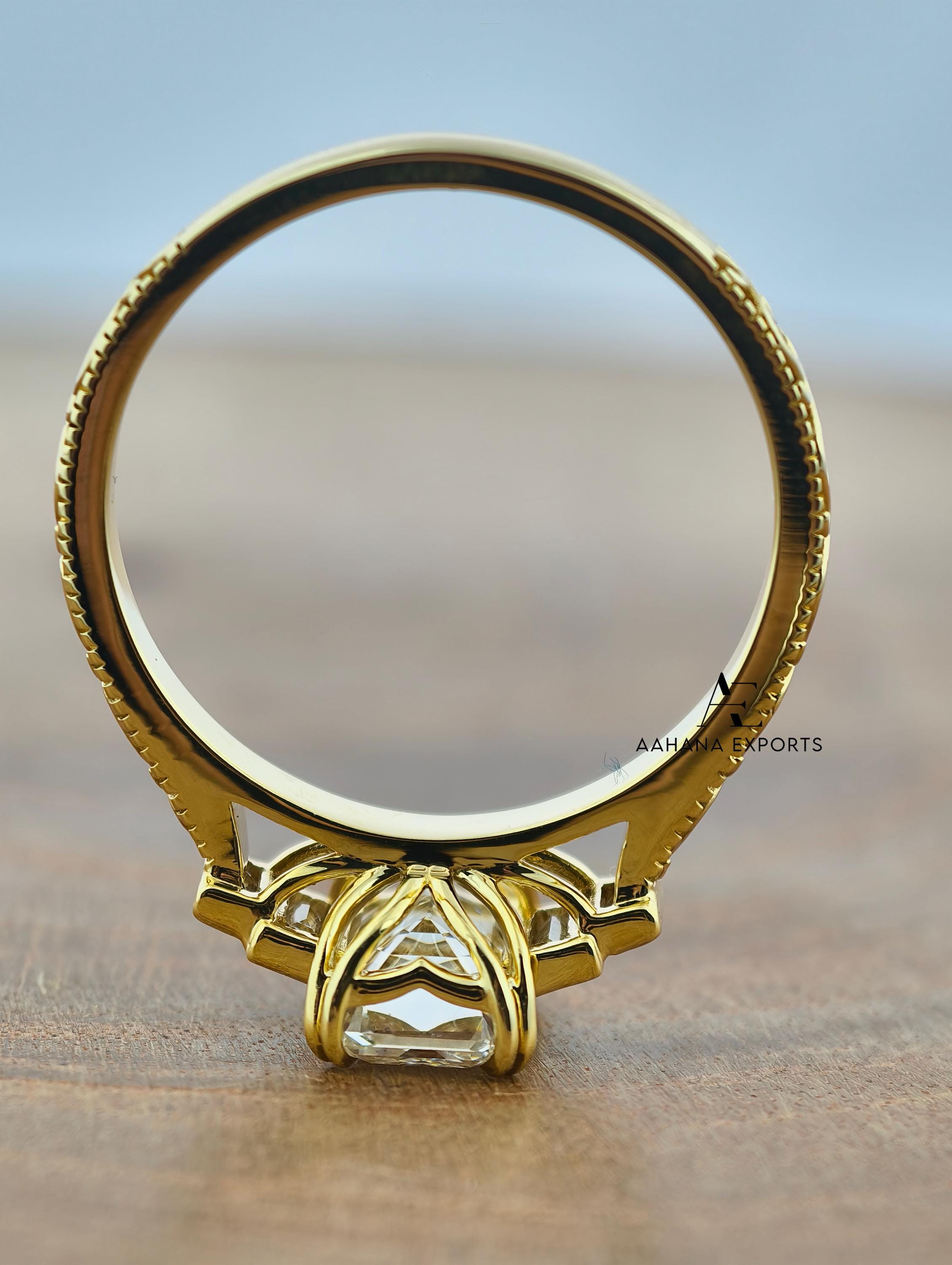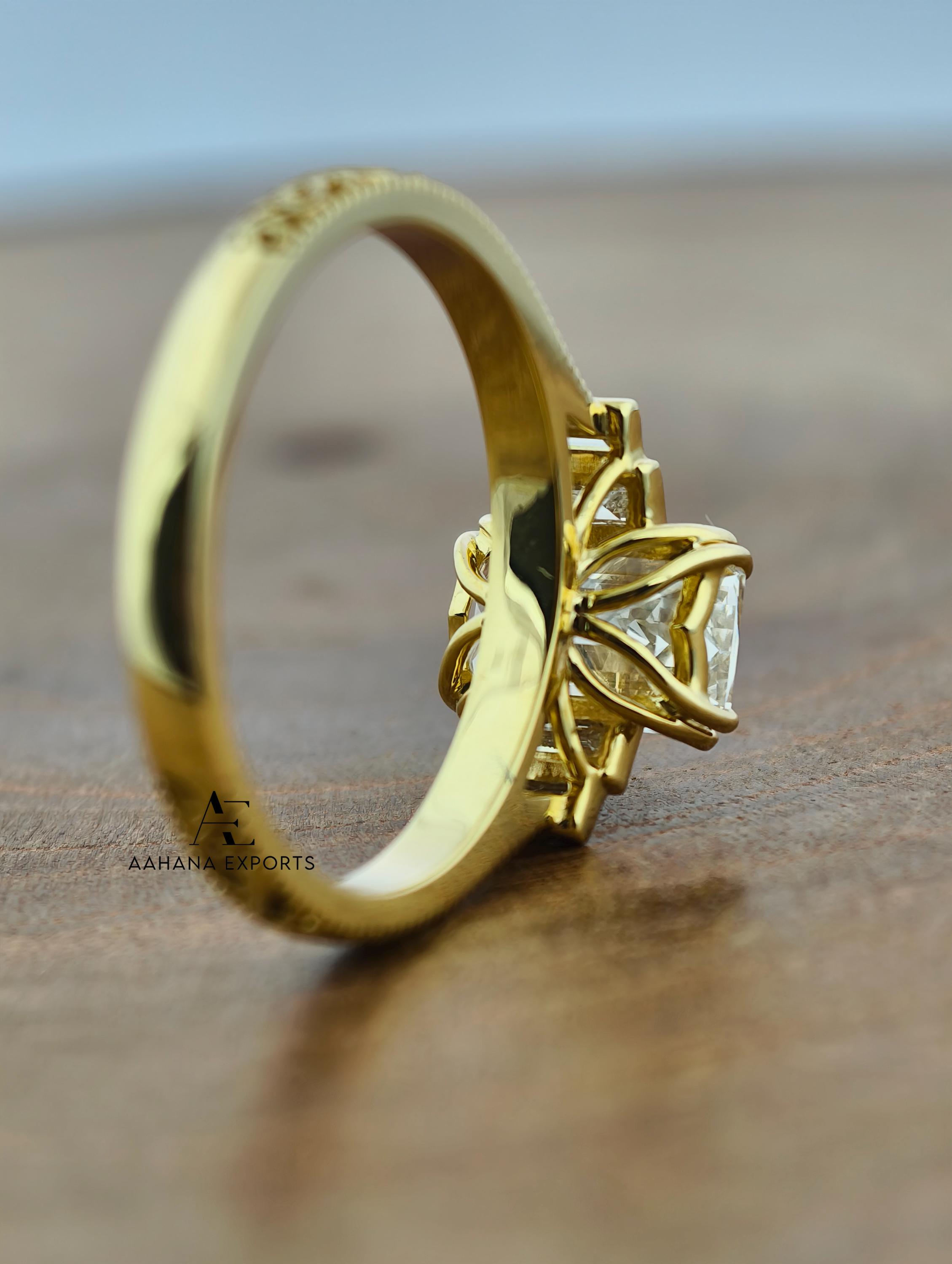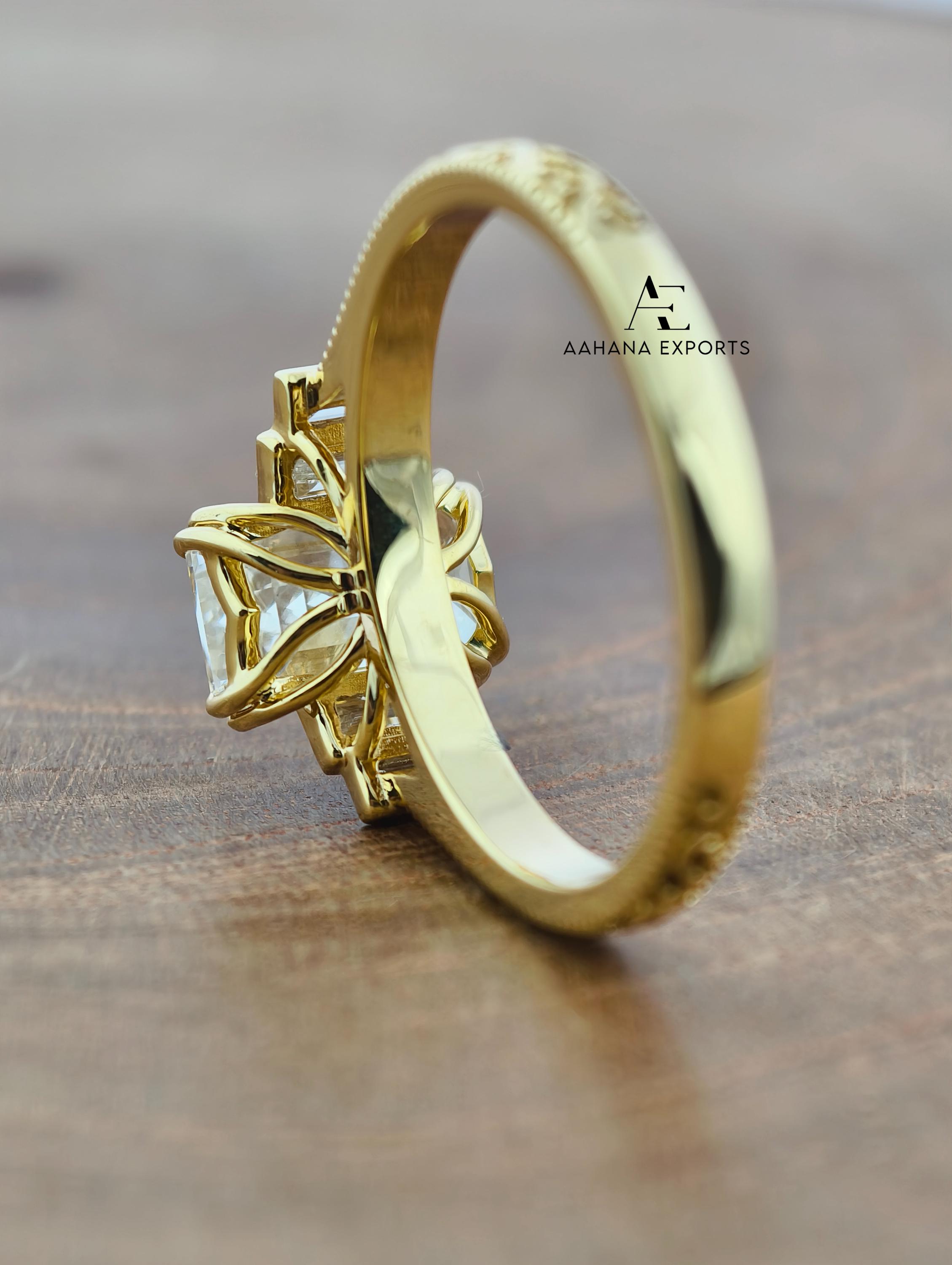 Emerald Lab-Grown Diamond Tulip Lotus Engagement Ring, Diamond Ring, Double Claw Prong Ring, 2.00 CT Art Deco Lab-Grown Diamond Ring.