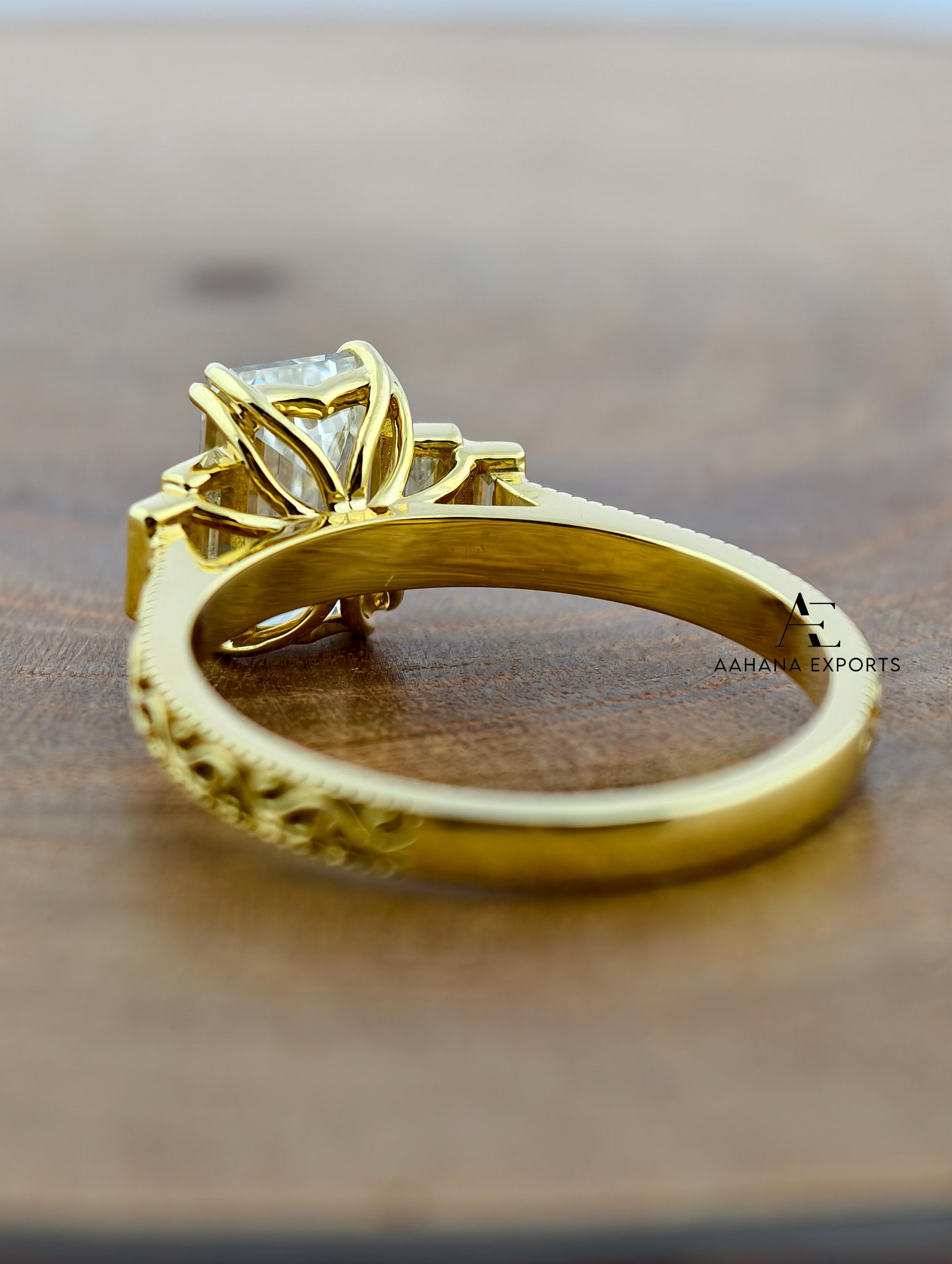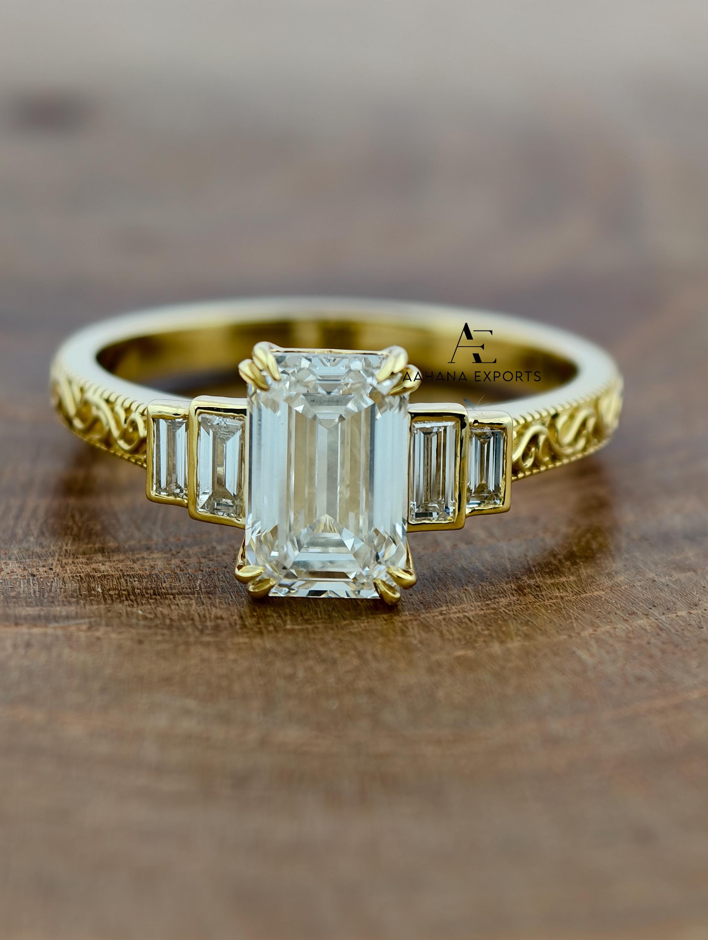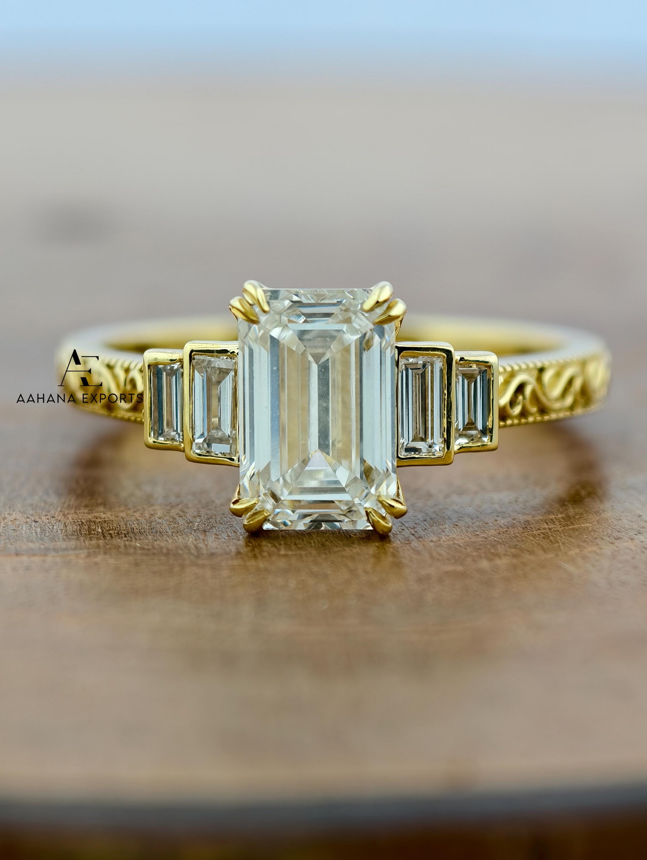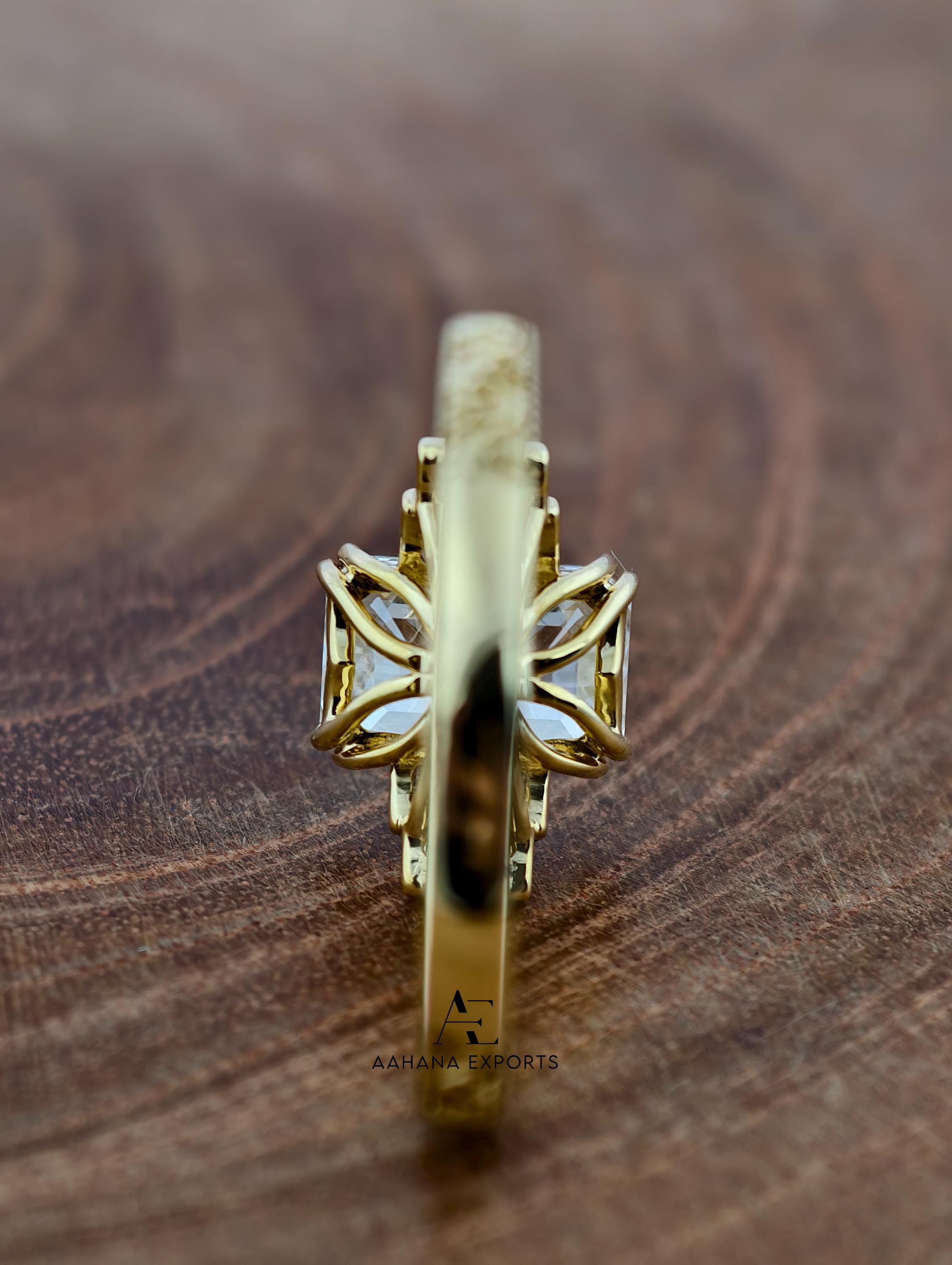 Emerald Lab-Grown Diamond Tulip Lotus Engagement Ring, Diamond Ring, Double Claw Prong Ring, 2.00 CT Emerald Cut Lab-Grown Diamond Ring.