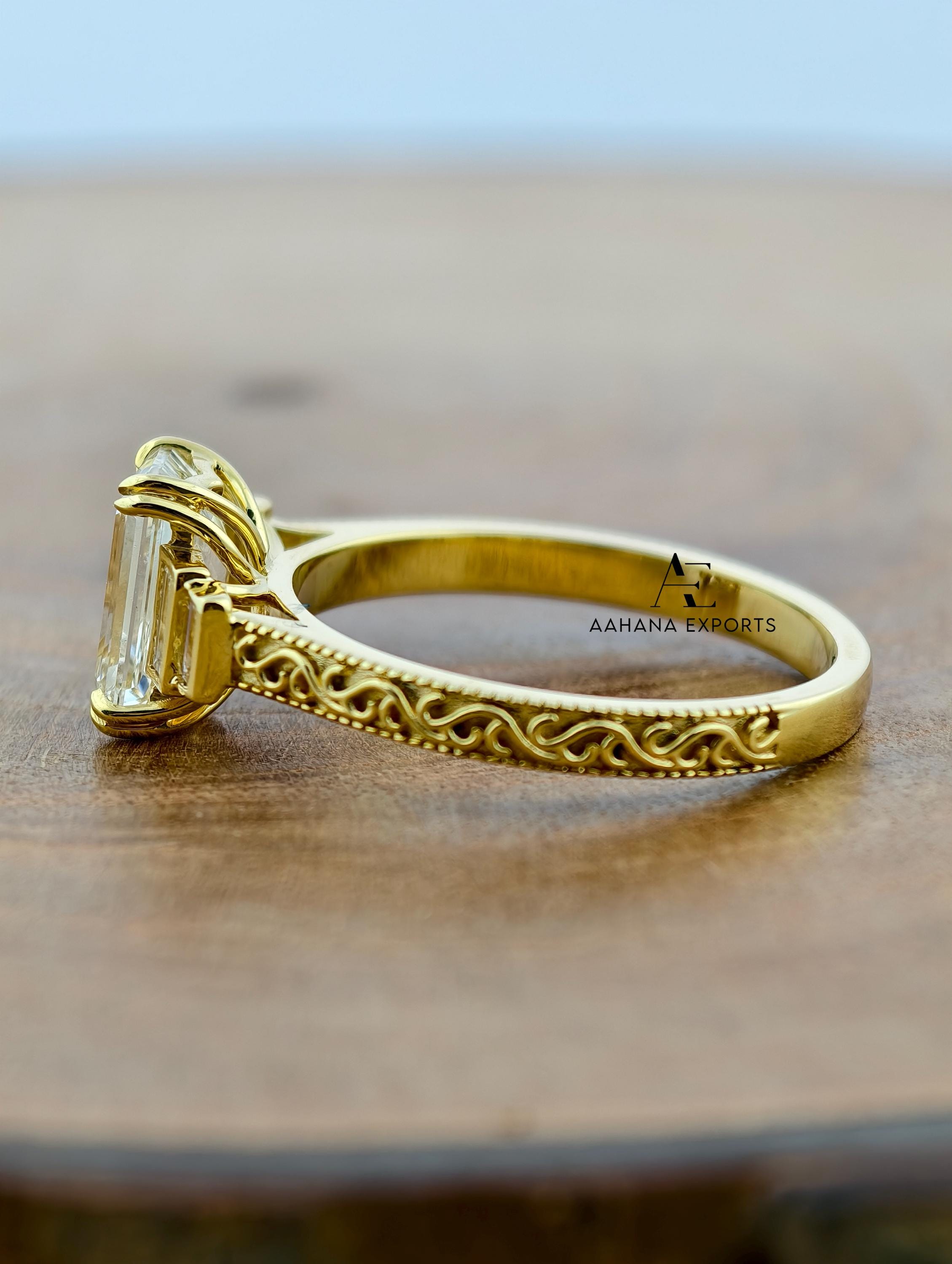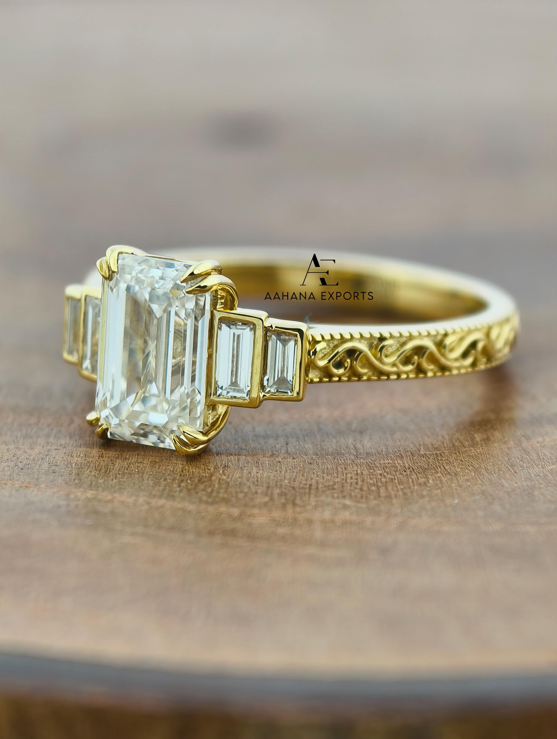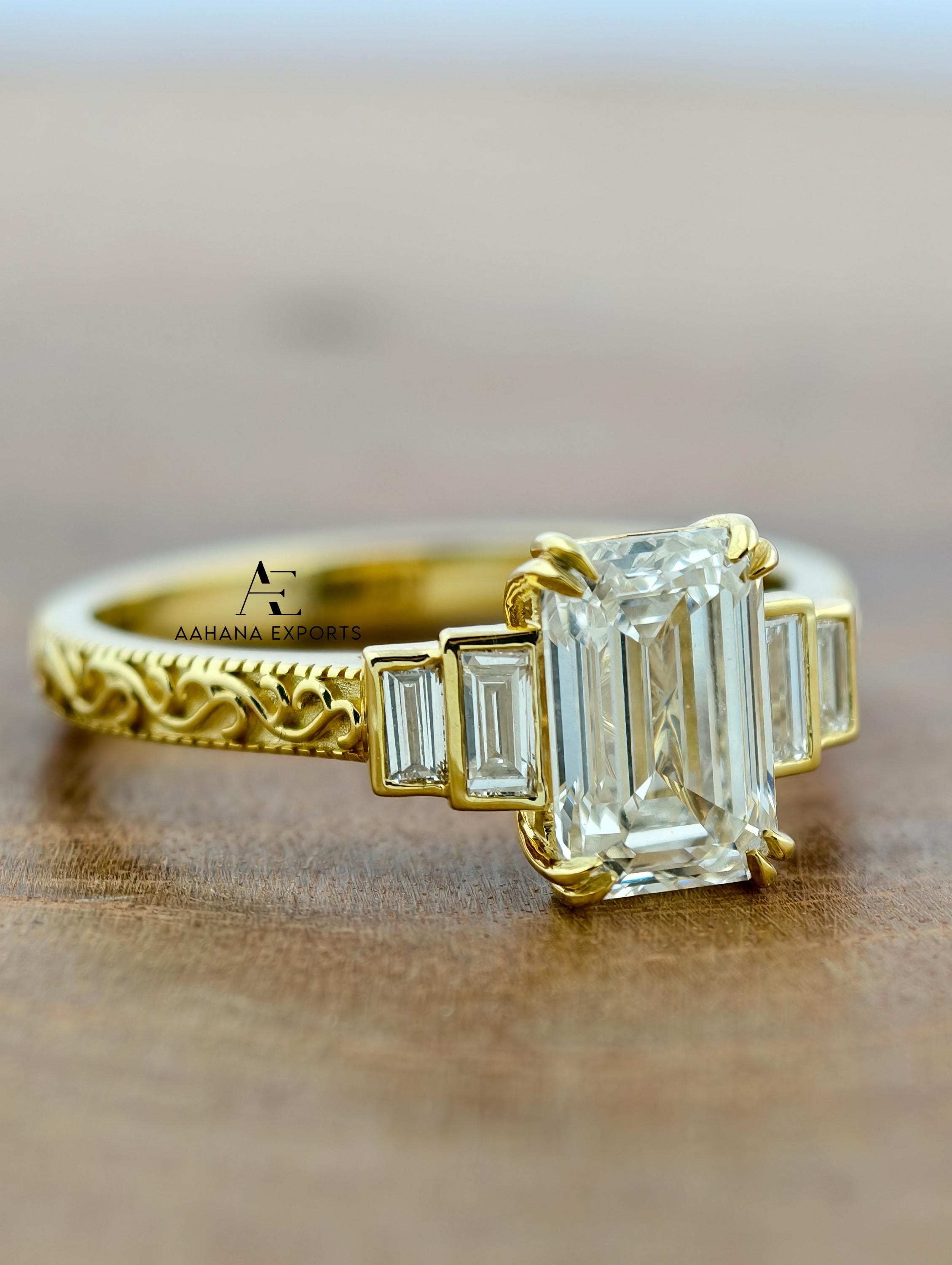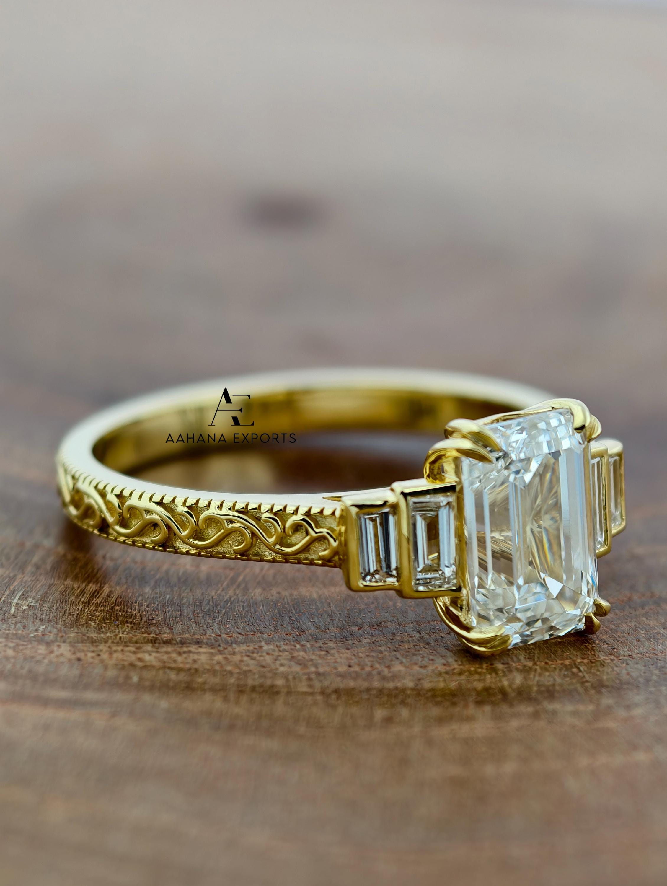 Emerald Lab-Grown Diamond Tulip Lotus Engagement Ring, Diamond Ring, Double Claw Prong Ring, 2.00 CT Emerald Cut Lab-Grown Diamond Ring.