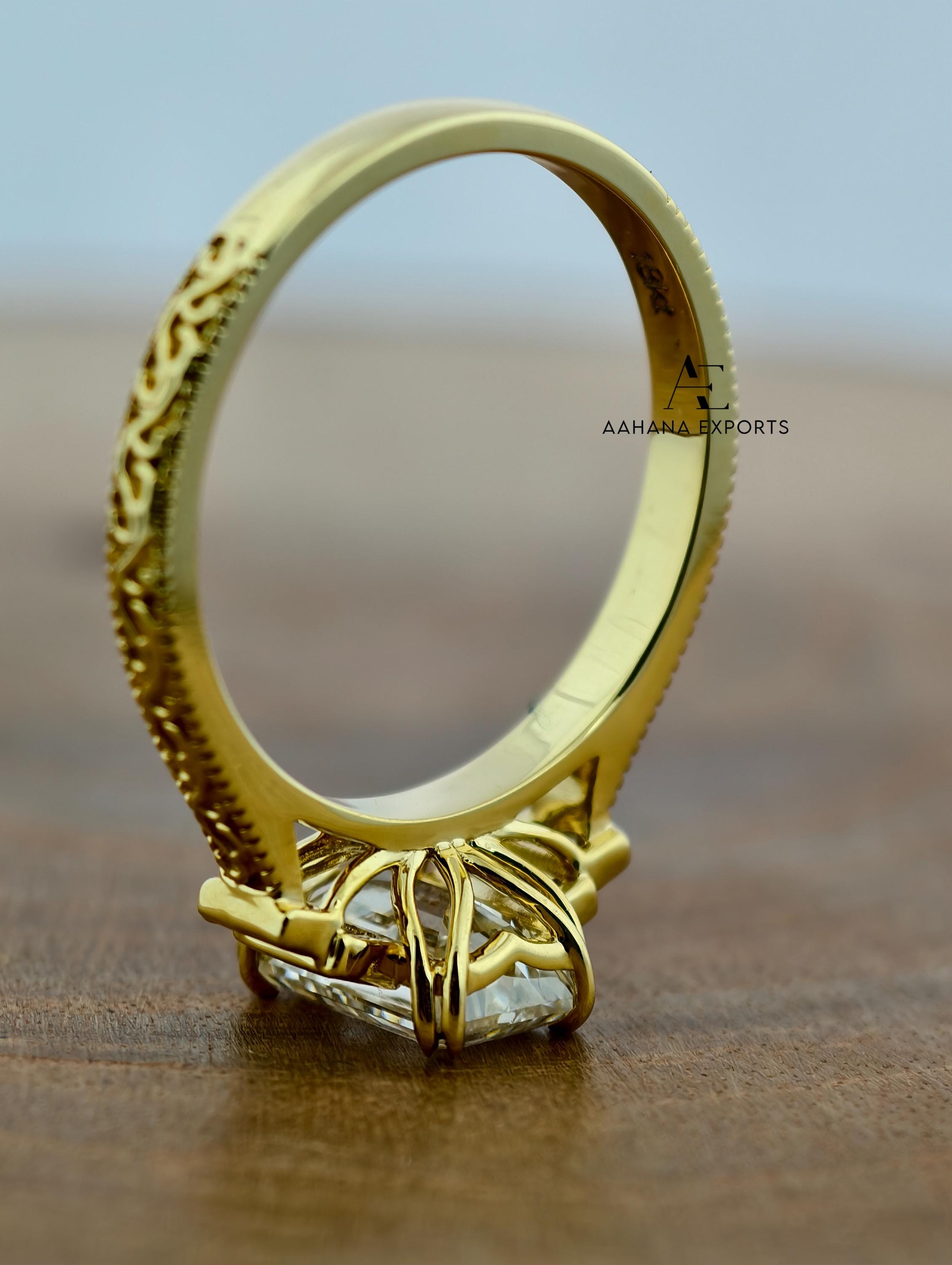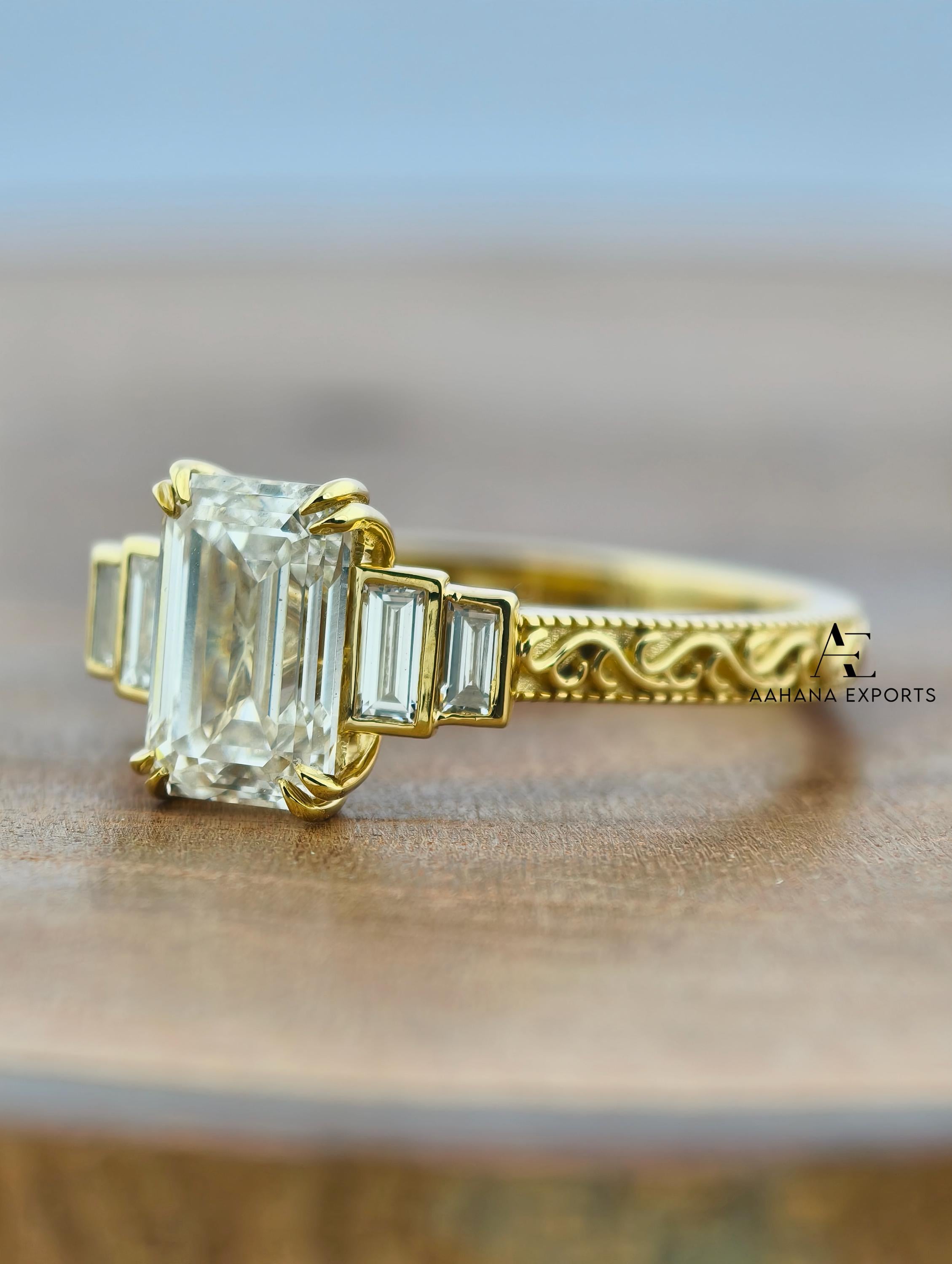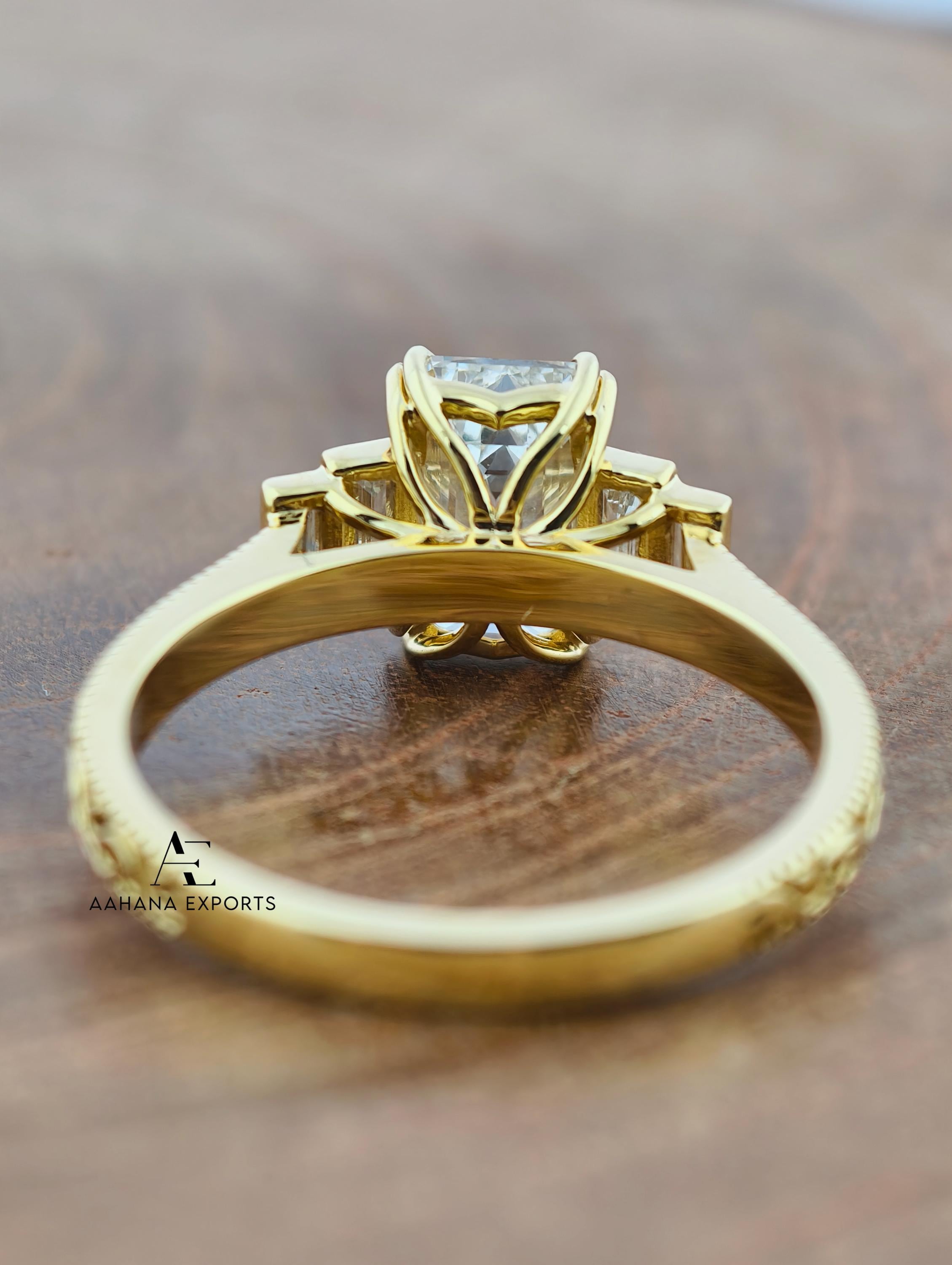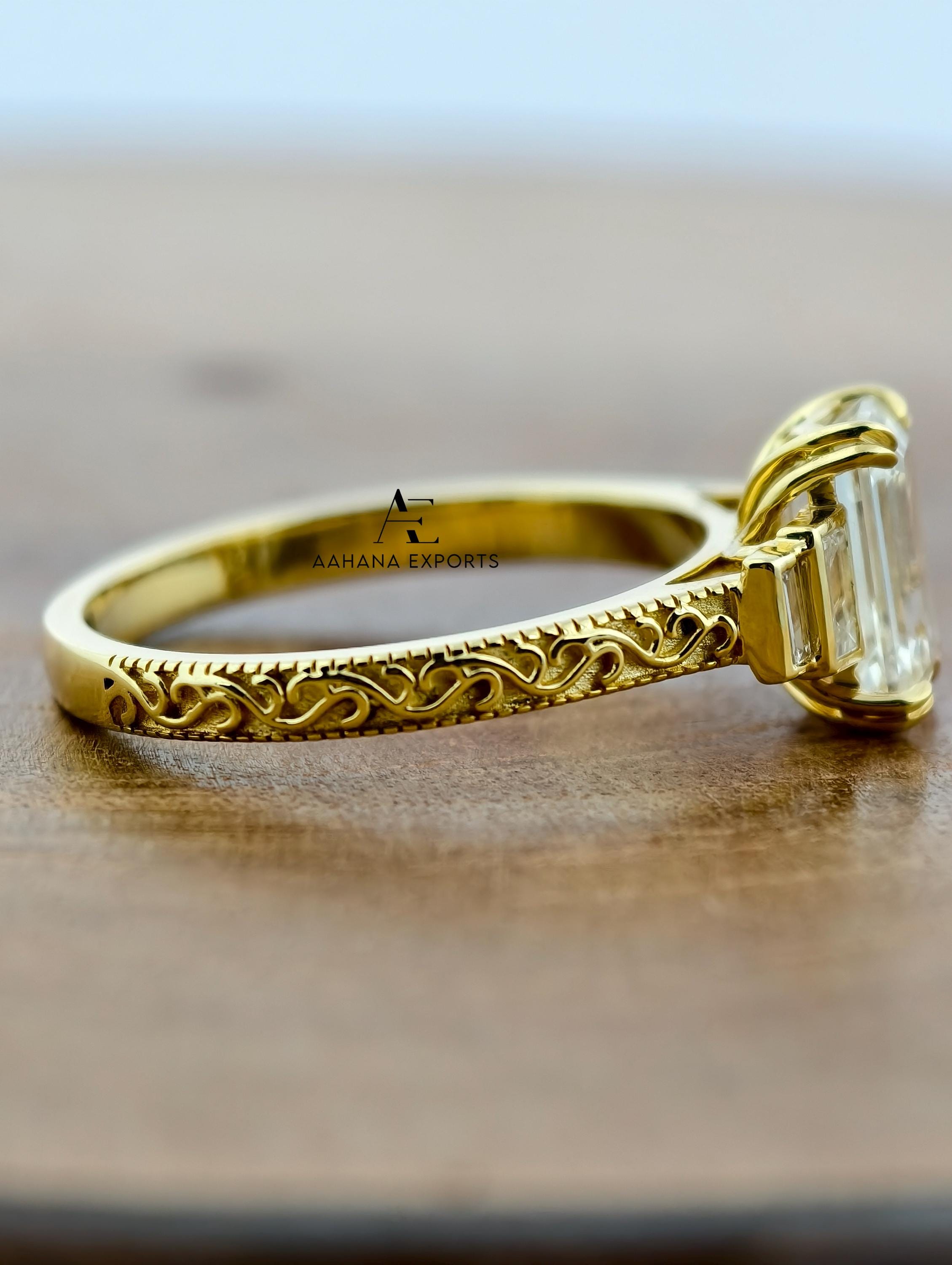 Emerald Lab-Grown Diamond Tulip Lotus Engagement Ring, Diamond Ring, Double Claw Prong Ring, 2.00 CT Emerald Cut Lab-Grown Diamond Ring.